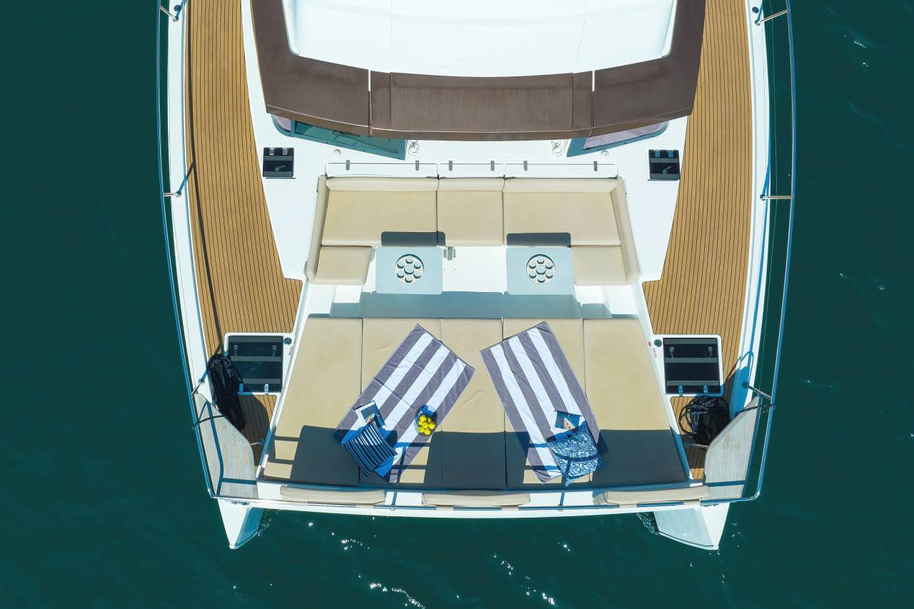 | Outside | 12 V-Anschluss, Anker mit Kette, Badeleiter, Badeplattform, Biminitop, Cockpitdusche, Cockpitpolster, Cockpittisch, Deckpolster, elektr. Ankerwinsch, Grill, Solaranlage |
