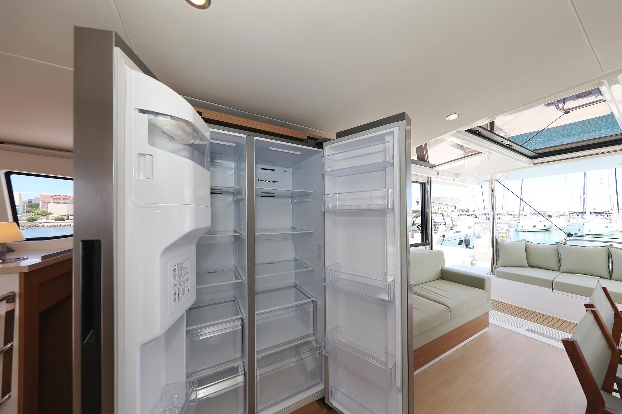 | Inside | Backofen, Gasherd, Gefrierschrank, Generator, Heizung, Inverter 12V/220V, Kaffeemaschine, Klimaanlage (ohne Landstrombedarf), Kühlschrank, Ladegerät, Mikrowelle, Pantryausstattung, Radio mit CD, Radio mit MP3 , Salontisch absenkbar, TV, Ventilatoren in Kabinen, Warmwasser, WC (elektr.) |
