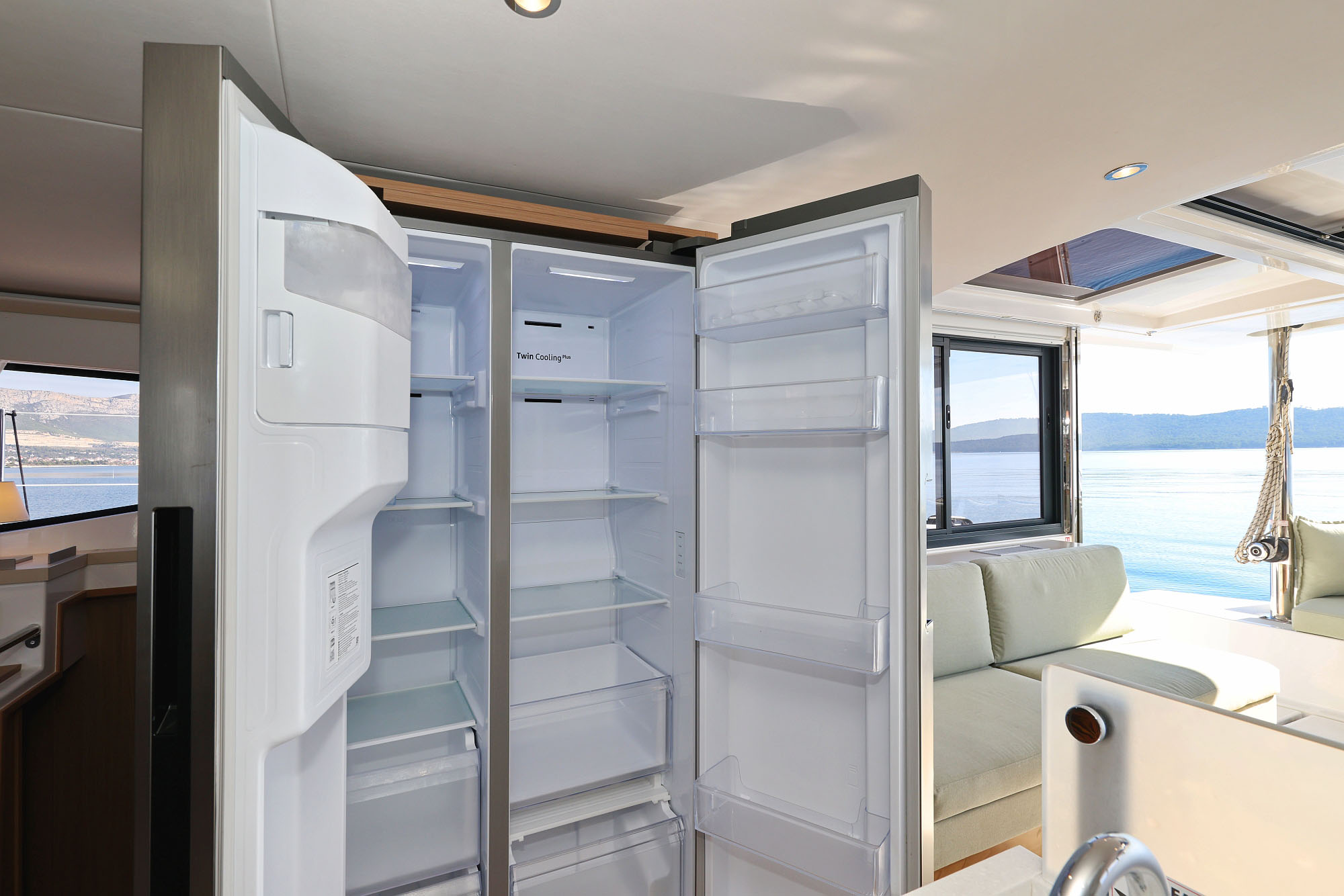 | Inside | Gasherd, Gefrierschrank, Generator, Geschirrspüler, Heizung, Hi-Fi System, Inverter 12V/220V, Klimaanlage (ohne Landstrombedarf), Kühlschrank, Ladegerät, Lautsprecher in Salon und Cockpit, Mikrowelle, Pantryausstattung, Radio mit CD, MP3 und Bluetooth, TV, Ventilatoren in Kabinen, Warmwasser, Watermaker, WC (elektr.) |
