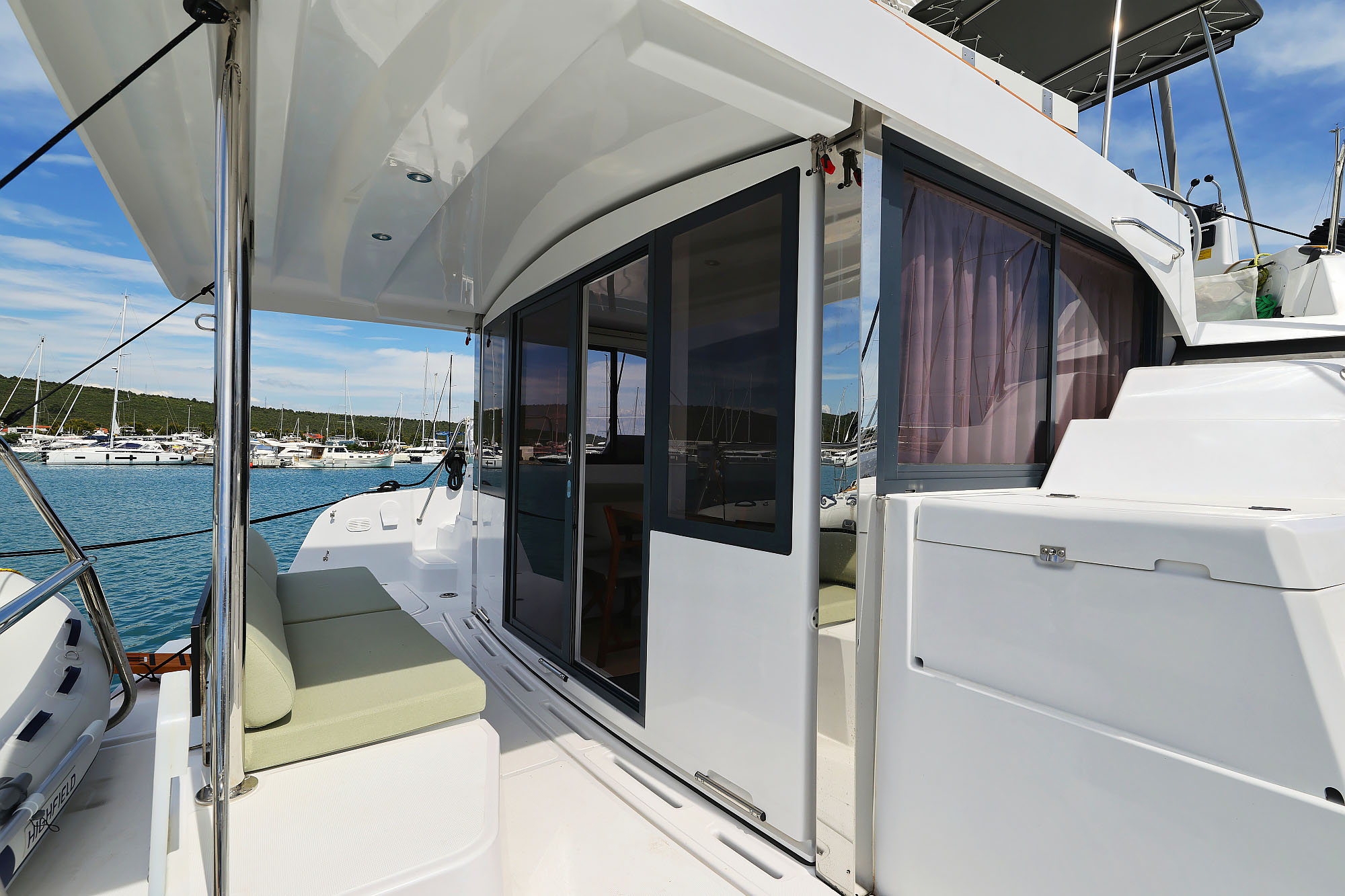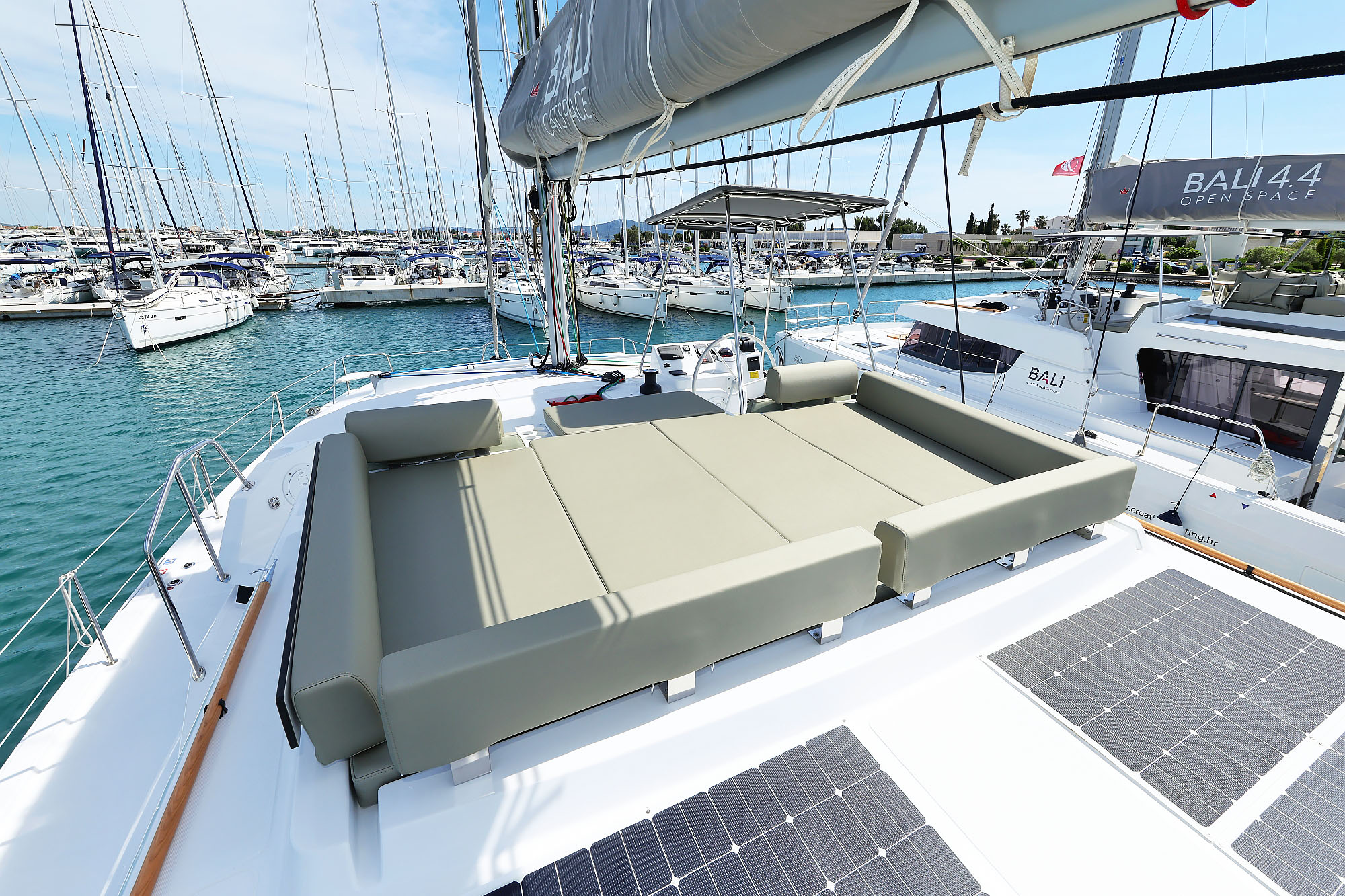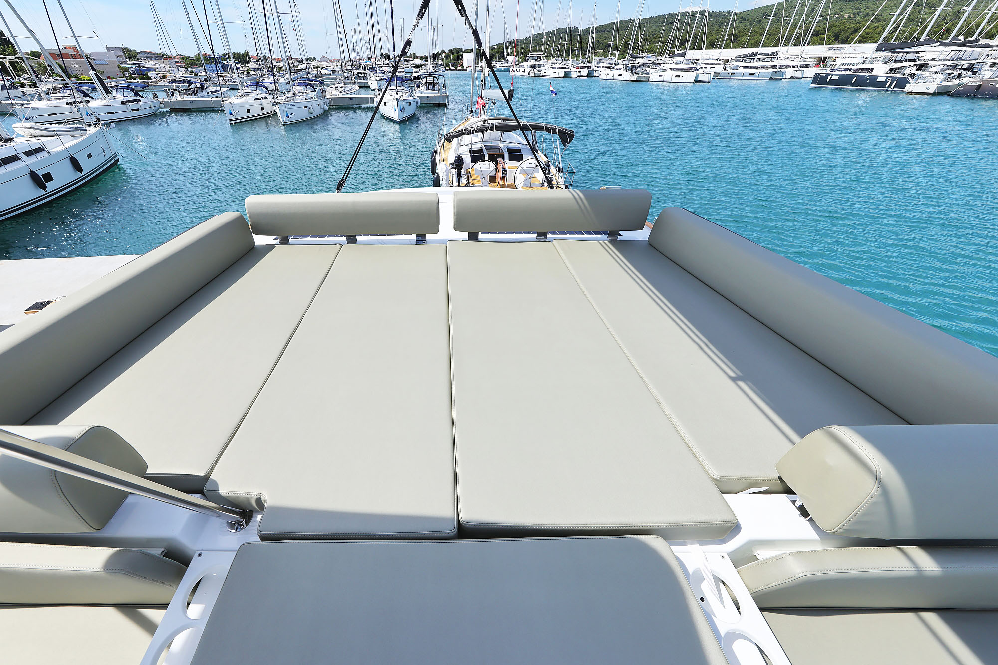 | Outside | Badeplattform, Biminitop, Cockpitdusche, Cockpitlautsprecher, Cockpitpolster, Cockpittisch, Deckpolster, Solaranlage, Sonnendeck |
