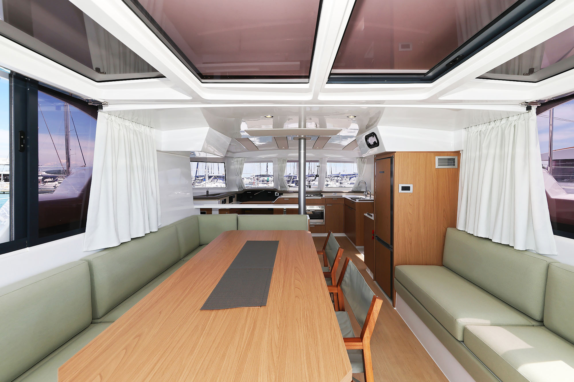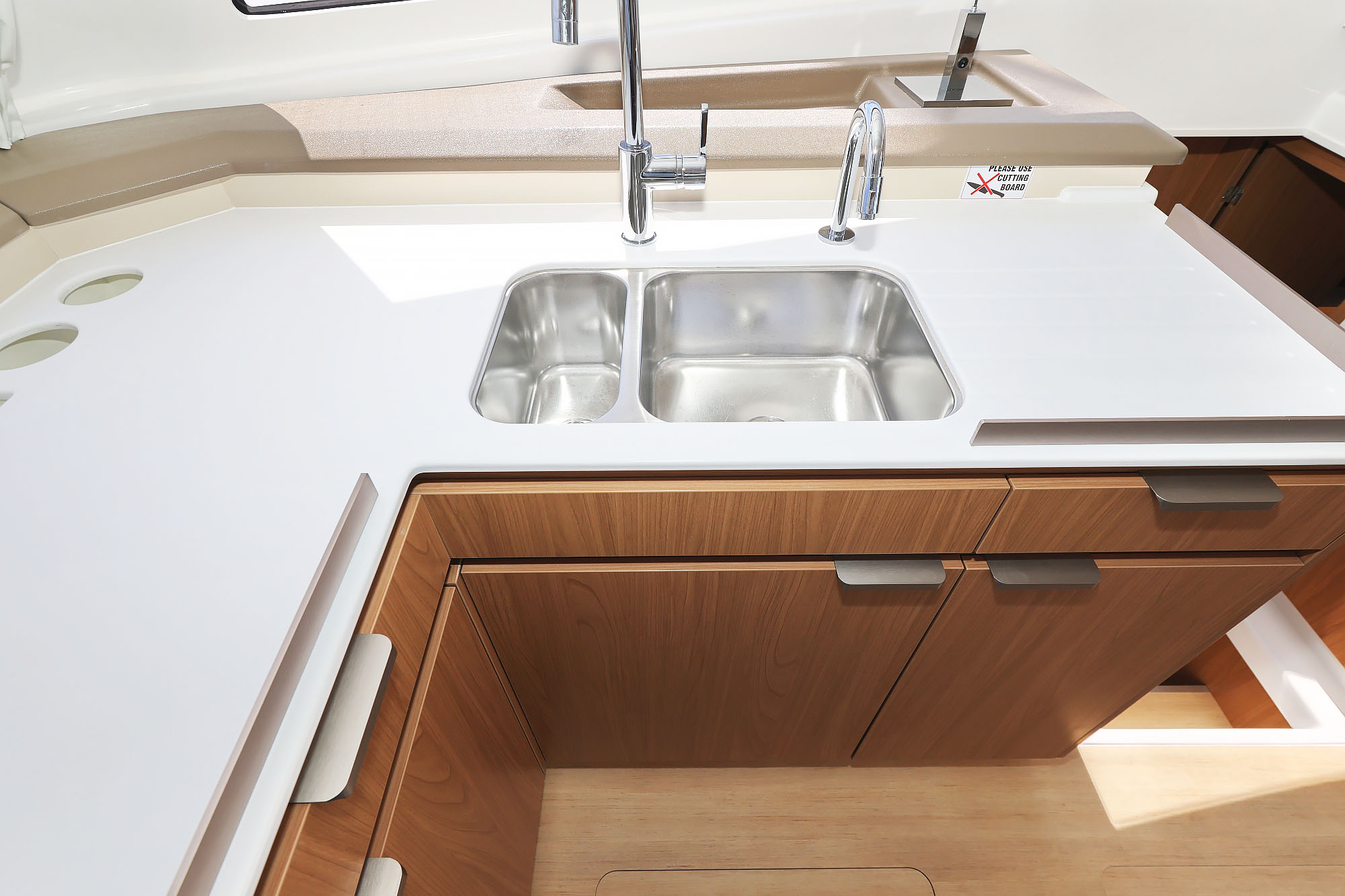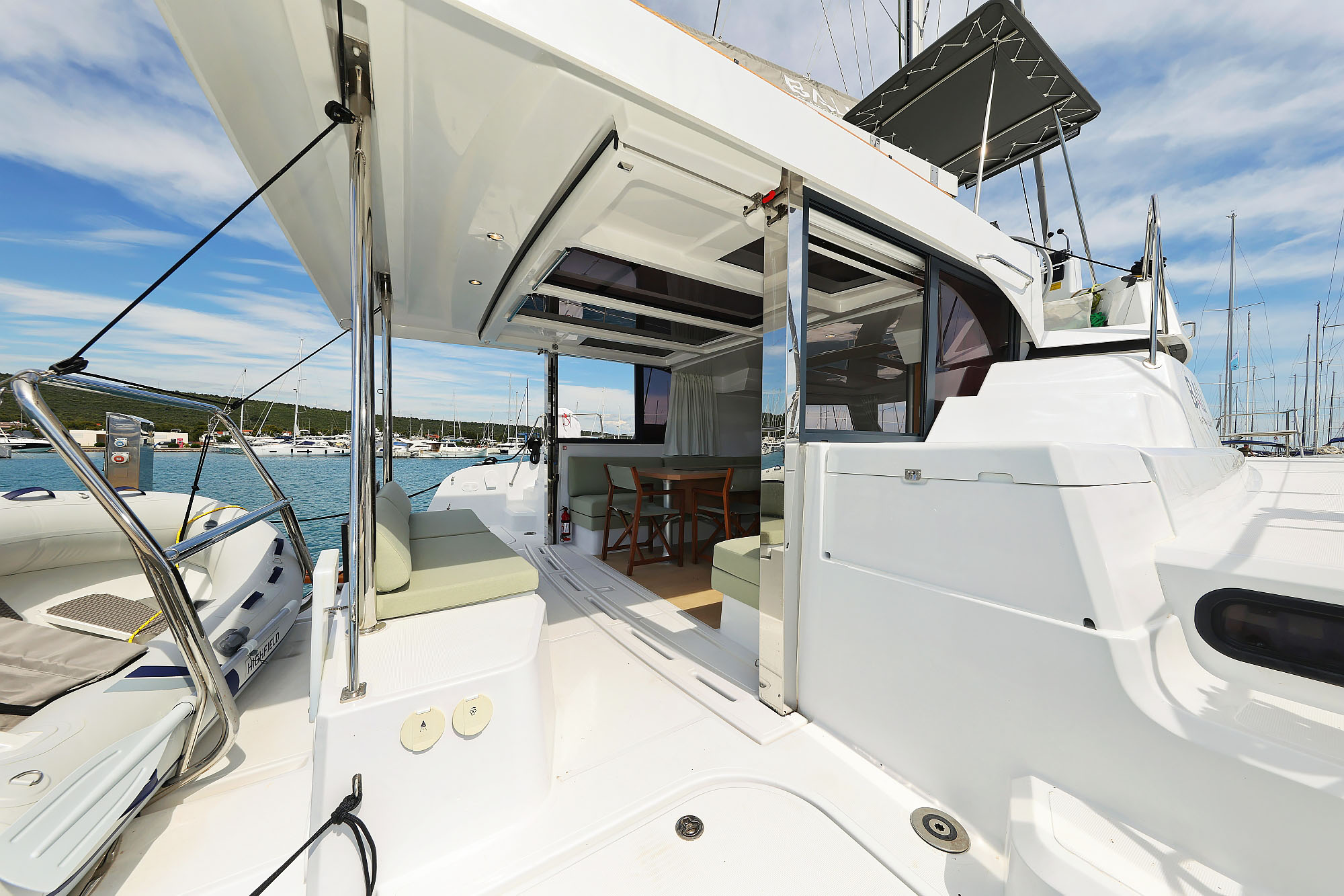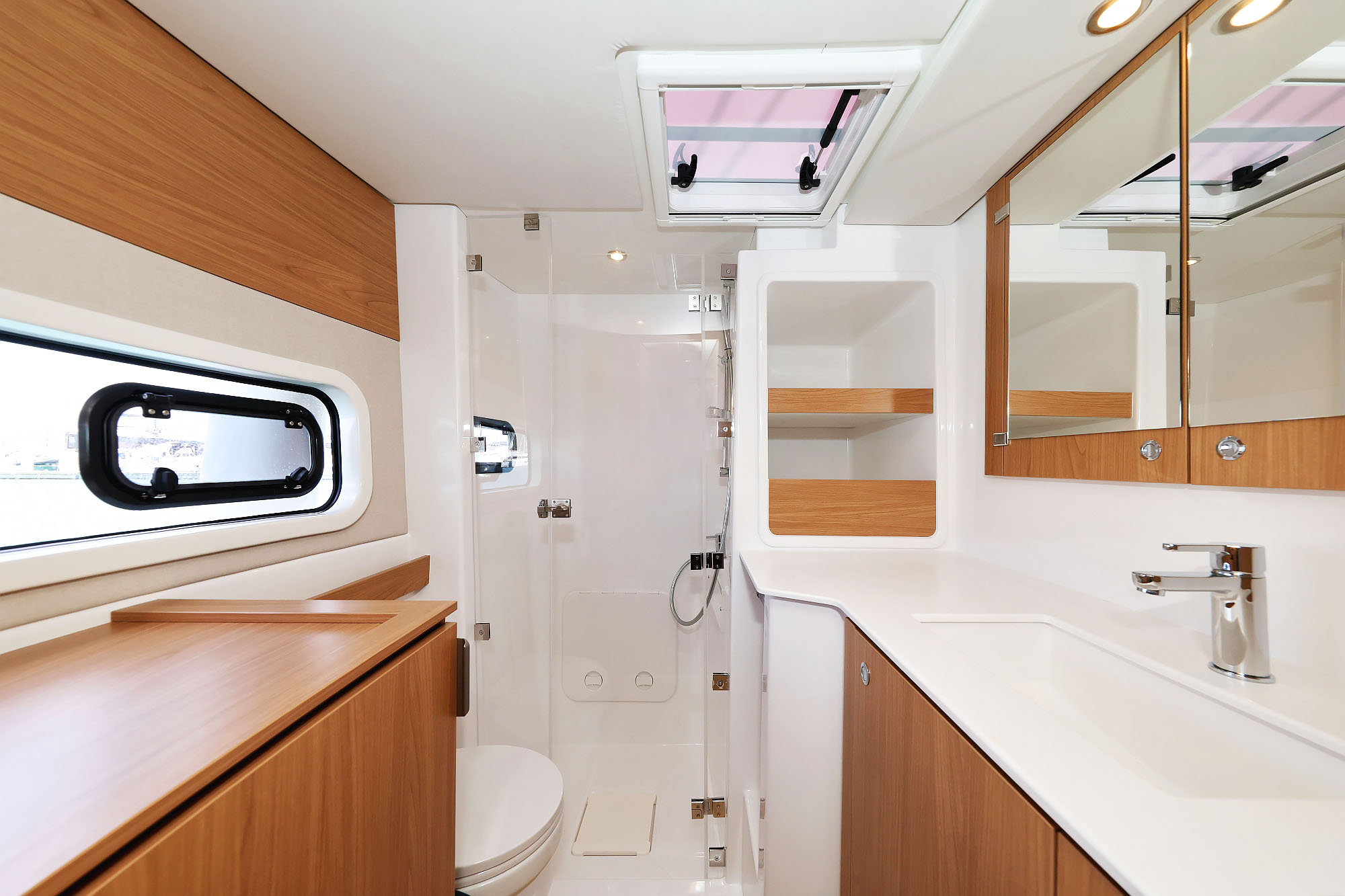 | Outside | Badeplattform, Biminitop, Cockpitdusche, Cockpitlautsprecher, Cockpitpolster, Cockpittisch, Deckpolster, Solaranlage, Sonnendeck |