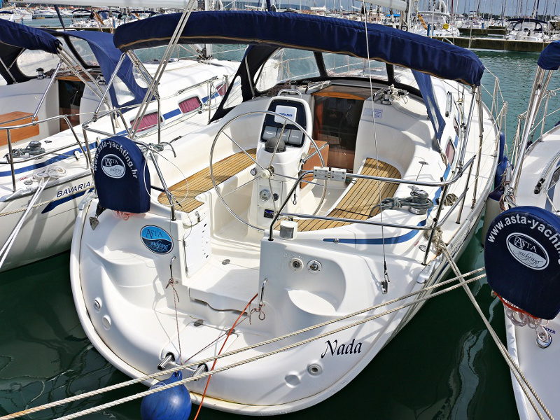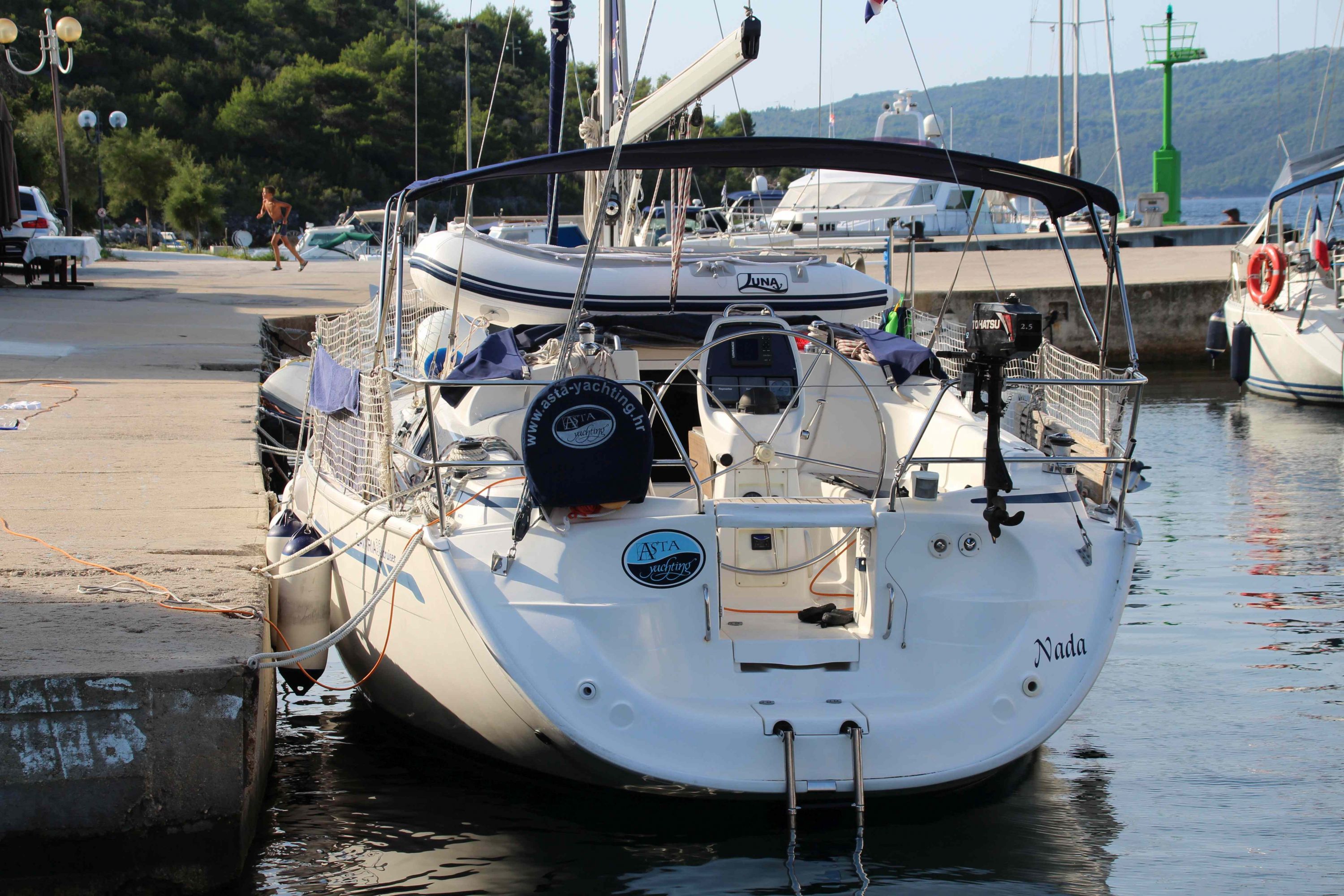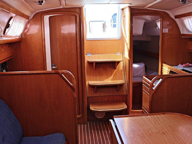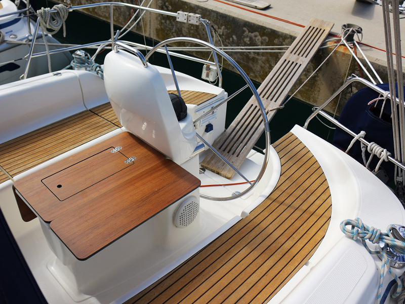| Outside | Biminitop, Bootshaken, Buganker, Cockpitdusche, Cockpittisch, Deckbürste, Dieselkanister , Eimer mit Seil, elektr. Ankerwinsch, Fender, Festmacherleinen, Gangway, Sprayhood, Wasserschlauch, Winschen |