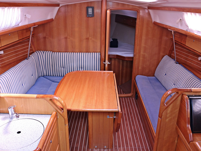 | Outside | Biminitop, Bootshaken, Buganker, Cockpitdusche, Cockpittisch, Deckbürste, Dieselkanister , Eimer mit Seil, elektr. Ankerwinsch, Fender, Festmacherleinen, Gangway, Sprayhood, Wasserschlauch, Winschen |
