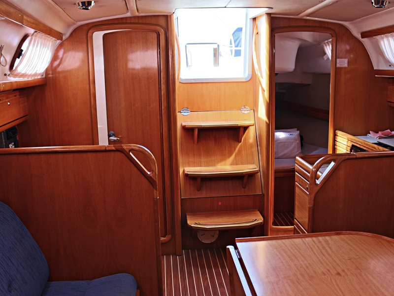 Inside 12V Steckdose, 220V Steckdosen, CD-Player, Gasherd, Kleiderbügel, Kühlschrank, Ladegerät, Landstromkabel, Luftpumpe für Beiboot, Pantryausstattung, Salontisch absenkbar, Spülbecken, Trichter, Warmwasser
