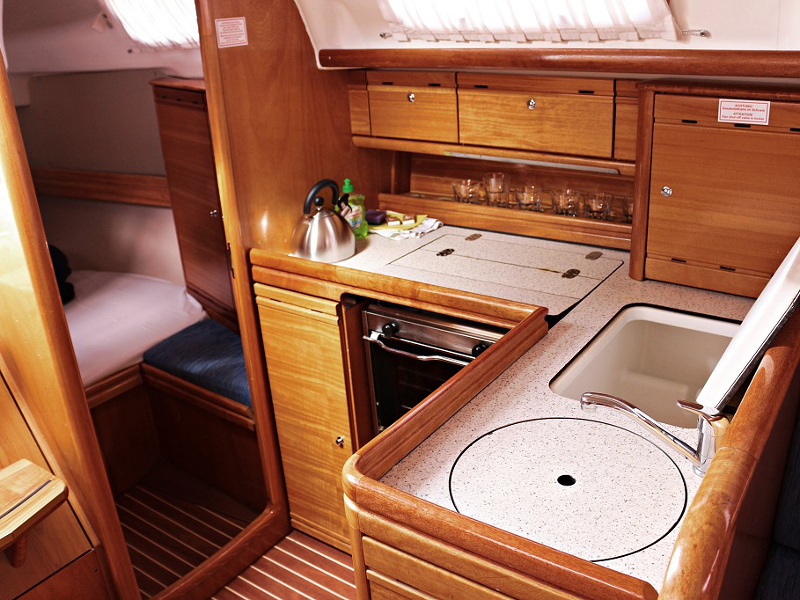| Safety | Autopilot, Bilgepumpe, Bootsmannstuhl, Bordapotheke, Bordwerkzeug, Feststoffschwimmwesten, Feuerlöscher, Flaggen, Lifebelts, Nebelhorn, Notsignale, Rettungsbojenlicht, Rettungsring, Taschenlampe, UKW-Funk, Zweitanker |