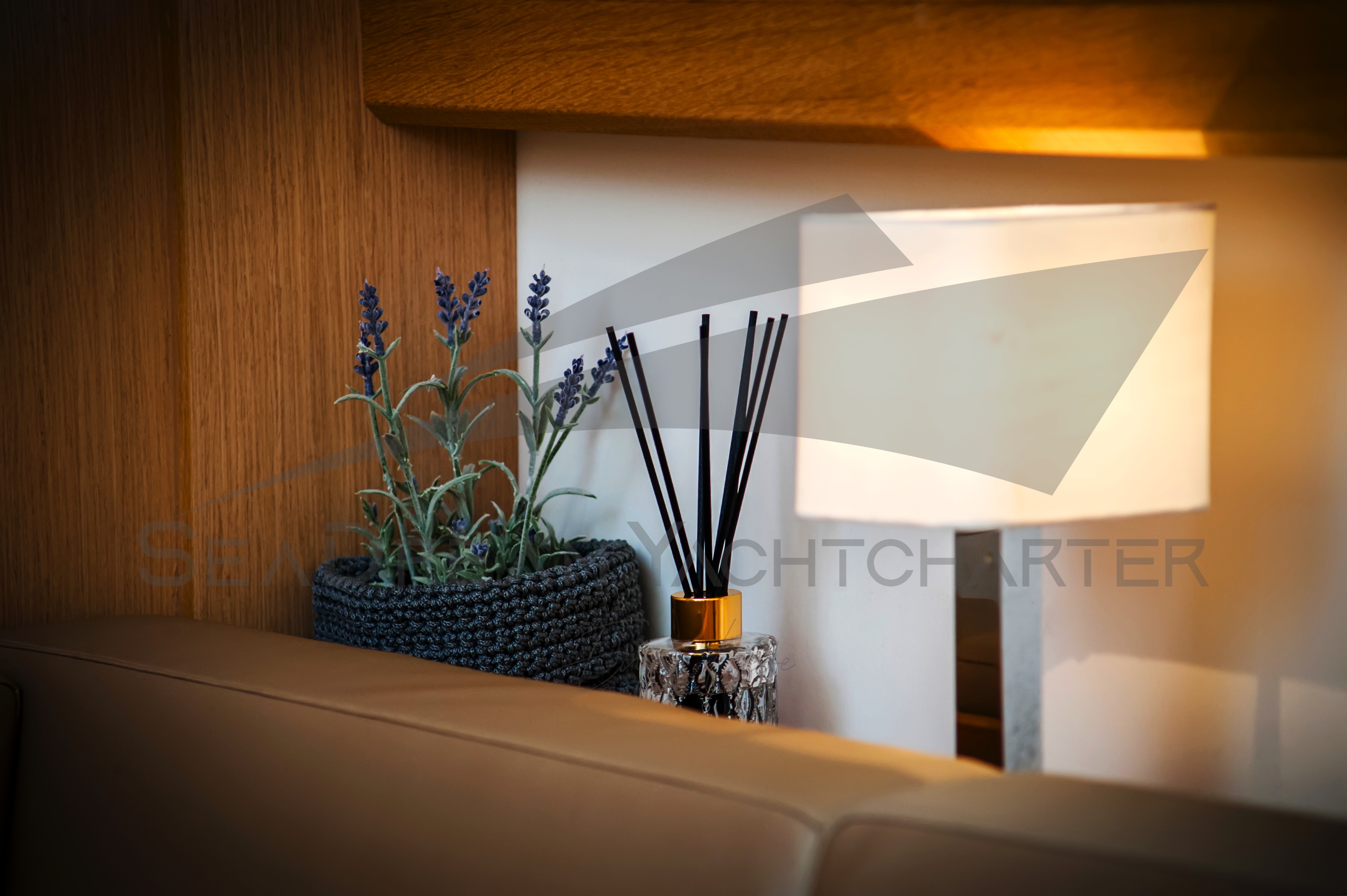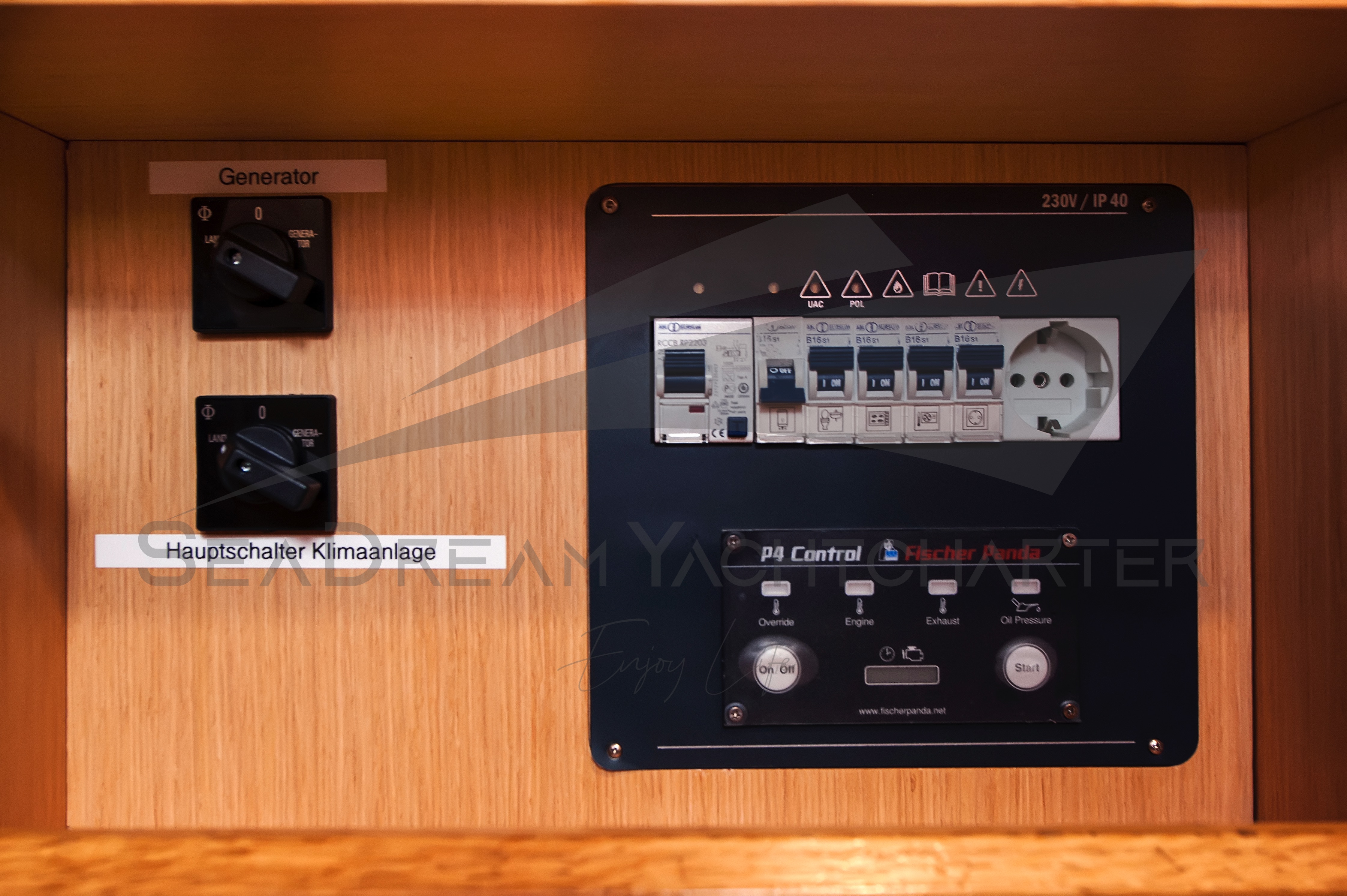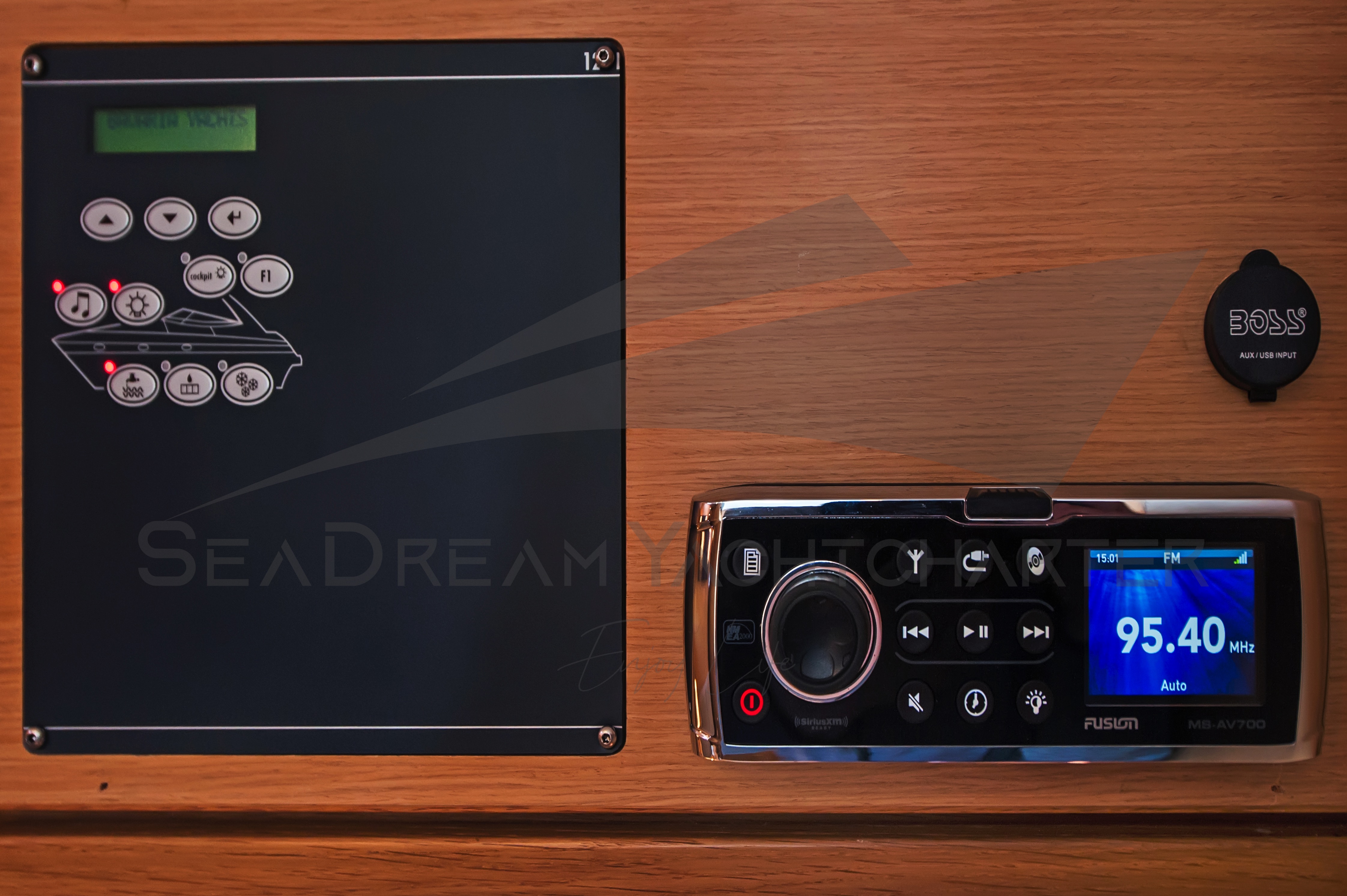 | Inside | Eiswürfelmaschine, FUSION Sound System, Generator, Klimaanlage (ohne Landstrombedarf), Kühlschrank, Pantryausstattung, TV |