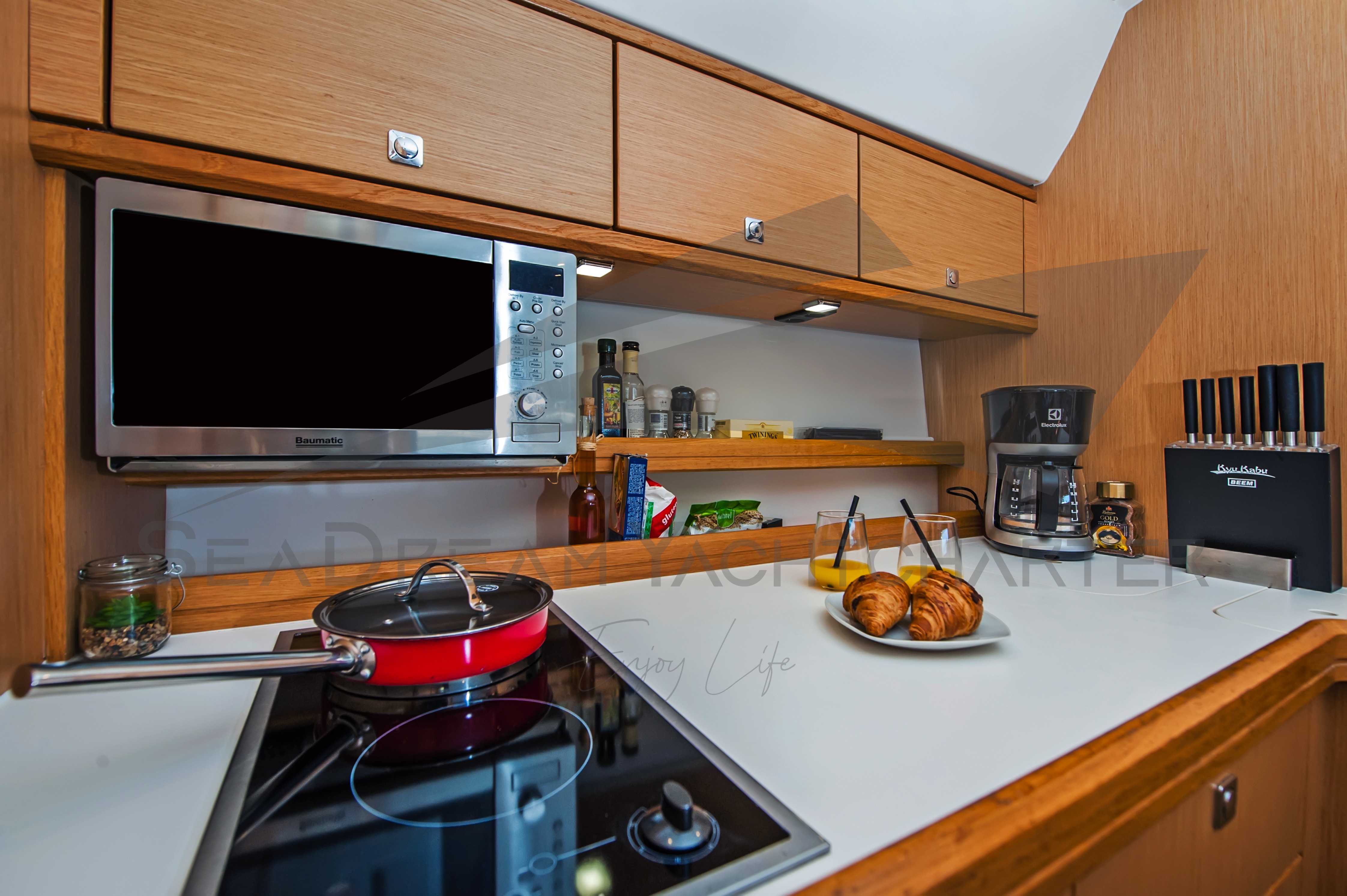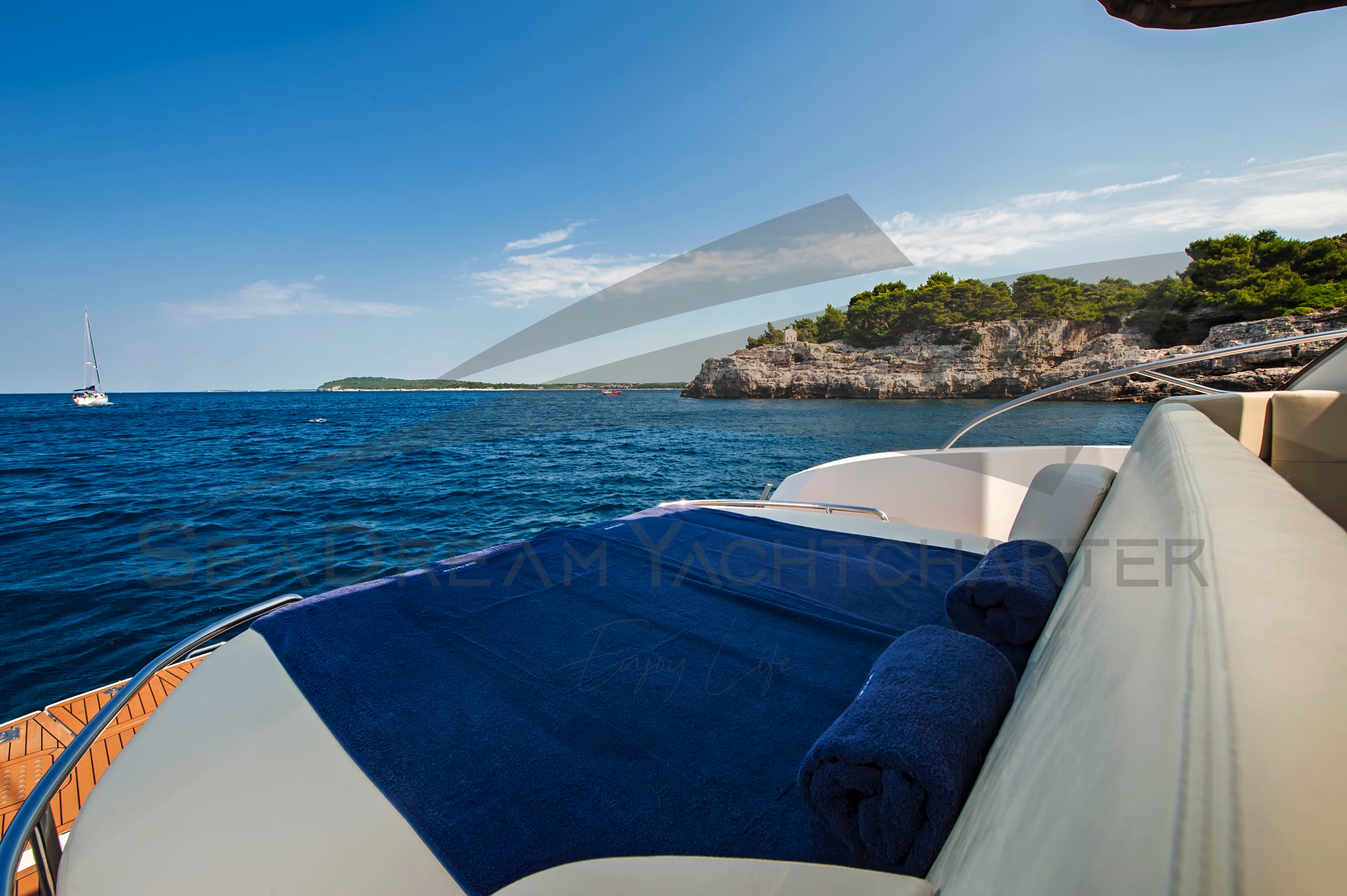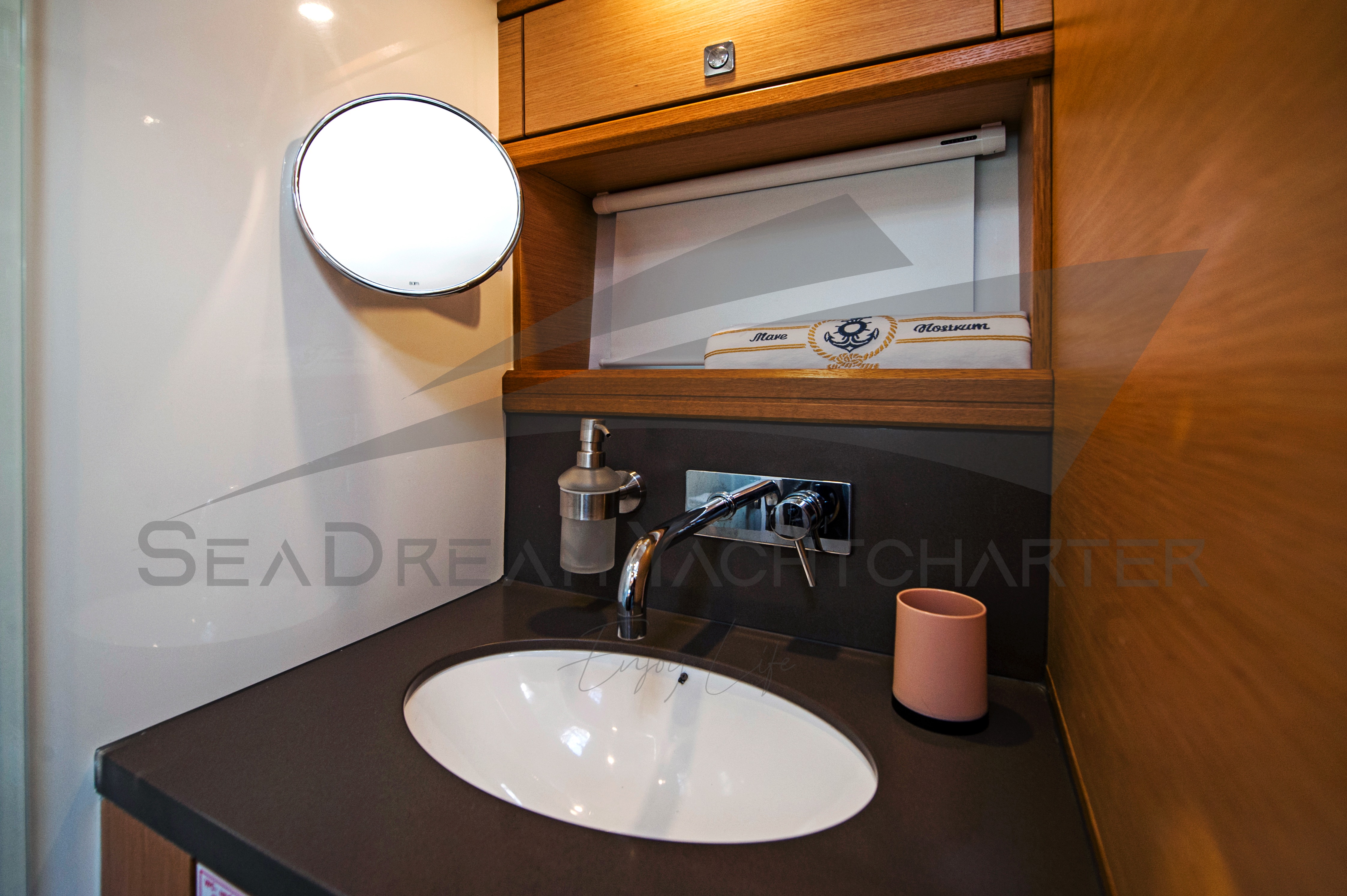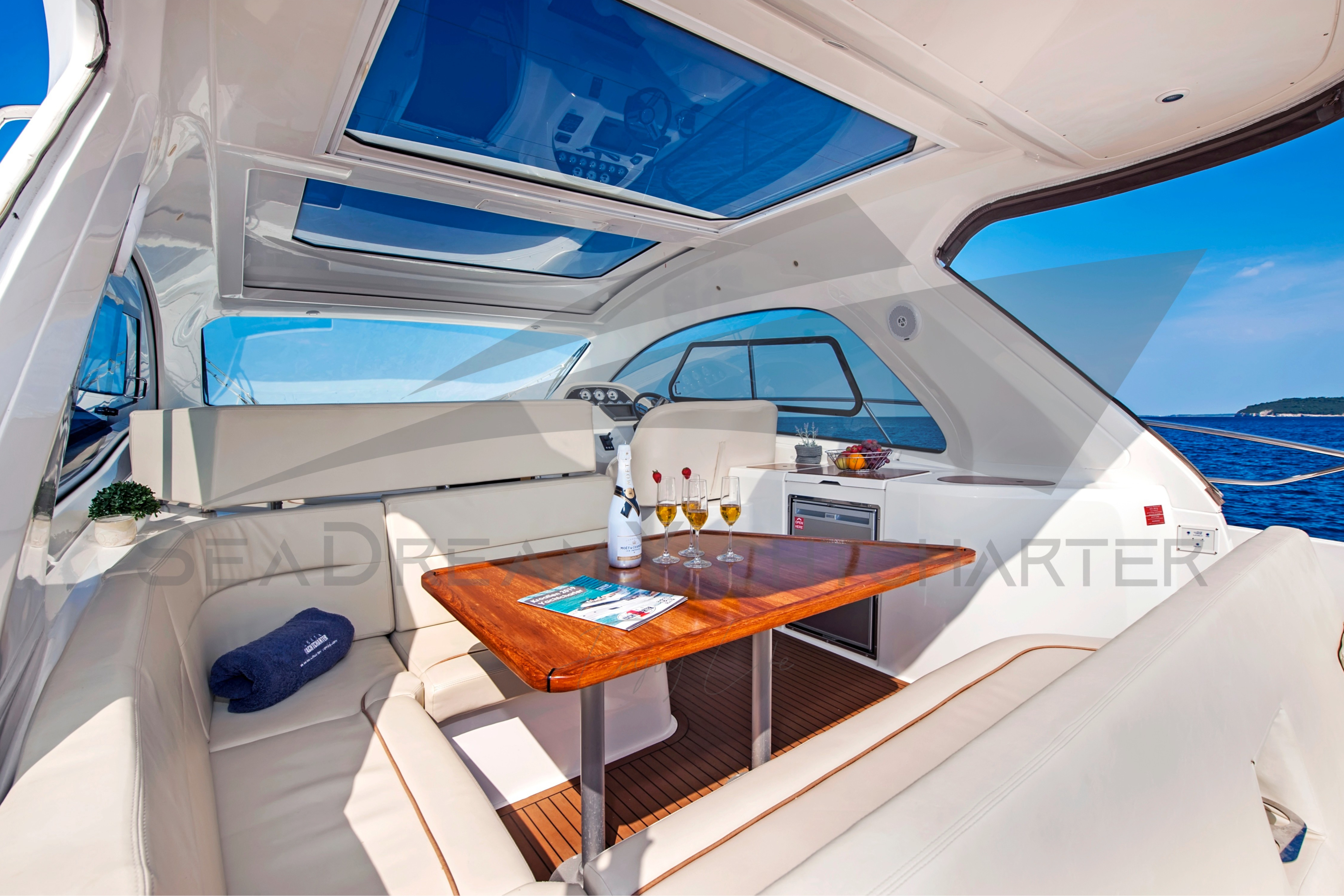 | Inside | Eiswürfelmaschine, FUSION Sound System, Generator, Klimaanlage (ohne Landstrombedarf), Kühlschrank, Pantryausstattung, TV |