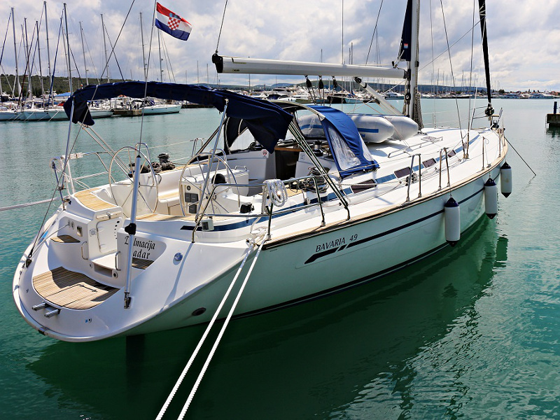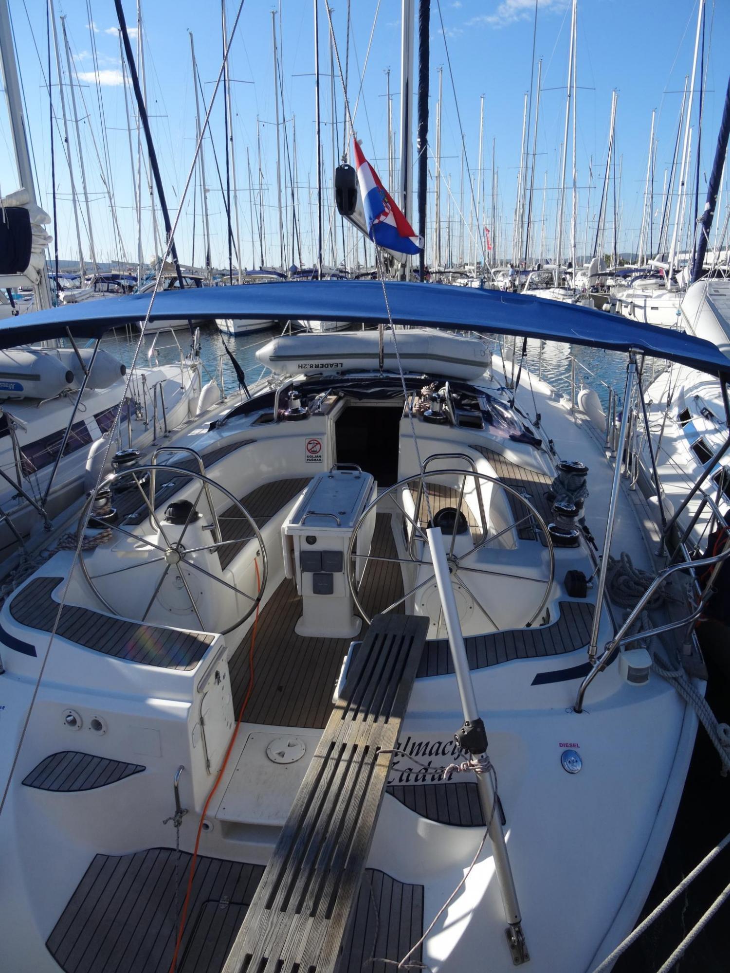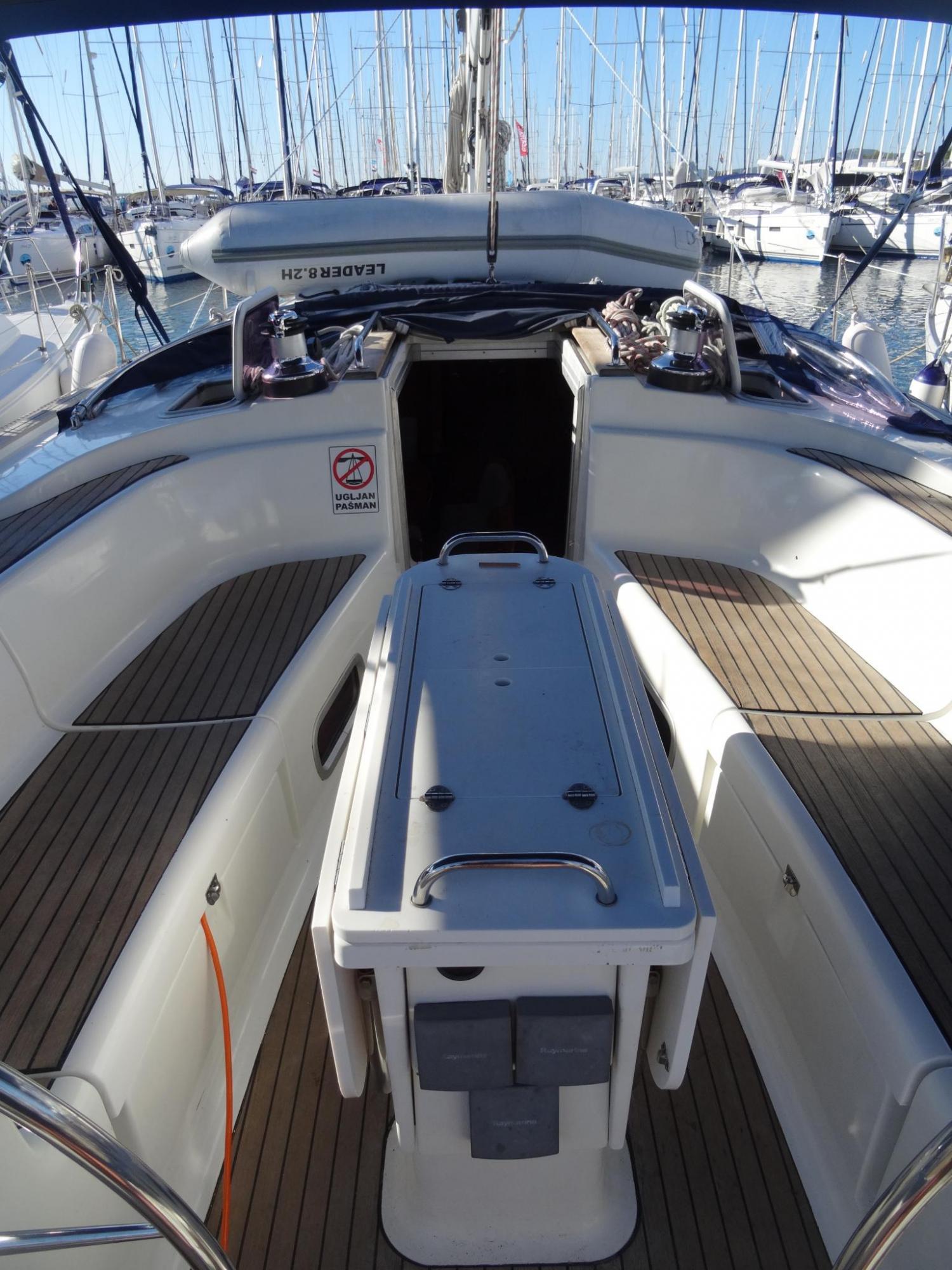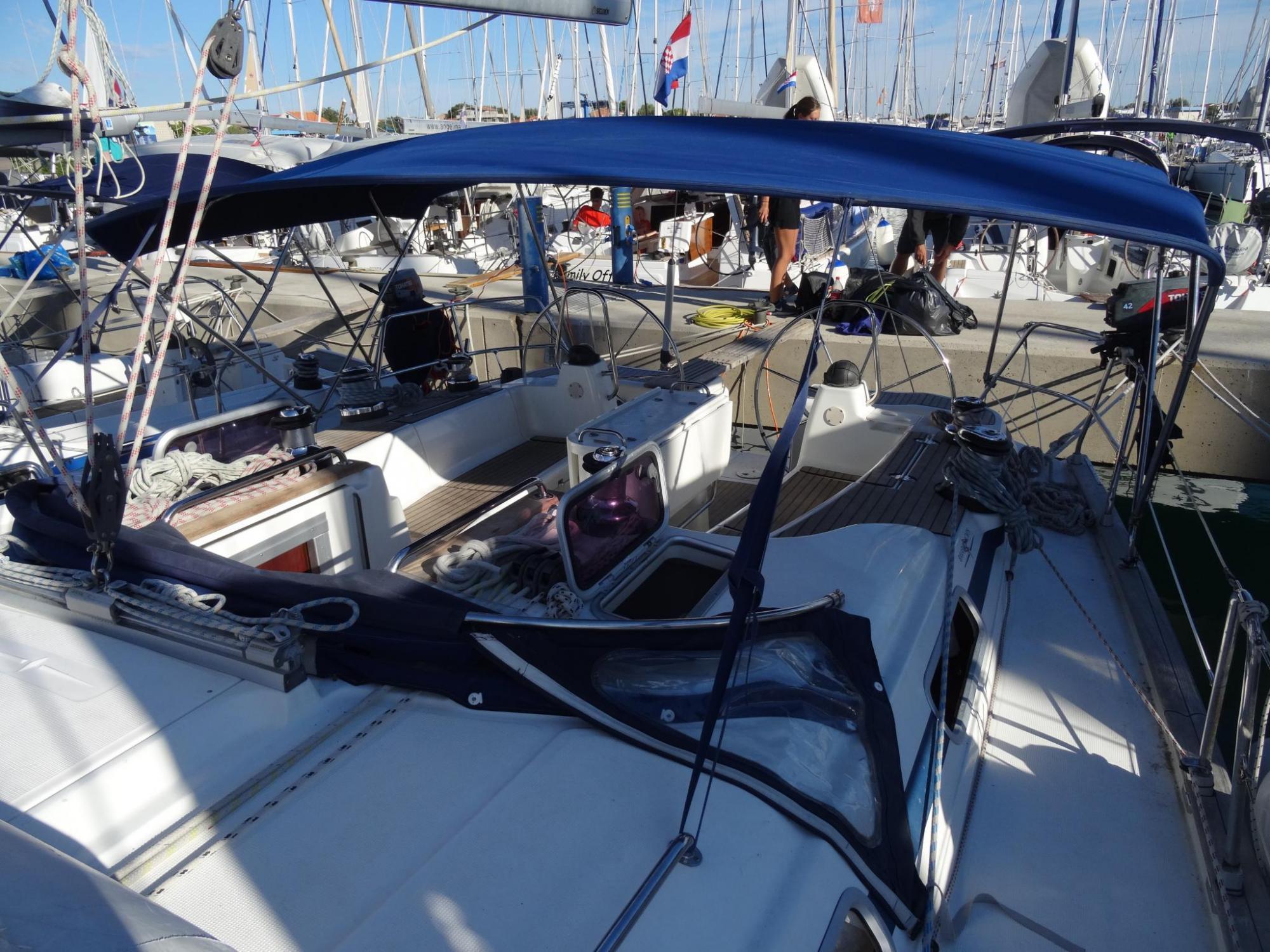 | Outside | Biminitop, Bootshaken, Buganker, Cockpitdusche, Cockpittisch, Deckbürste, Dieselkanister , Eimer mit Seil, elektr. Ankerwinsch, Fender, Festmacherleinen, Gangway, Sprayhood, Wasserschlauch, Winschen |