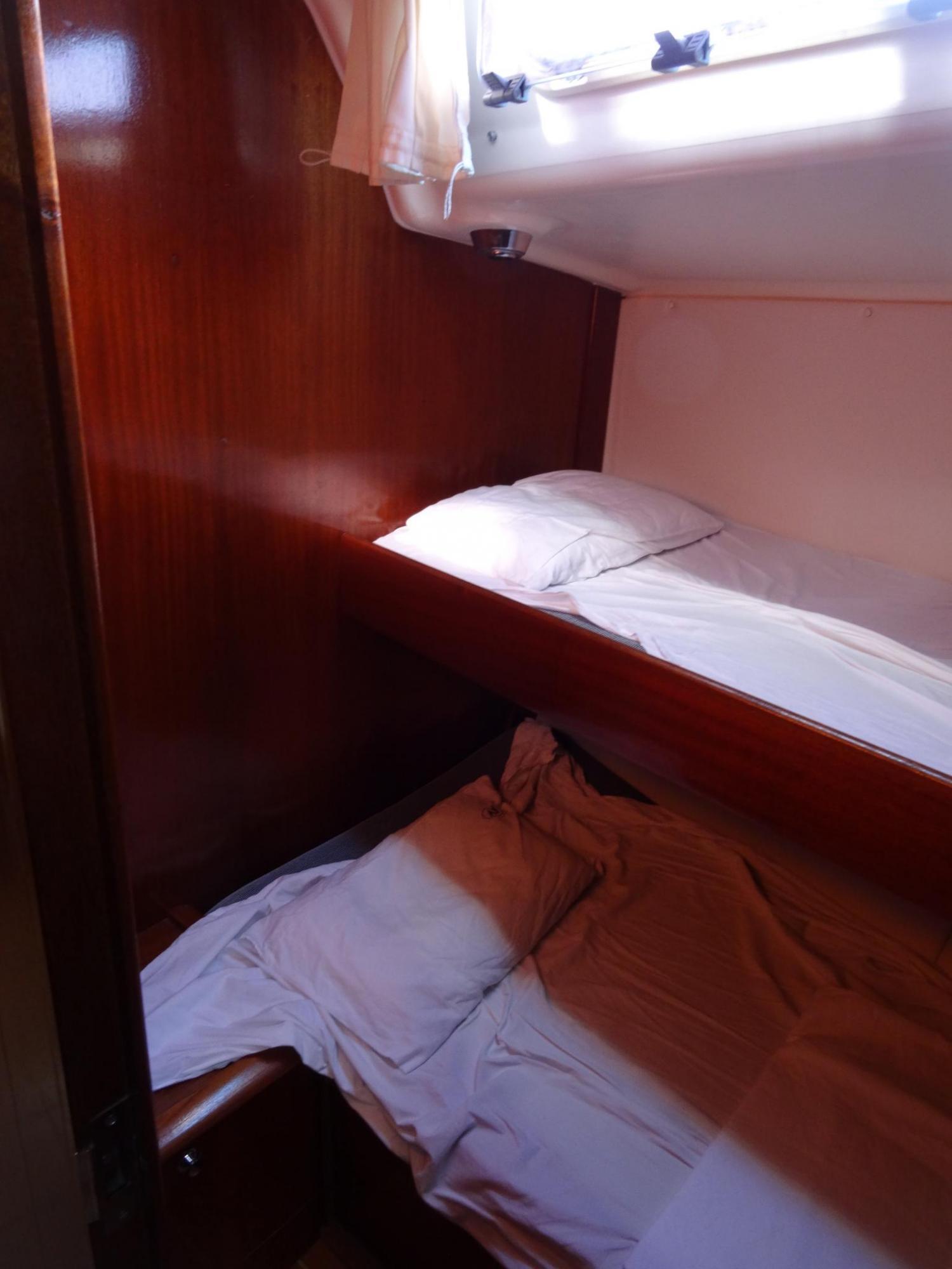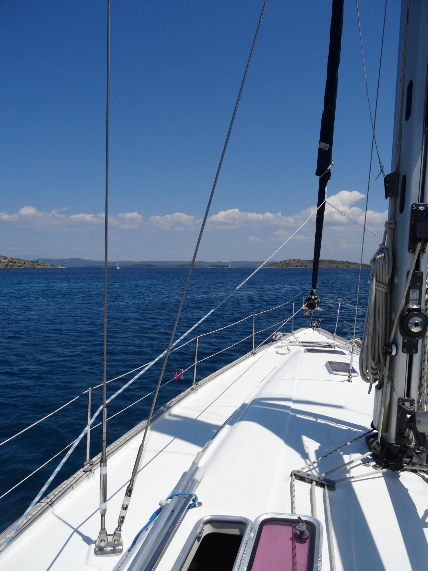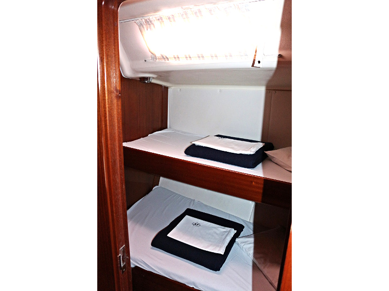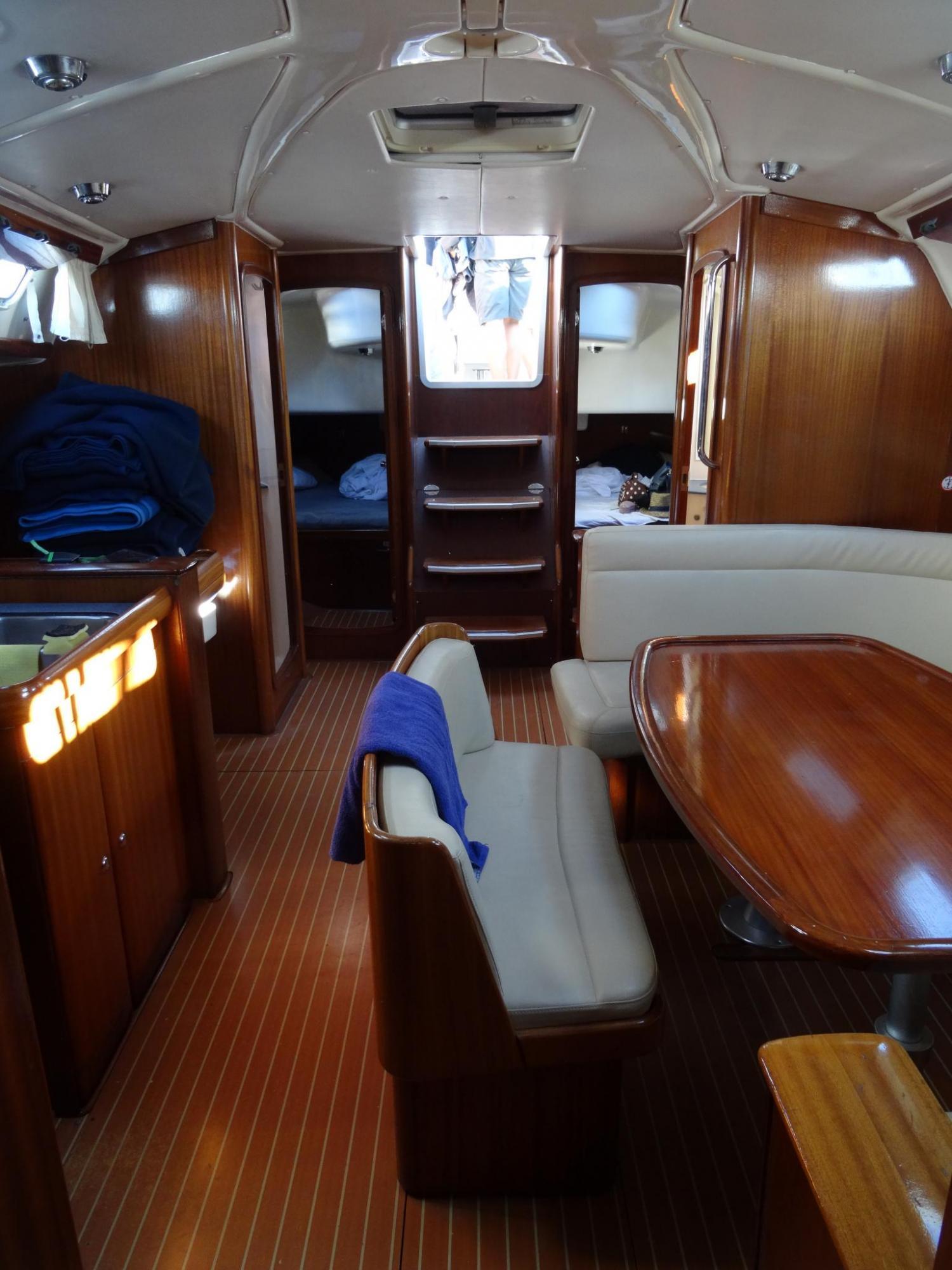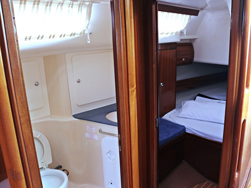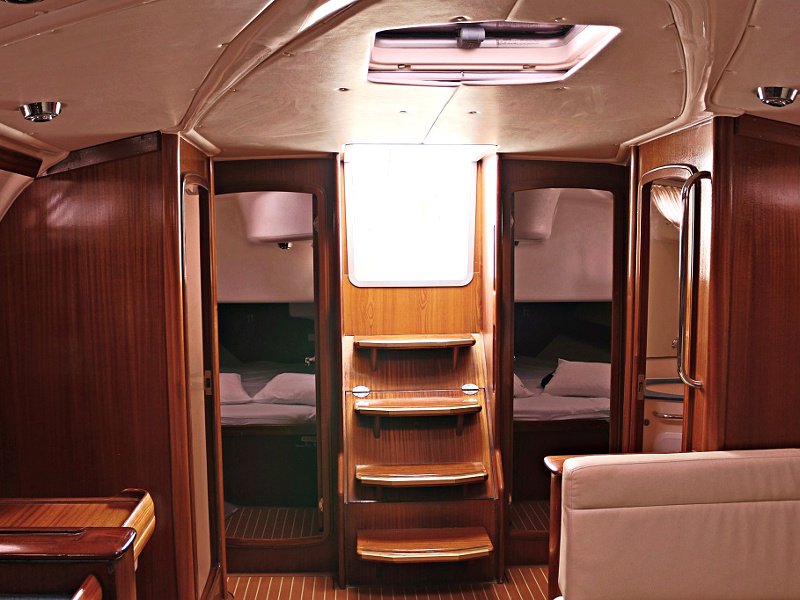 | Navigation | Barometer, Echolot, Fernglas, GPS mit Kartenplotter im Salon, Hafenhandbücher, Handpeilkompass, Kompass, Navigationsbesteck, Seekarten, Sumlog, Windmesser |