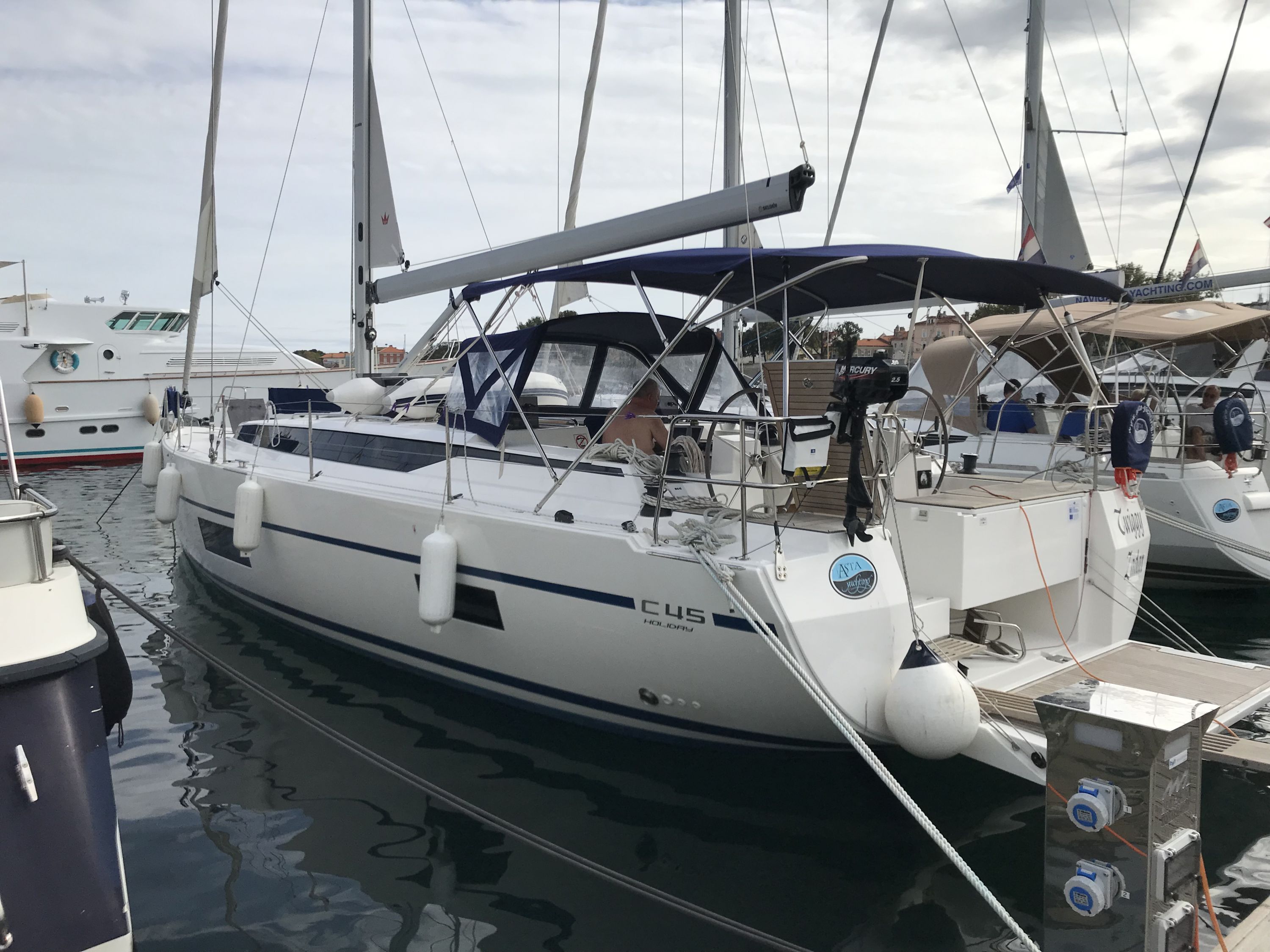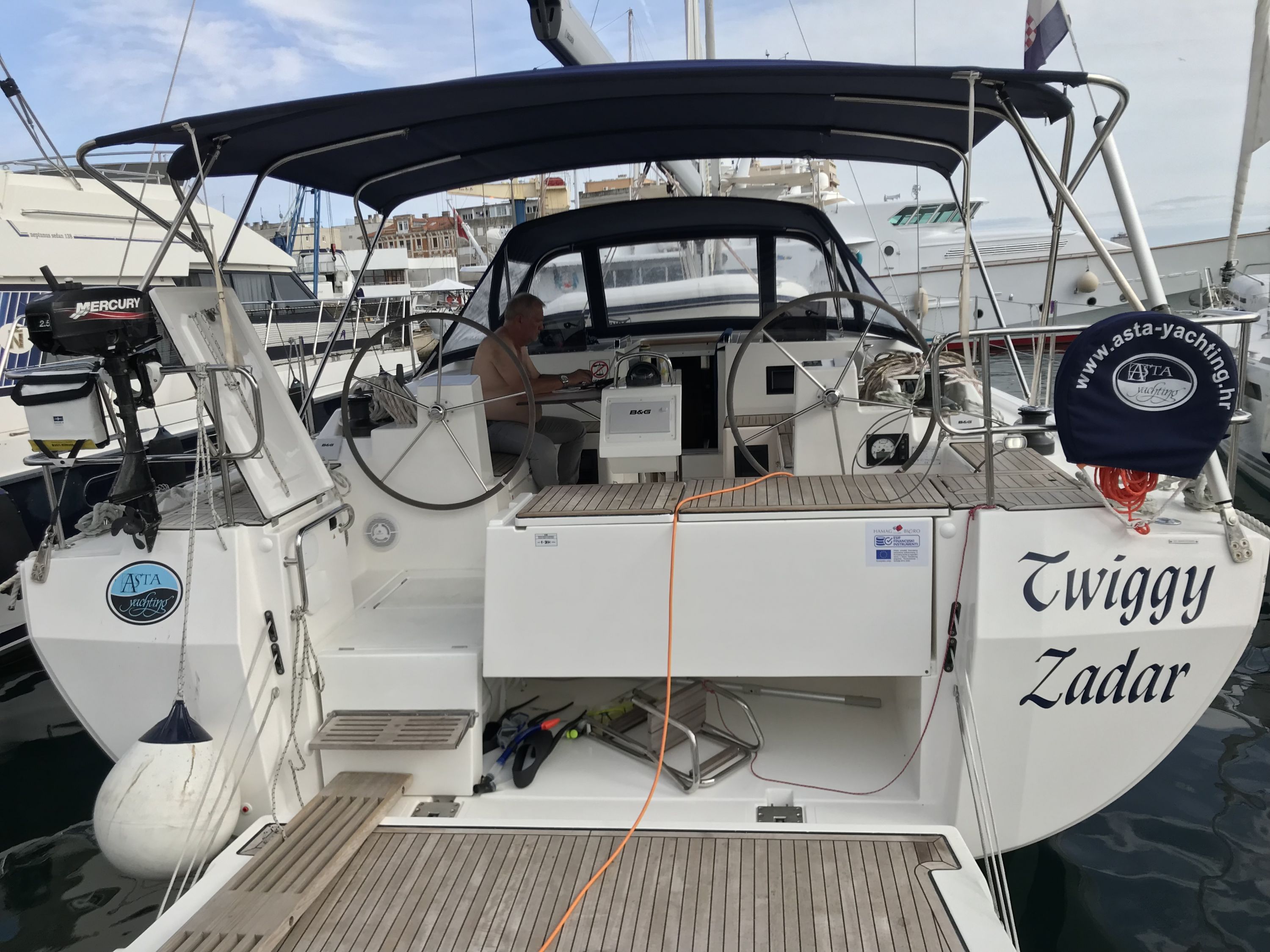 | Outside | Badeplattform, Biminitop, Bootshaken, Buganker, Cockpitdusche, Cockpittisch, Deckbürste, Dieselkanister , Eimer mit Seil, elektr. Ankerwinsch, Fender, Festmacherleinen, Gangway, Solaranlage, Sprayhood, Wasserschlauch, Winschen |
