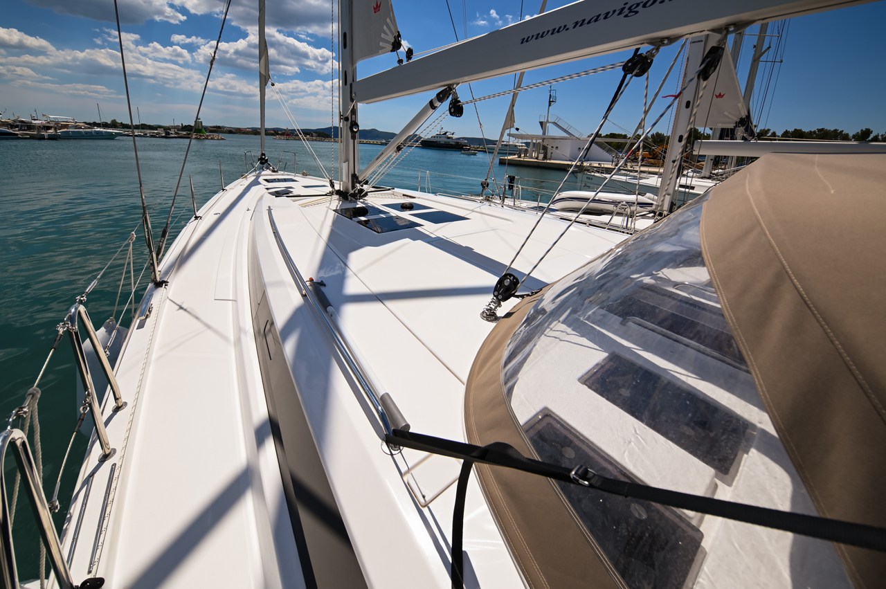 | Outside | Biminitop, Cockpitpolster, Solaranlage, Sprayhood, Teak im Cockpit |