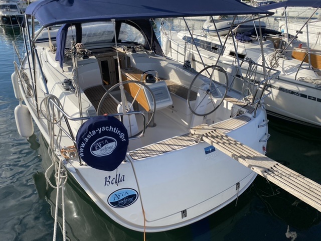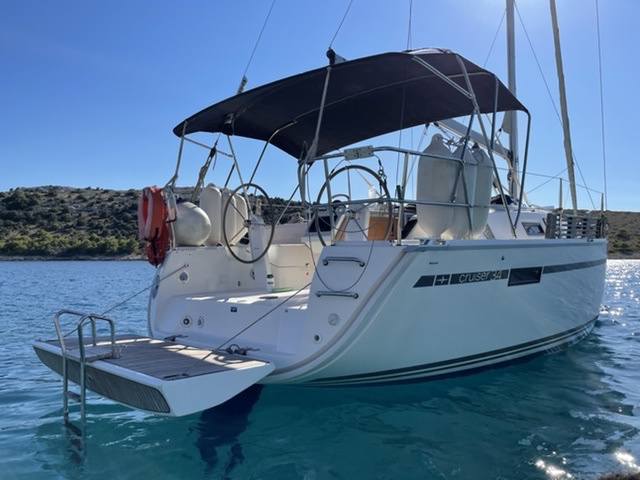 | Outside | Badeplattform, Biminitop, Bootshaken, Buganker, Cockpitdusche, Cockpittisch, Deckbürste, Dieselkanister , Eimer mit Seil, elektr. Ankerwinsch, Fender, Festmacherleinen, Gangway, Solaranlage, Sprayhood, Wasserschlauch, Winschen |
