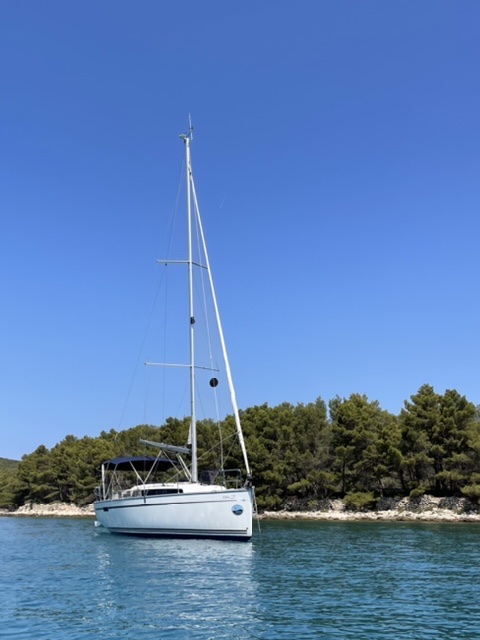Bella ist 6 Jahre alt, Segel sind gut. Fenderleinen und Mooringleinen müssten entsalzt werden, die sind steif geworden. Ankerkette muss gesichert sein, da Ankerwinsch unter Zug rutscht. Gute Instrumentierung, Autopilot okay (Damping Probleme manchmal). HDG ca 10 Grad daneben.