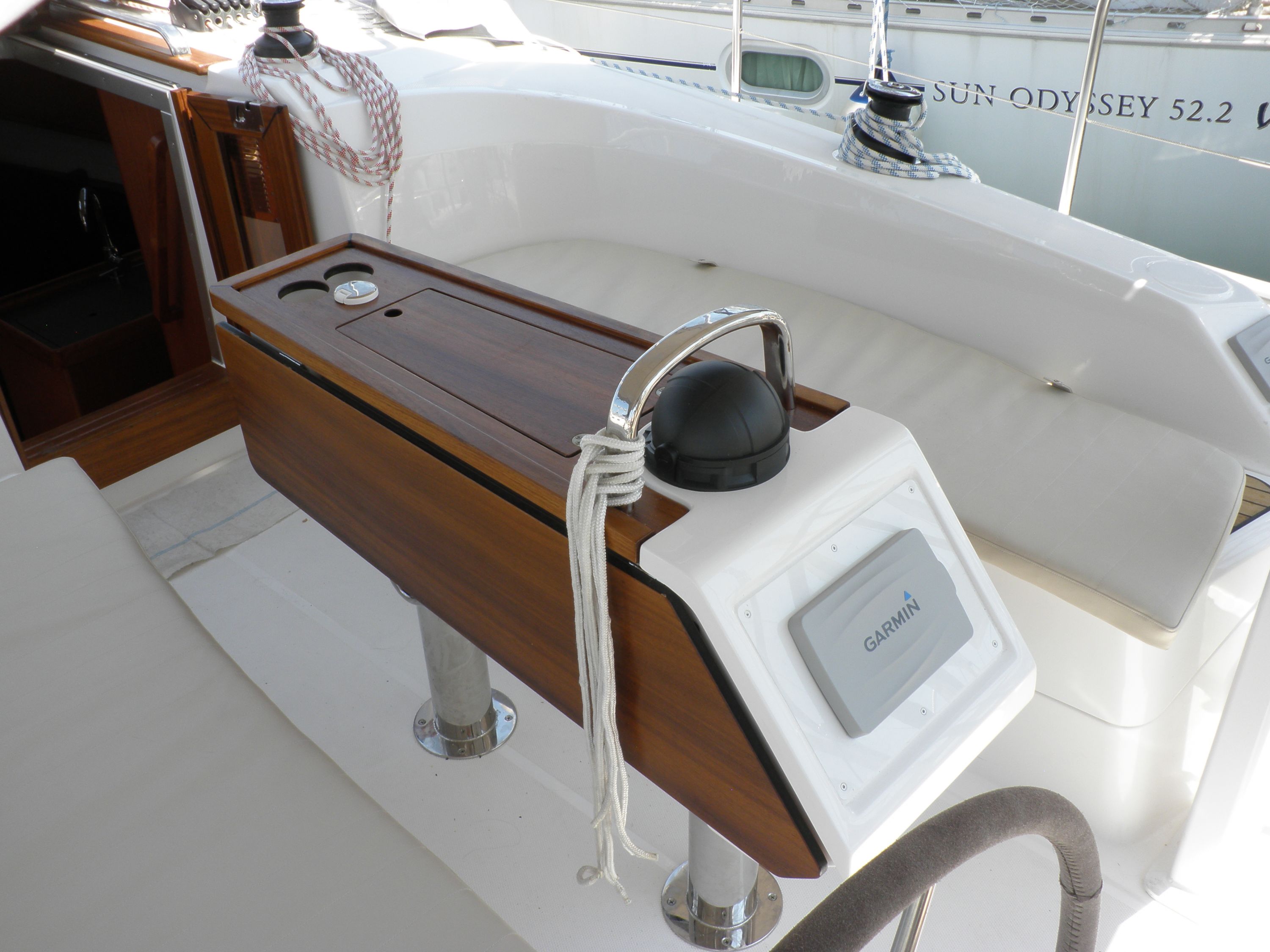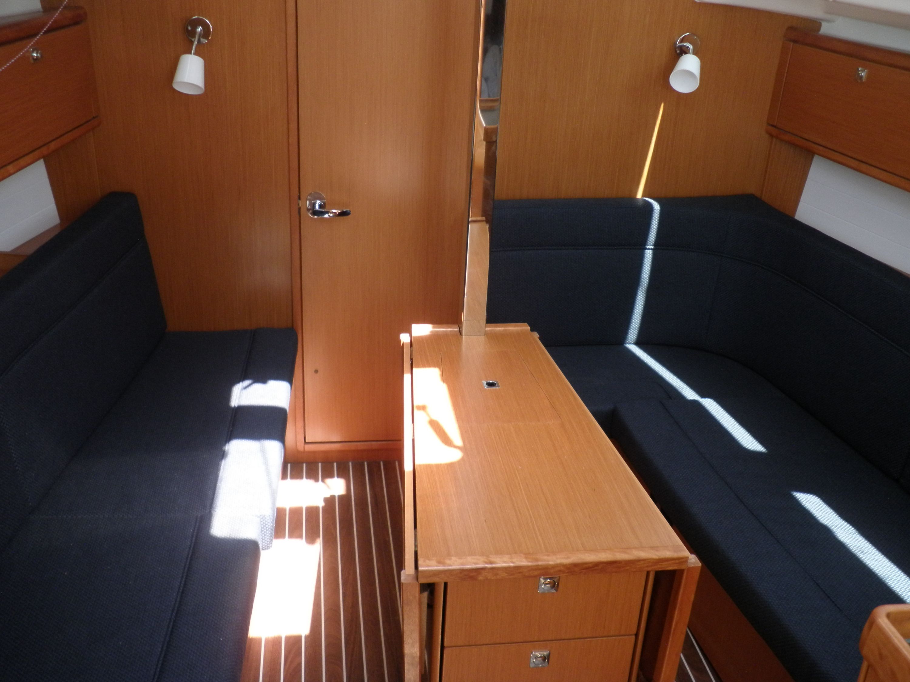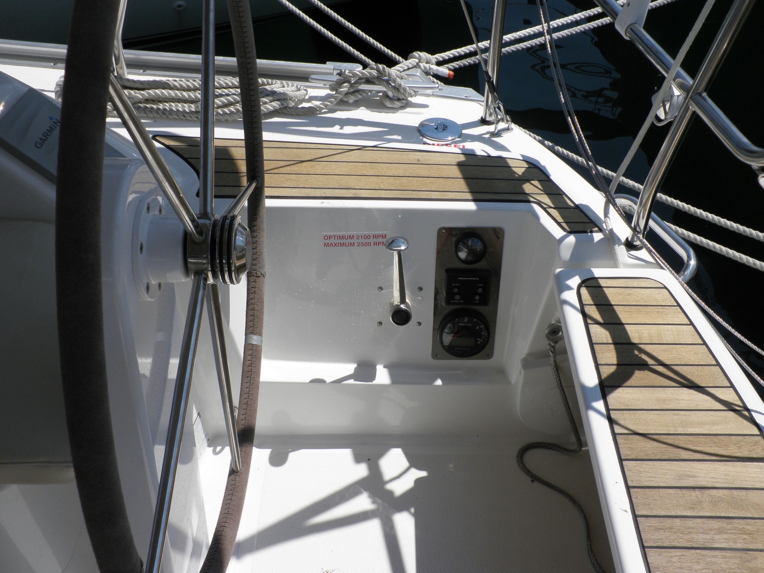 | Navigation | Barometer, Echolot, Fernglas, GPS mit Kartenplotter im Cockpit, Hafenhandbücher, Handpeilkompass, Seekarten, Sumlog, Windmesser |