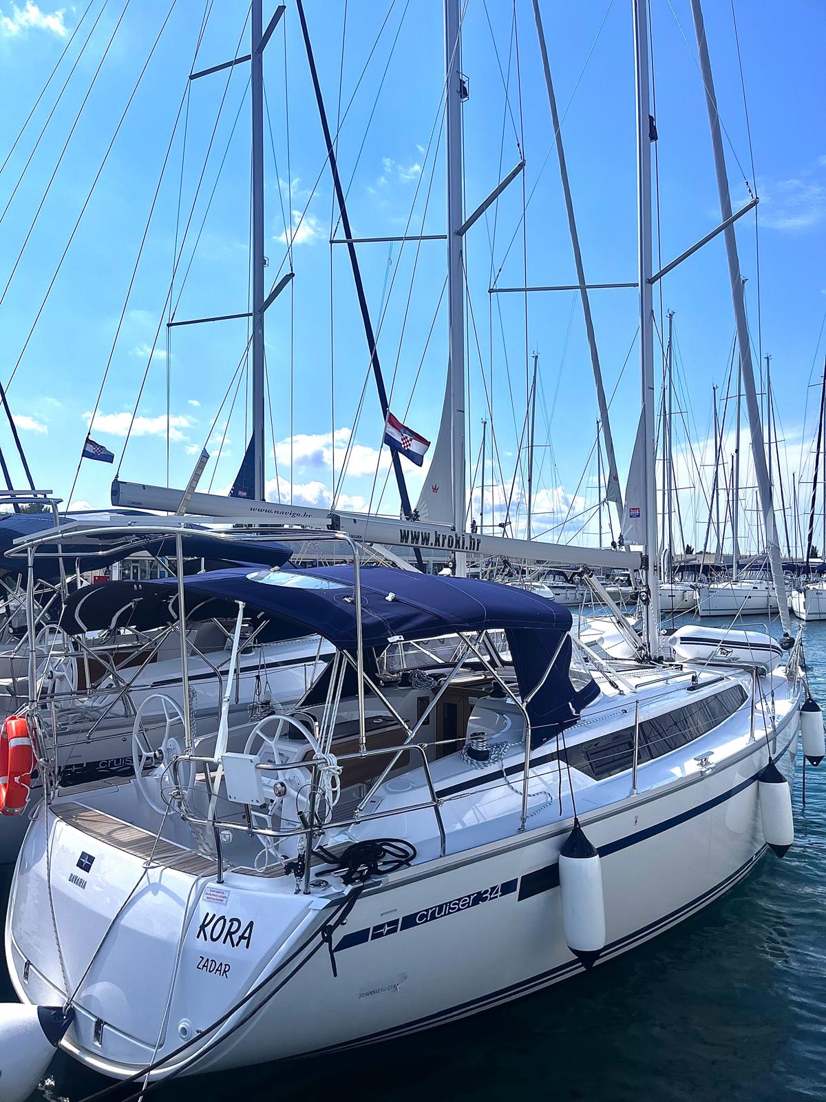 | Navigation | Barometer, Echolot, Fernglas, GPS mit Kartenplotter im Cockpit, Hafenhandbücher, Handpeilkompass, Seekarten, Sumlog, Windmesser |