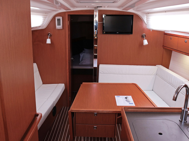 | Outside | Badeplattform, Biminitop, Bootshaken, Buganker, Cockpitdusche, Cockpittisch, Deckbürste, Dieselkanister , Eimer mit Seil, elektr. Ankerwinsch, Fender, Festmacherleinen, Gangway, Solaranlage, Sprayhood, Wasserschlauch, Winschen |