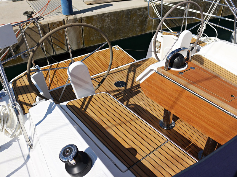 Outside Badeplattform, Biminitop, Bootshaken, Buganker, Cockpitdusche, Cockpittisch, Deckbürste, Dieselkanister , Eimer mit Seil, elektr. Ankerwinsch, Fender, Festmacherleinen, Gangway, Solaranlage, Sprayhood, Wasserschlauch, Winschen