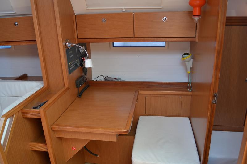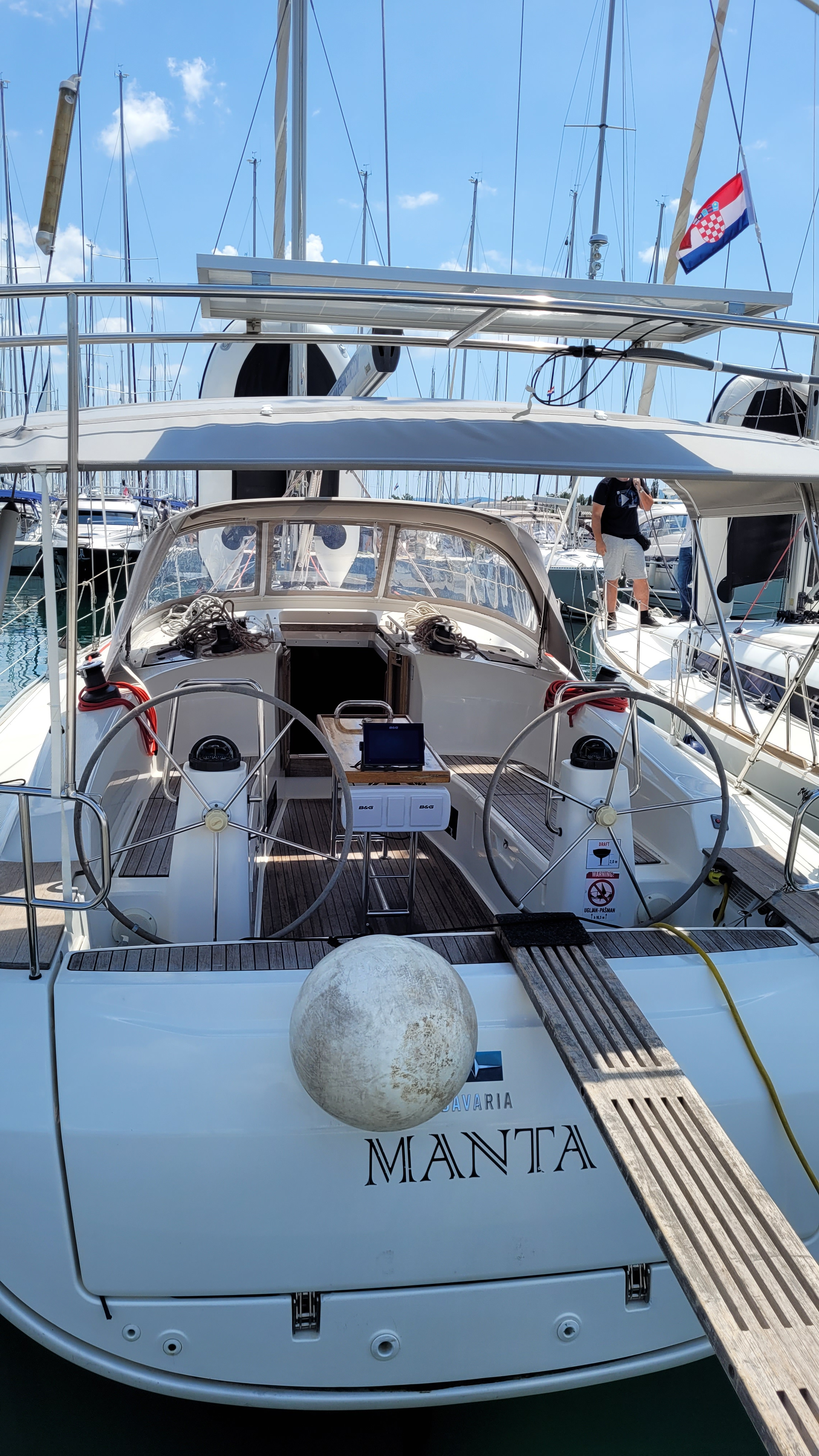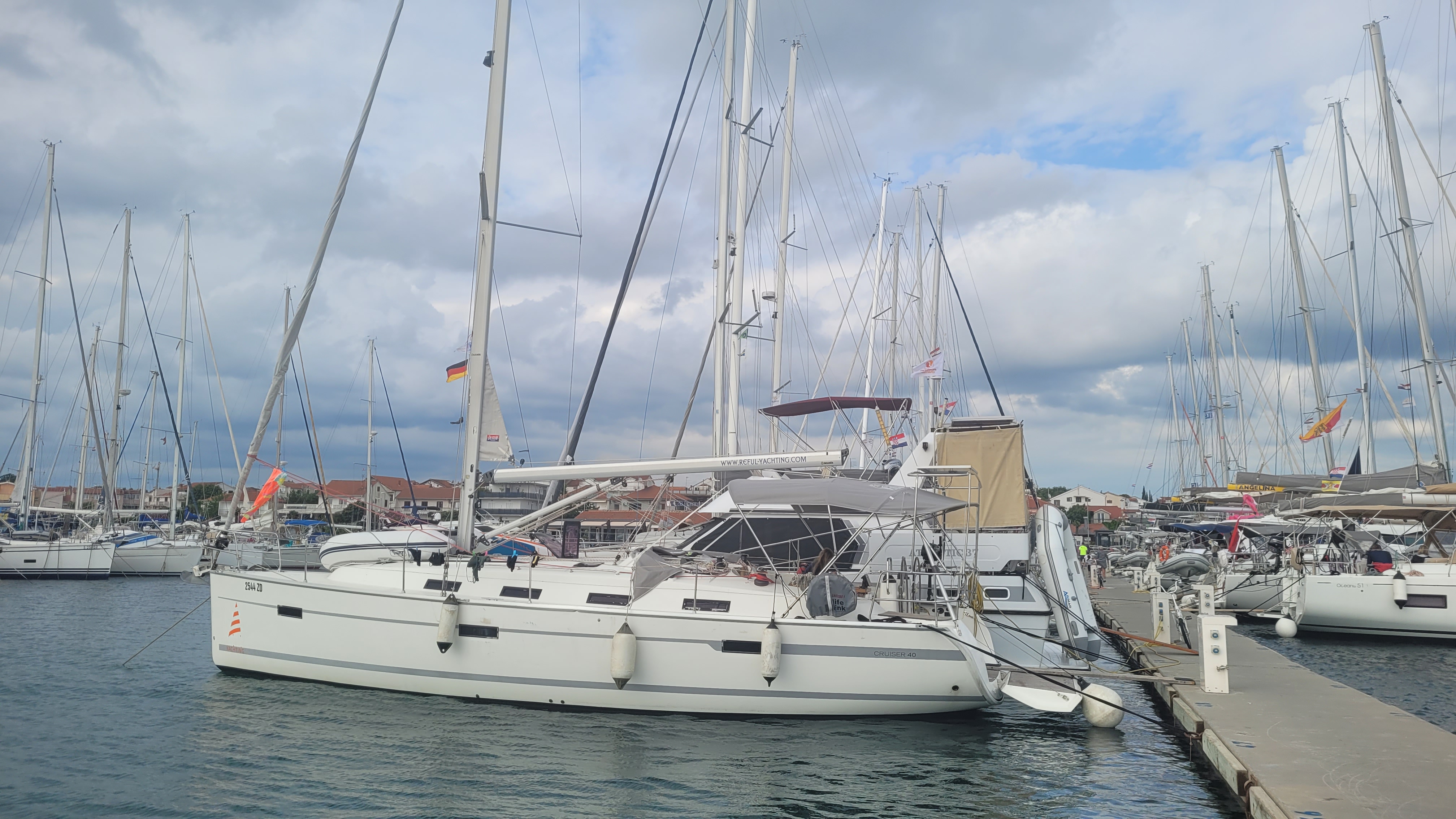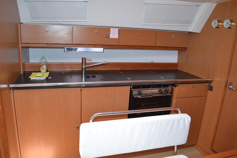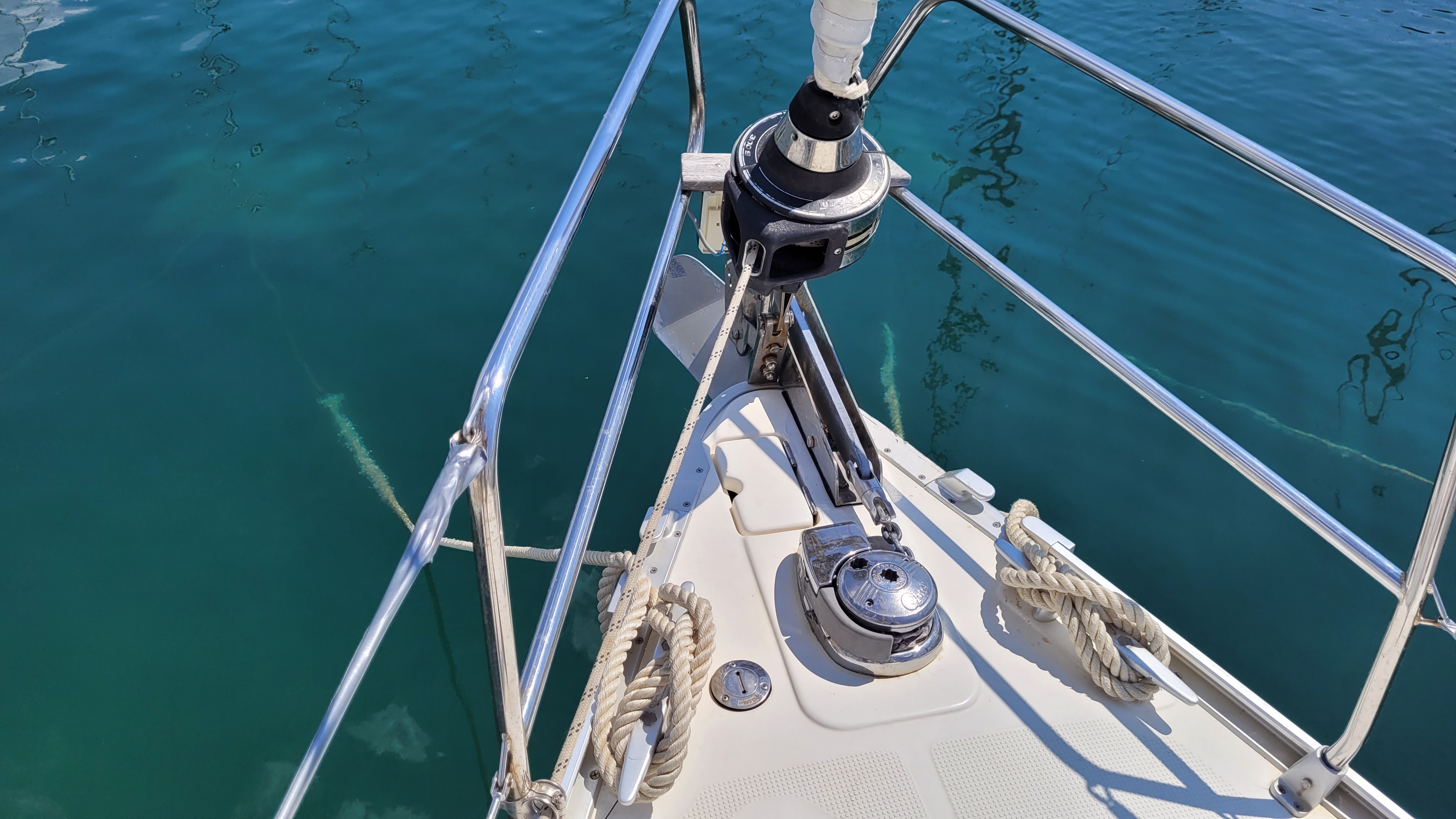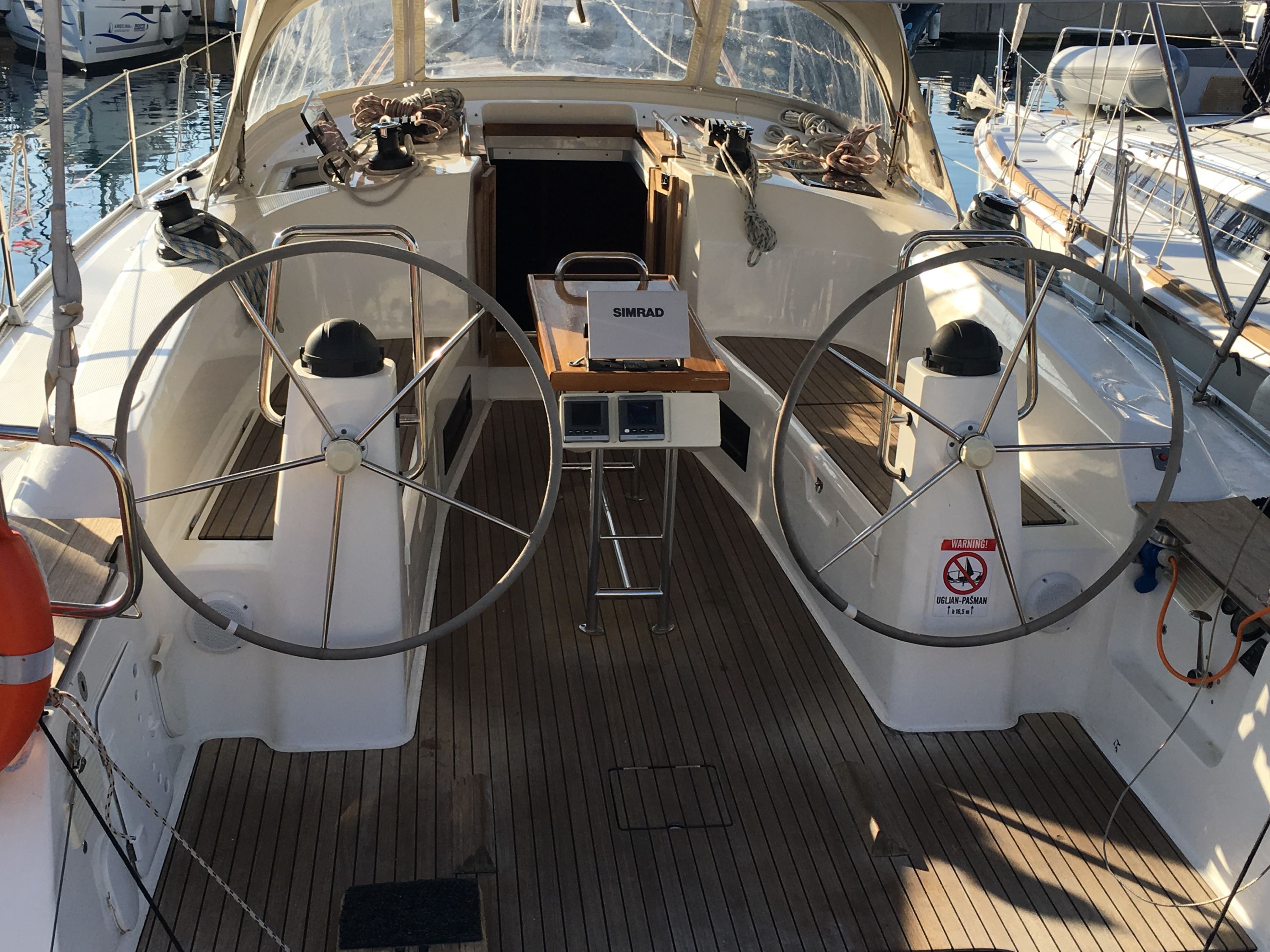 | Outside | 12 V-Anschluss, Biminitop, Cockpitdusche, Cockpittisch, elektr. Ankerwinsch, Gangway, Solaranlage, Sprayhood, Teak im Cockpit, Windex |