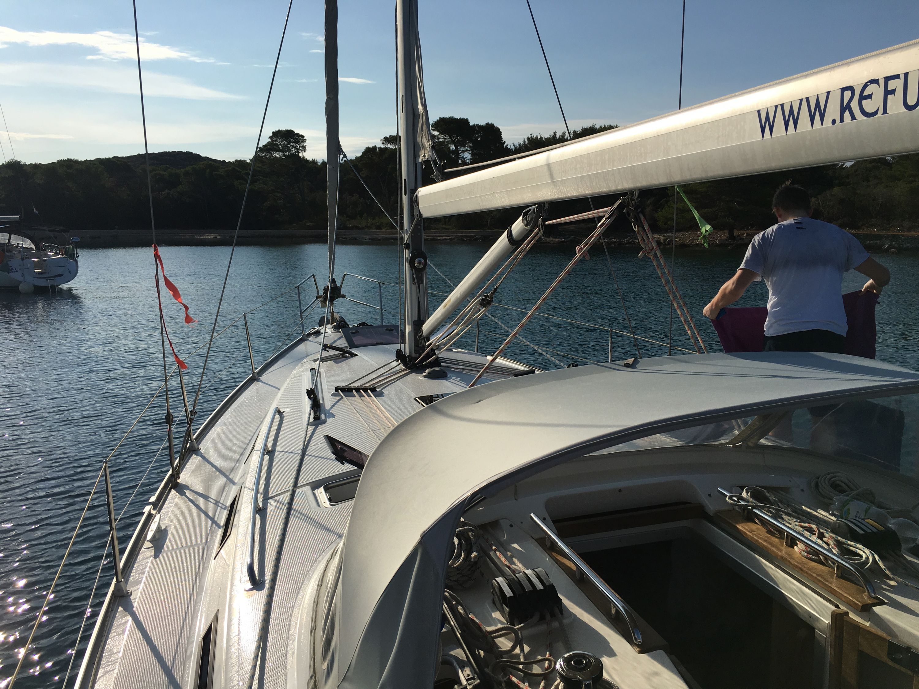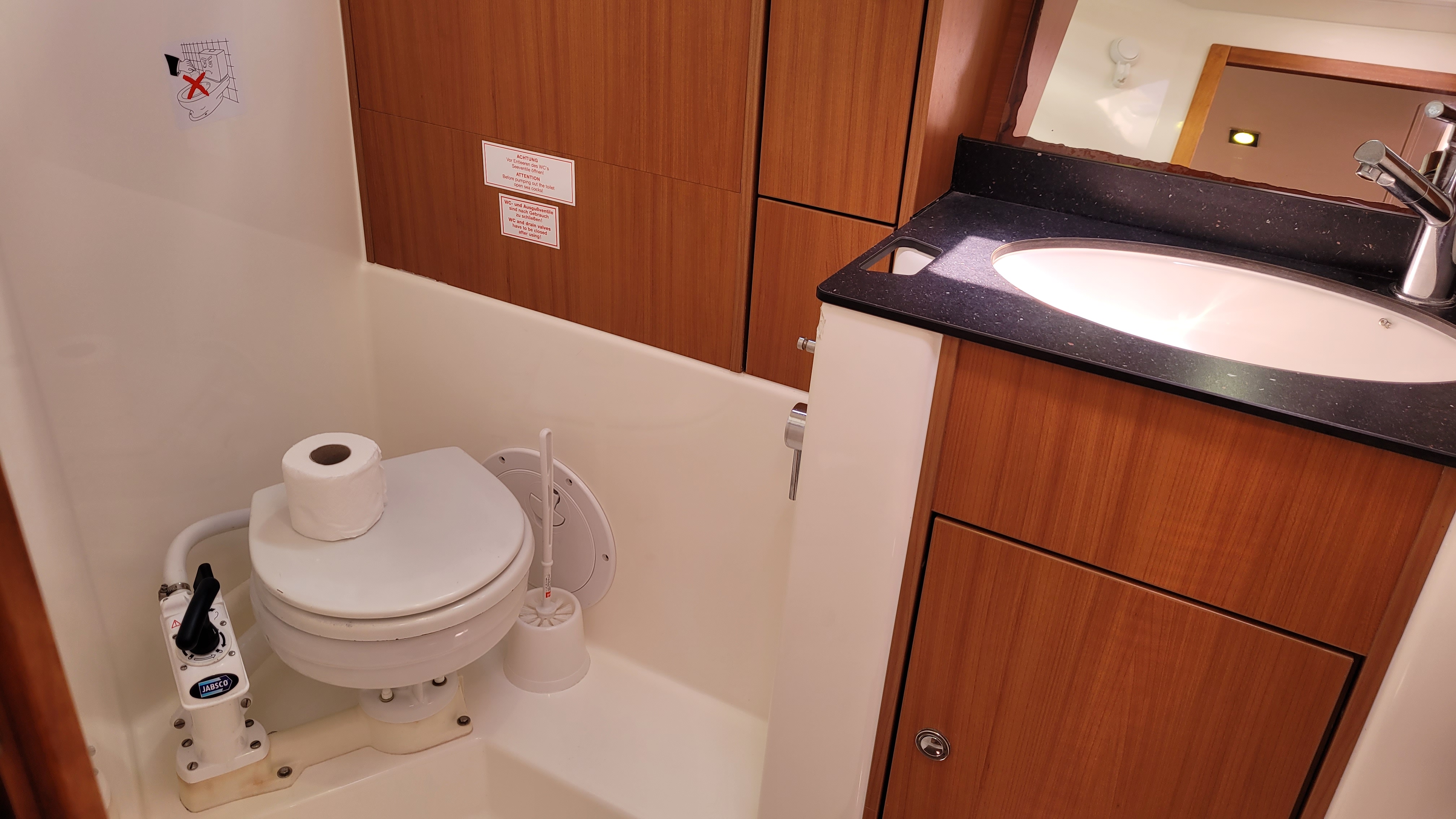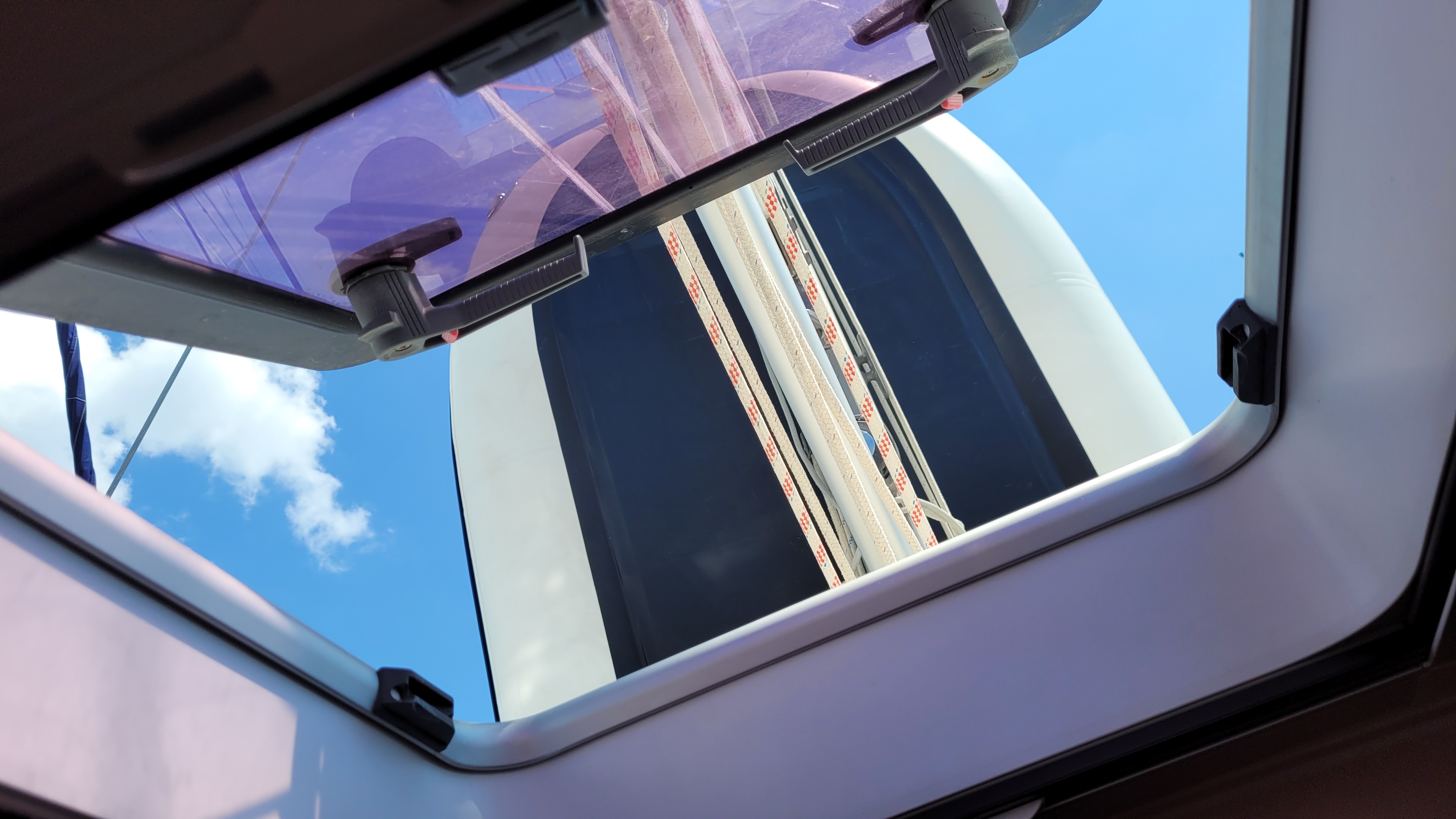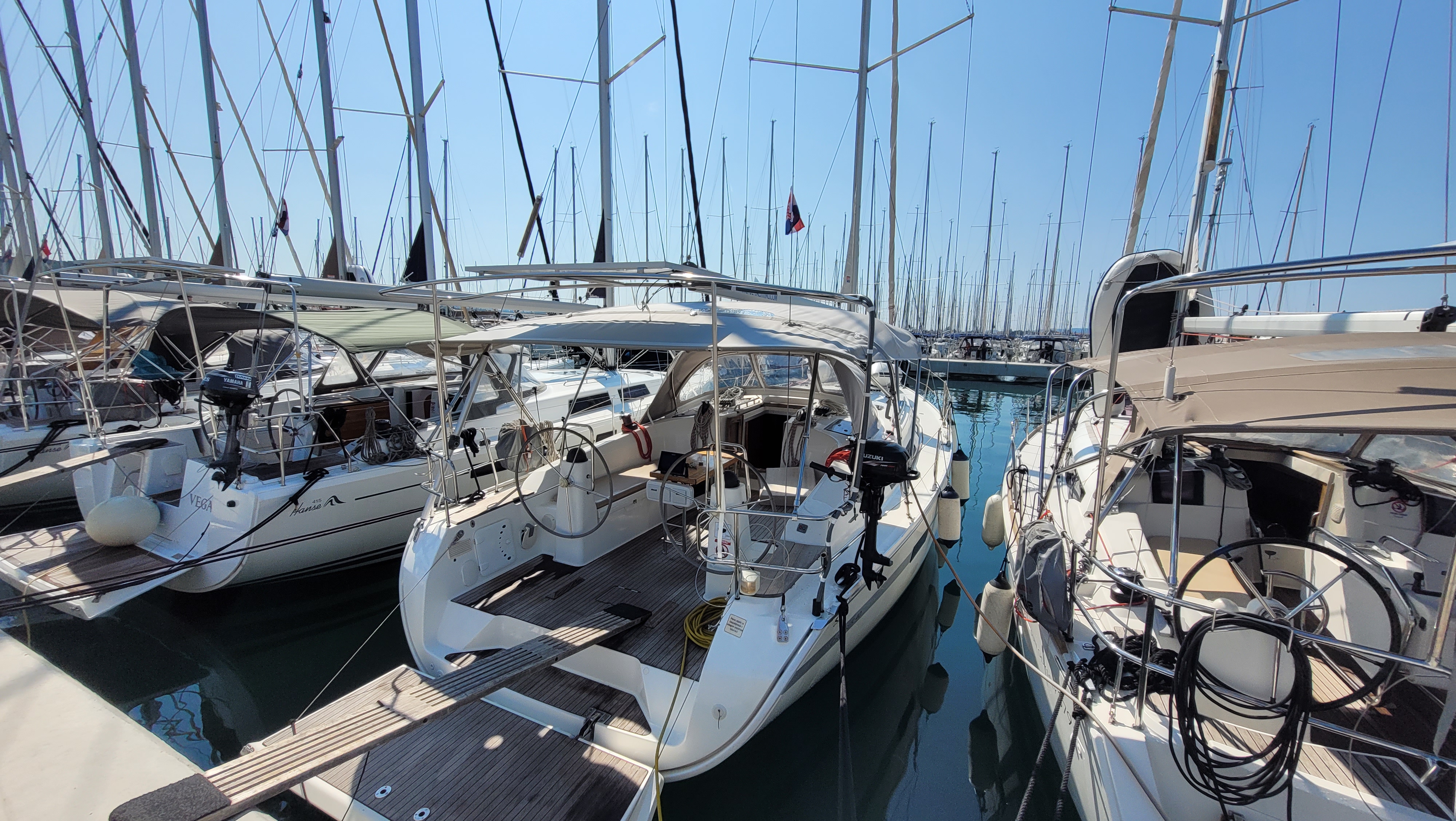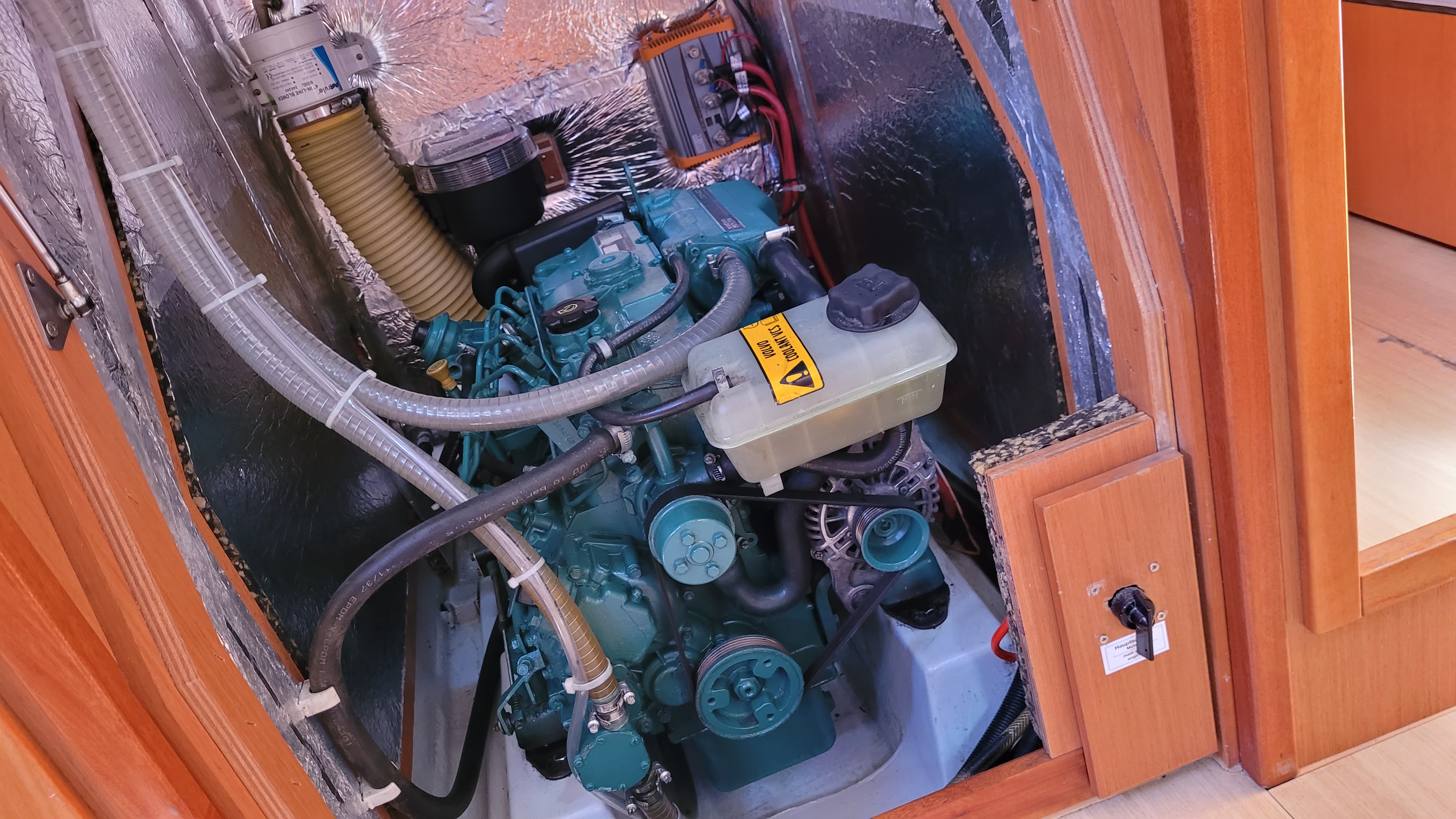 | Outside | 12 V-Anschluss, Biminitop, Cockpitdusche, Cockpittisch, elektr. Ankerwinsch, Gangway, Solaranlage, Sprayhood, Teak im Cockpit, Windex |