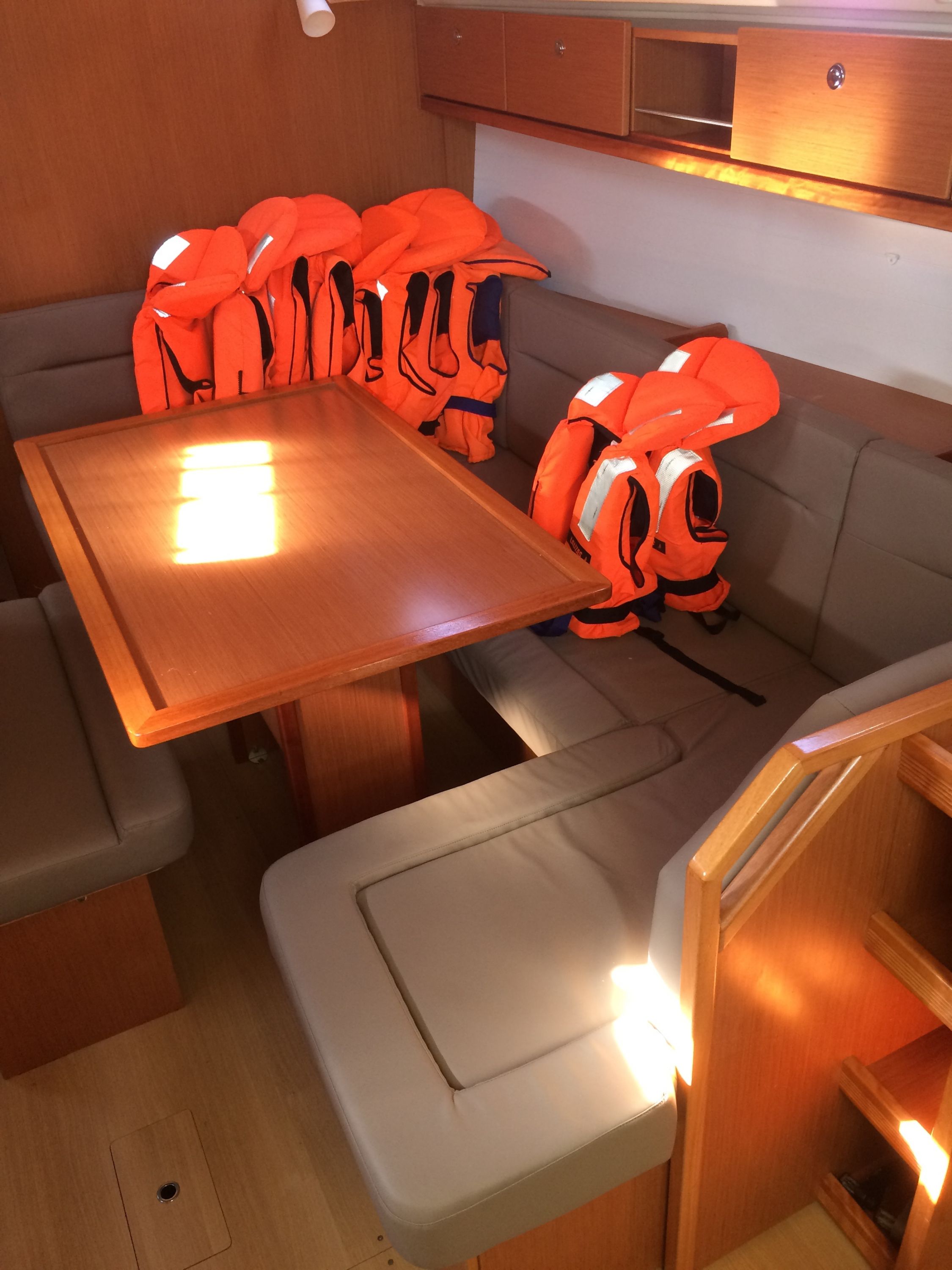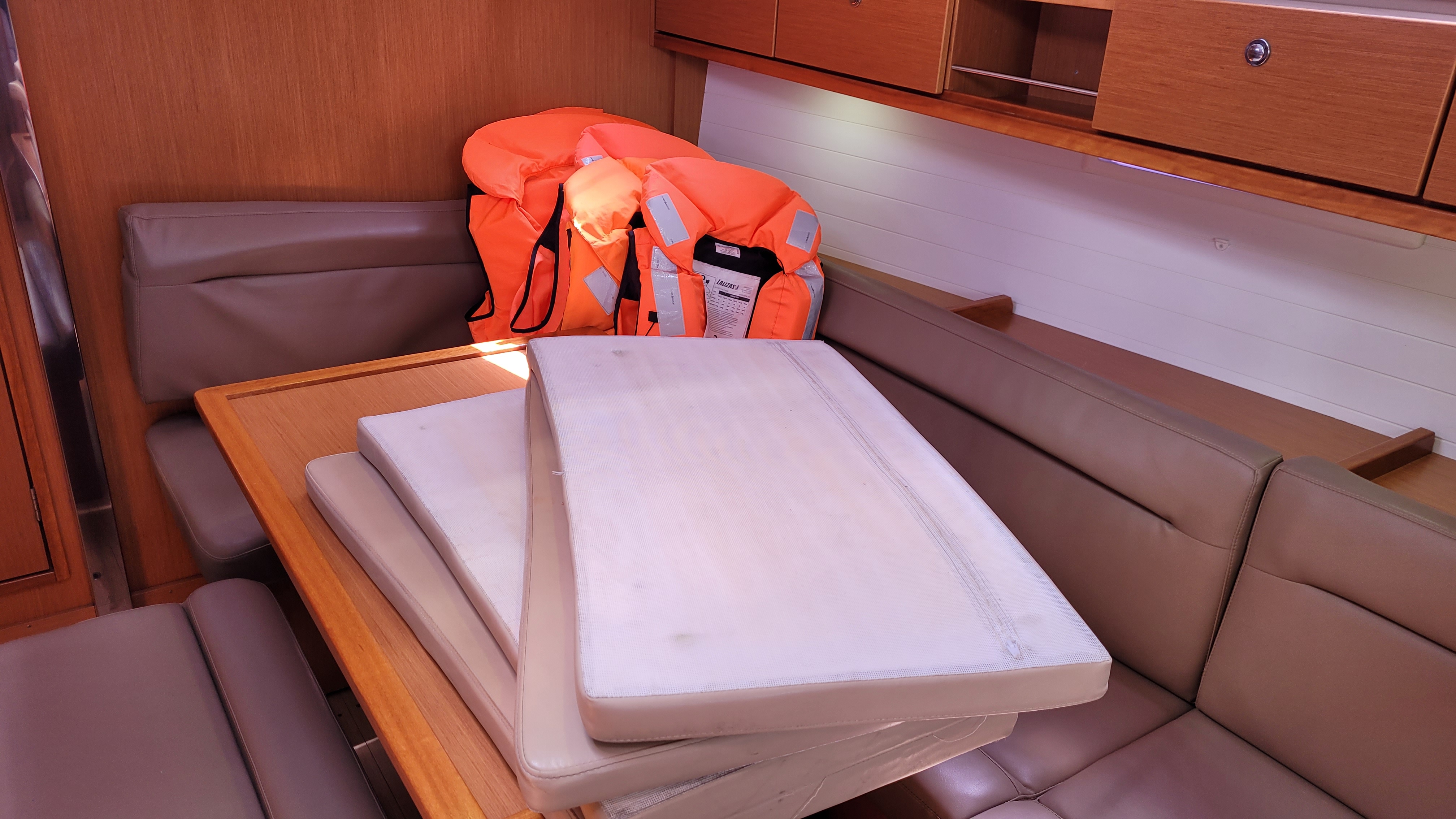 | Safety | Autopilot, Bordapotheke, Bordwerkzeug, Bugstrahlruder, elektr. Bilgepumpe, Feststoffschwimmwesten, Lifebelts, Notsignale, Rettungskragen, Taschenlampe, UKW-Funk |