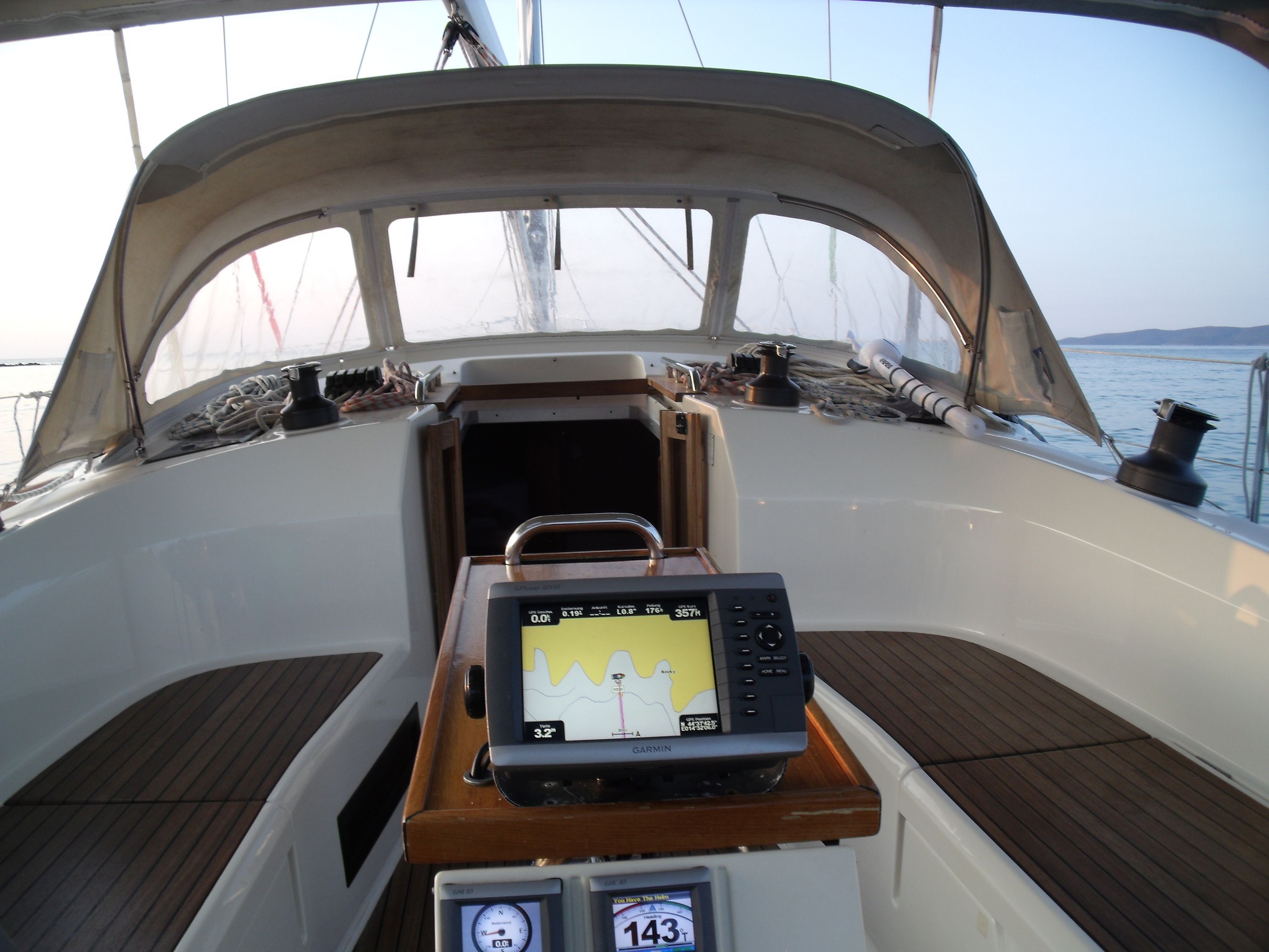 | Navigation | Echolot, Fernglas, GPS mit Kartenplotter im Cockpit, Hafenhandbücher, Kompass, Seekarten, Windmesser |