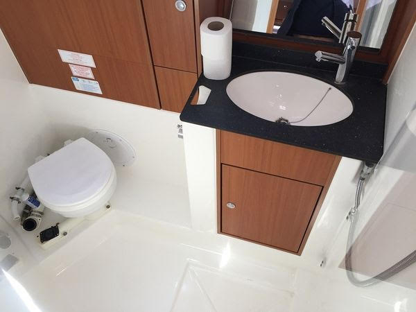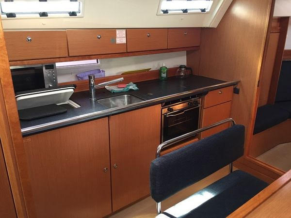 | Inside | Gasherd mit Backofen, Kleiderbügel, Kühlschrank, Luftpumpe für Beiboot, Pantryausstattung, Radio mit CD, Salontisch absenkbar, Spülbecken, Trichter, Warmwasser |