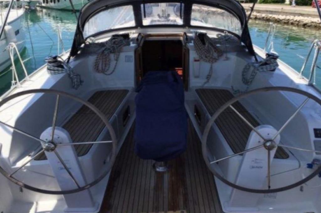 | Outside | 220 V-Landanschluss, Anker mit Kette, Ankerwinsch, Badeplattform, Biminitop, Bootshaken, Cockpitdusche, Cockpittisch, Dieselkanister , elektr. Ankerwinsch, Faltpropeller, Fender, Festmacherleinen, Gangway, Solaranlage, Sprayhood, Teak im Cockpit, Wasserkanister , Wasserschlauch, Windex |