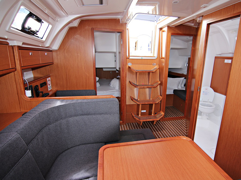 Outside Badeplattform, Biminitop, Bootshaken, Buganker, Cockpitdusche, Cockpittisch, Deckbürste, Dieselkanister , Eimer mit Seil, elektr. Ankerwinsch, Fender, Festmacherleinen, Gangway, Solaranlage, Sprayhood, Wasserschlauch, Winschen
