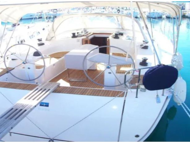 | Outside | 220 V-Landanschluss, Anker mit Kette, Ankerwinsch, Badeplattform, Biminitop, Cockpitdusche, Cockpittisch, Dieselkanister , elektr. Ankerwinsch, Fender, Festmacherleinen, Gangway, Kugelfender, Kunststoff-Eimer (Pütz), Sprayhood, Teak im Cockpit, Wasserkanister , Wasserschlauch, Windex |