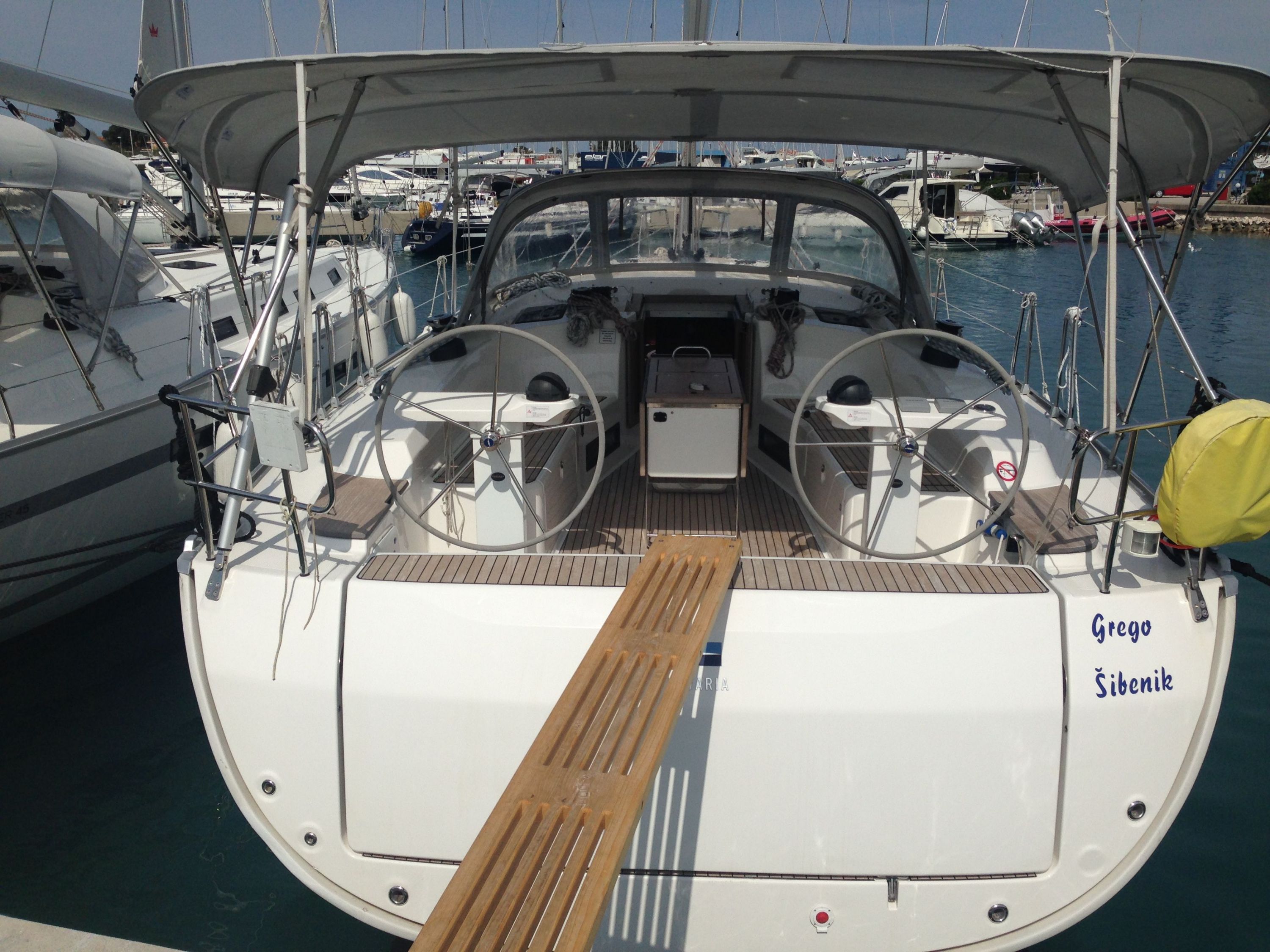 | Outside | 220 V-Landanschluss, Anker mit Kette, Ankerwinsch, Badeplattform, Biminitop, Cockpitdusche, Cockpittisch, Dieselkanister , elektr. Ankerwinsch, Fender, Festmacherleinen, Gangway, Kugelfender, Kunststoff-Eimer (Pütz), Sprayhood, Teak im Cockpit, Wasserkanister , Wasserschlauch, Windex |