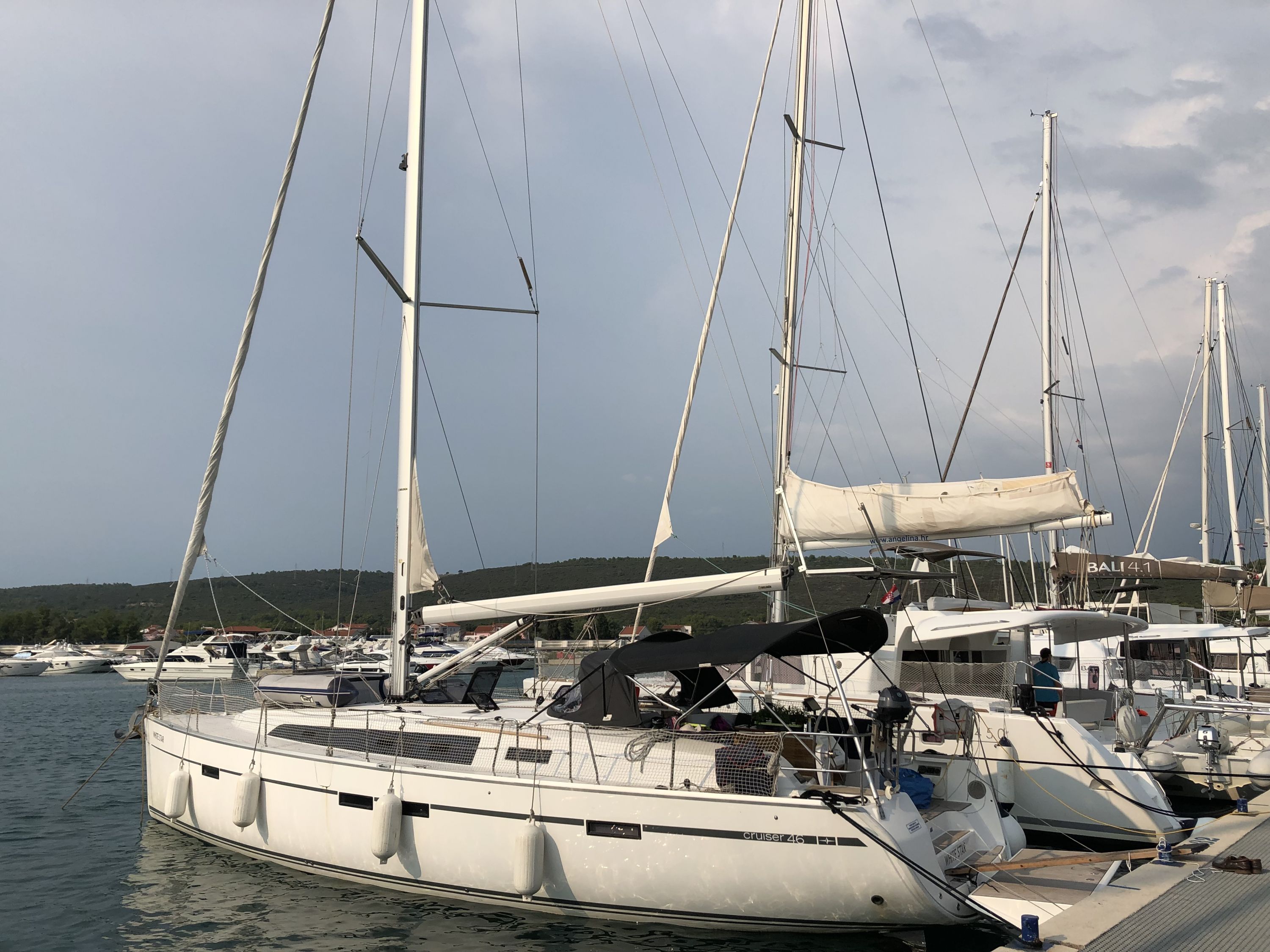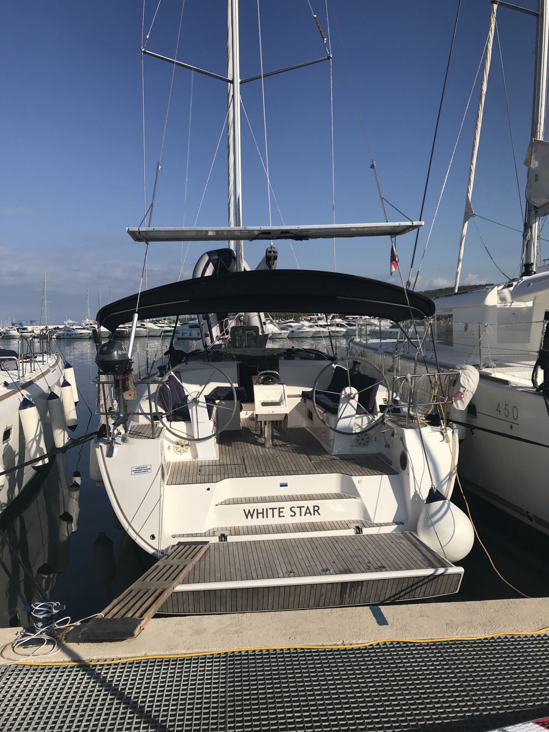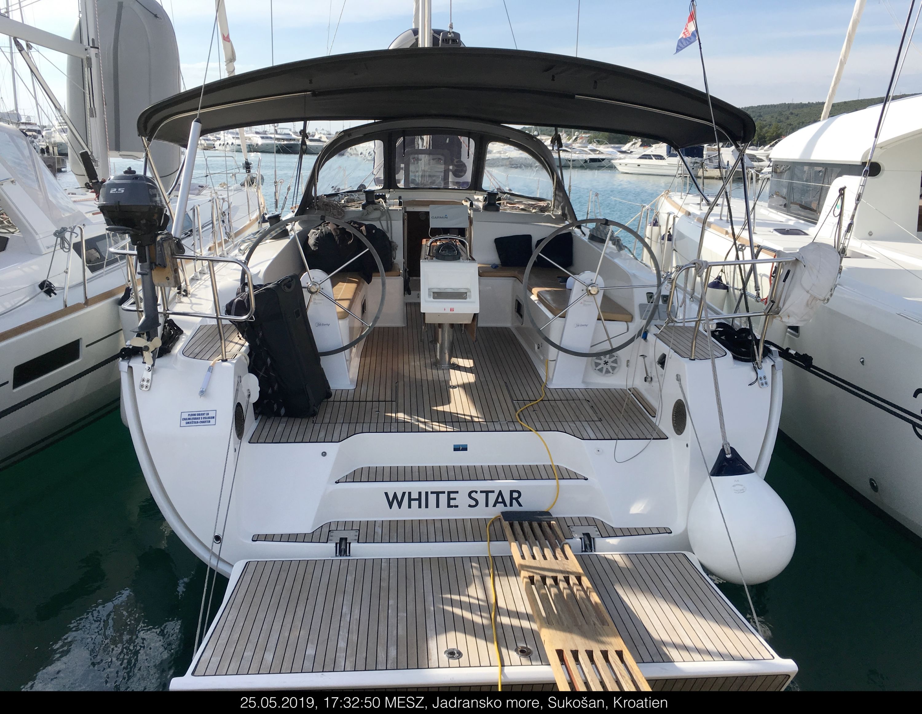 | Outside | 220 V-Landanschluss, Anker mit Kette, Badeplattform, Biminitop, Bootshaken, Cockpitdusche, Cockpitlautsprecher, Cockpitpolster, Cockpittisch, Delta-Anker, elektr. Ankerwinsch, Fender, Festmacherleinen, Gangway, Jambo Anker, Solaranlage, Sprayhood, Teak im Cockpit, Wasserschlauch, Winschen |