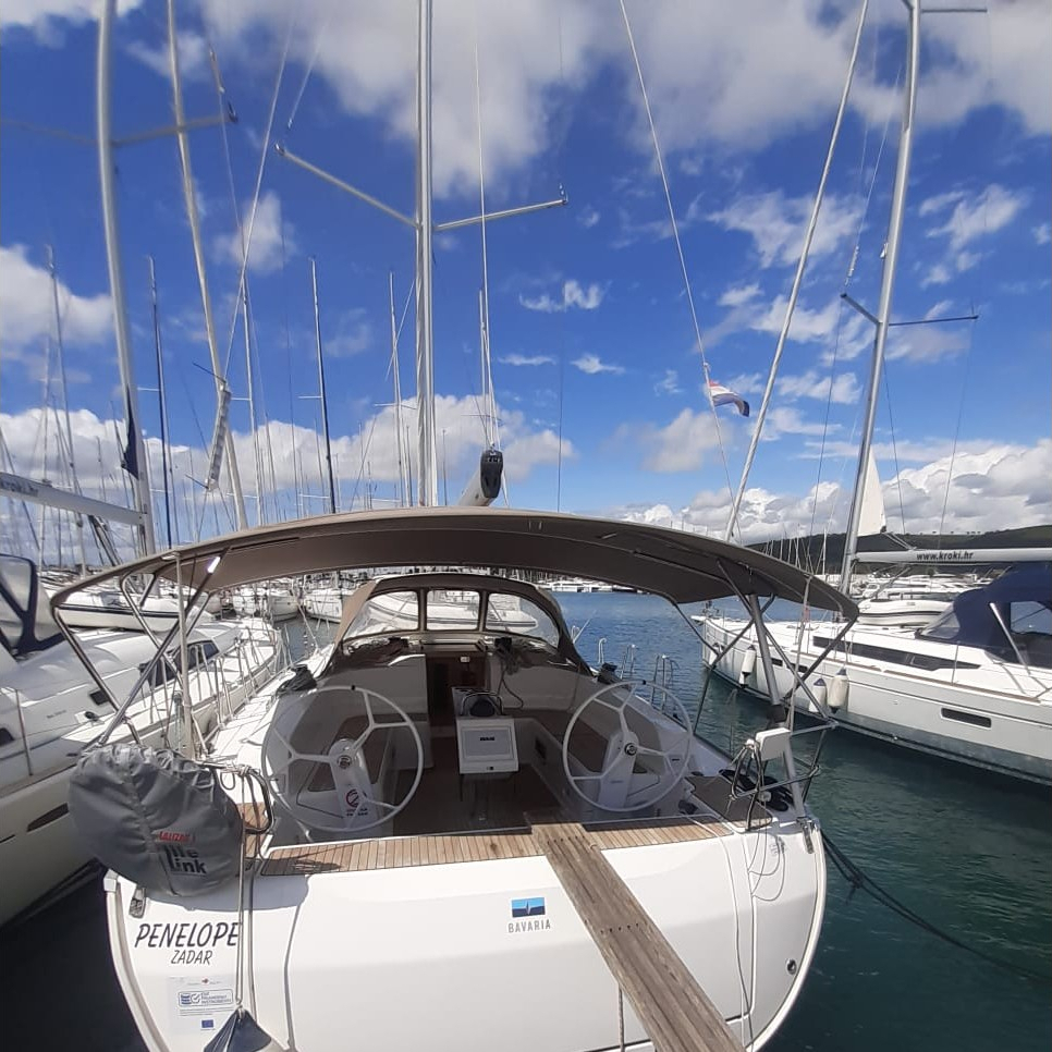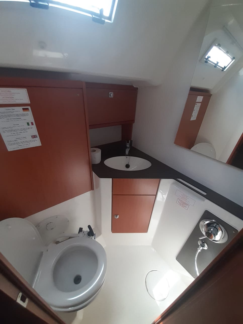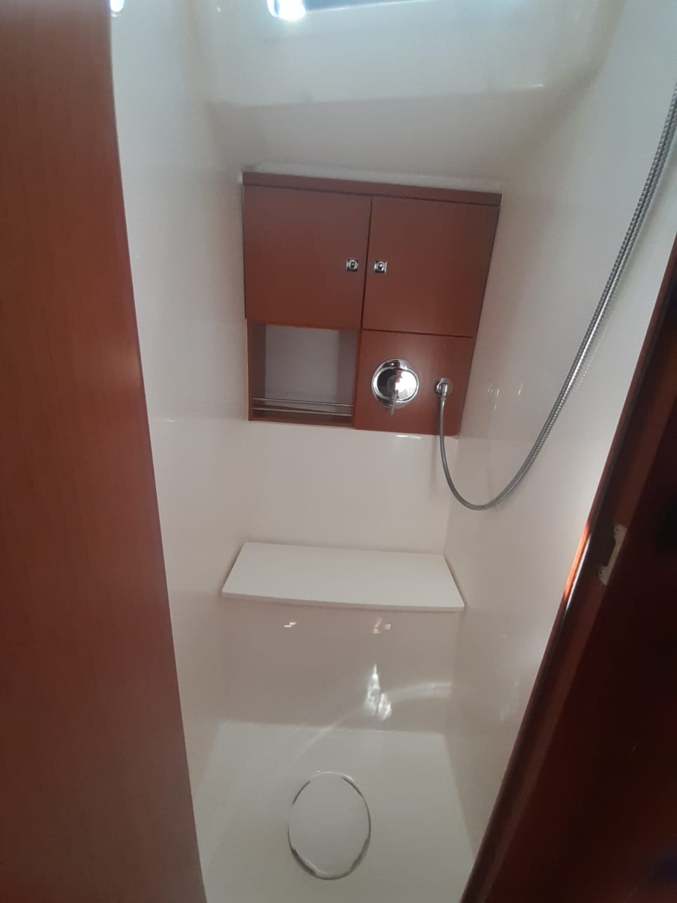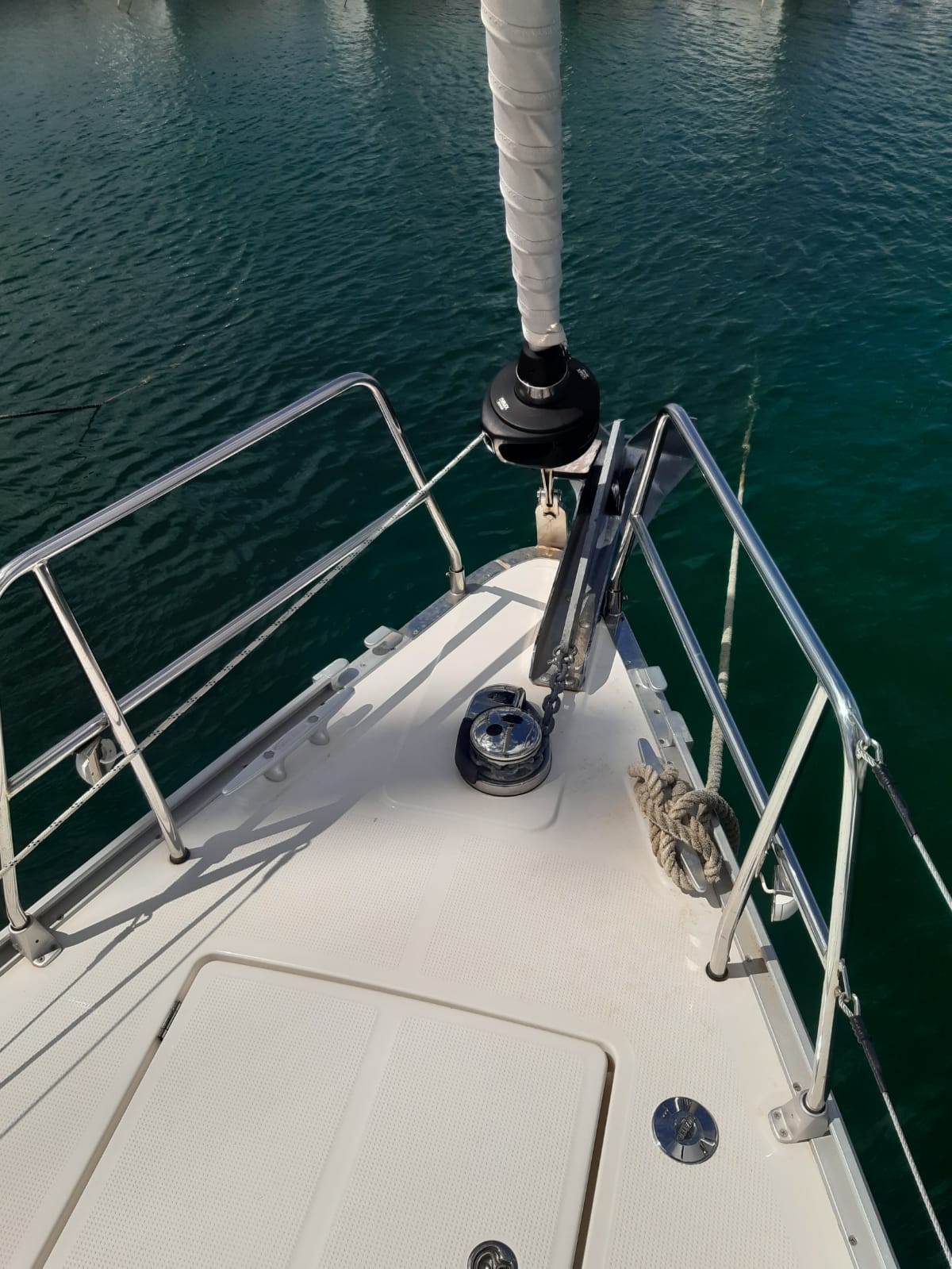 | Outside | Biminitop, Bootshaken, Cockpitlautsprecher, Cockpittisch, elektr. Ankerwinsch, Solaranlage, Sprayhood, Teak im Cockpit, Unterwasserbeleuchtung, Wasserschlauch, Windex, Winschen |