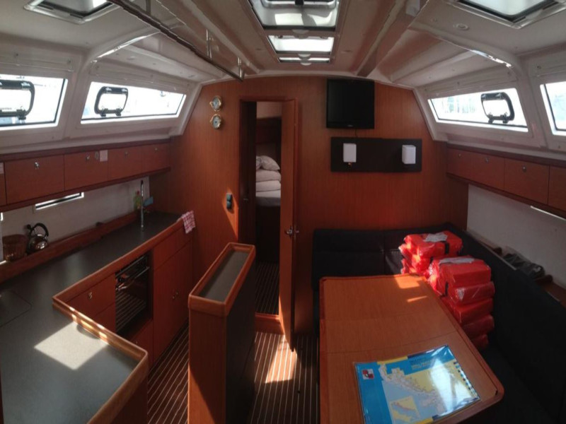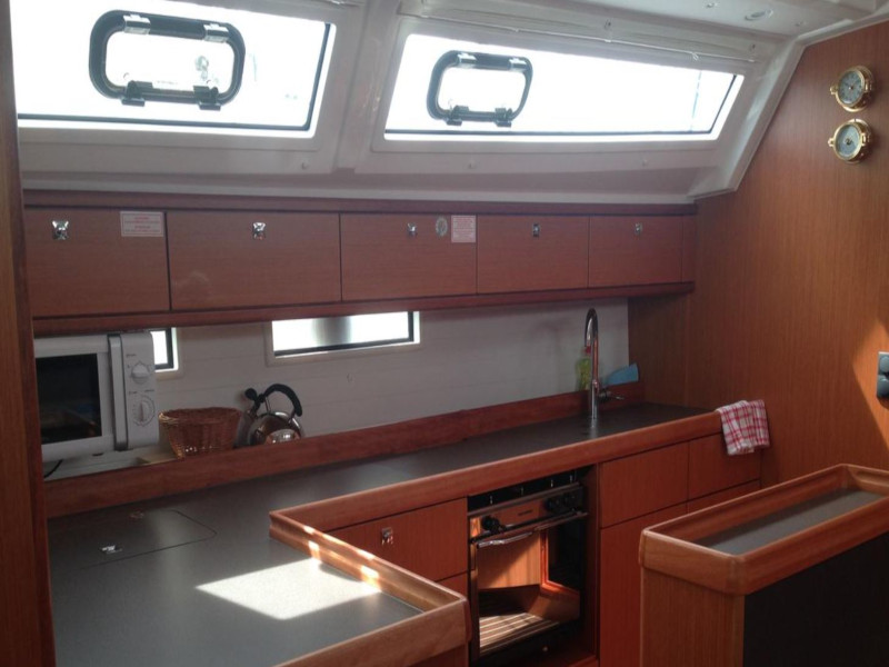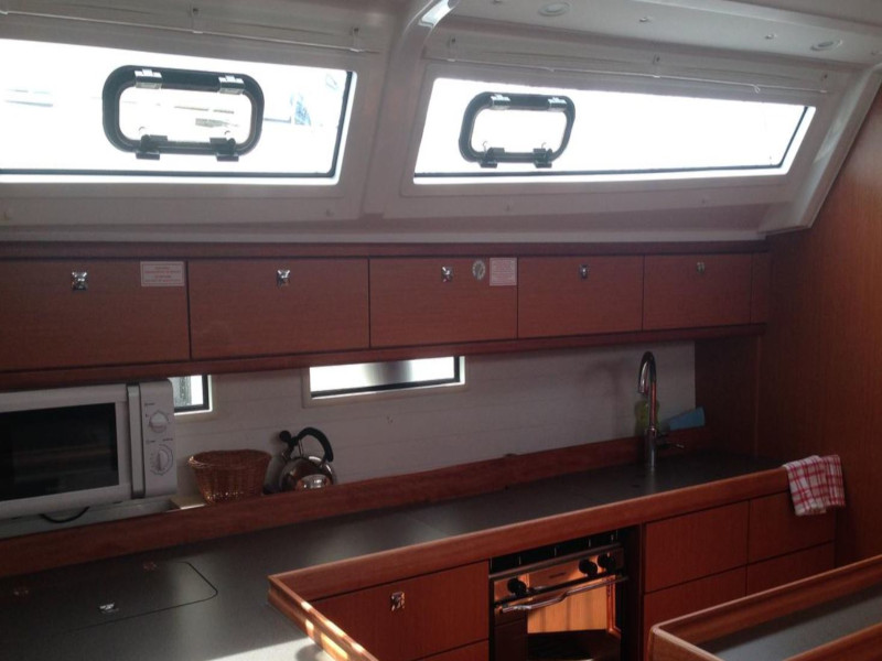 | Inside | Backofen, Borduhr, Eisbox, Fäkalientank, Flexschott, Heizung, Klimaanlage (Landstrom), Kühlschrank, Ladegerät, Luftpumpe für Beiboot, Mikrowelle, Pantryausstattung, Radio mit USB, MP3 und Bluetooth, USB Steckdose, Warmwasser |