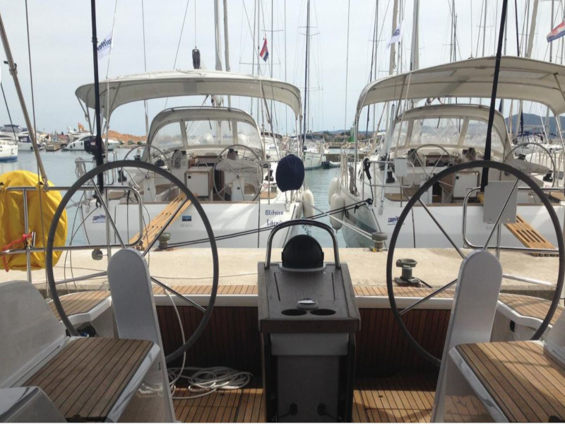 | Outside | 220 V-Landanschluss, Anker mit Kette, Ankerwinsch, Badeplattform, Biminitop, Bootshaken, Cockpitdusche, Cockpitlautsprecher, Cockpittisch, Dieselkanister , elektr. Ankerwinsch, Fender, Festmacherleinen, Gangway, Kugelfender, Kunststoff-Eimer (Pütz), Solaranlage, Sprayhood, Teak im Cockpit, Wasserkanister , Wasserschlauch, Windex |