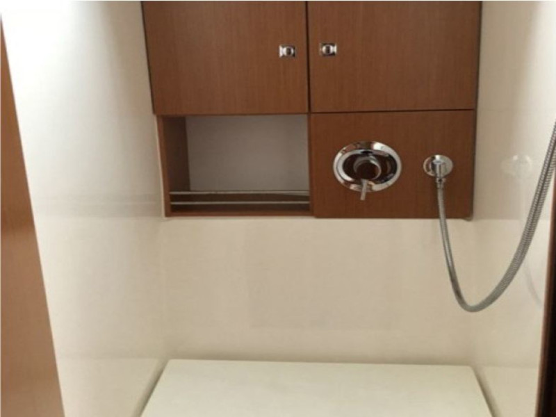 | Inside | 2-flammiger Gasherd, Backofen, Borduhr, Fäkalientank, Geschirr, Kleiderbügel, Klimaanlage (Landstrom), Klobürste, Kühlschrank, Ladegerät, Luftpumpe für Beiboot, Mikrowelle, Pantryausstattung, Radio mit USB, Spülbecken, Trichter, Warmwasser, WC-Pumpe |