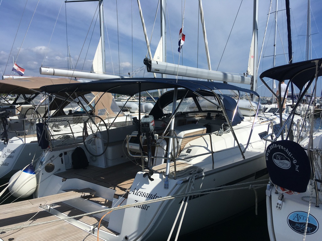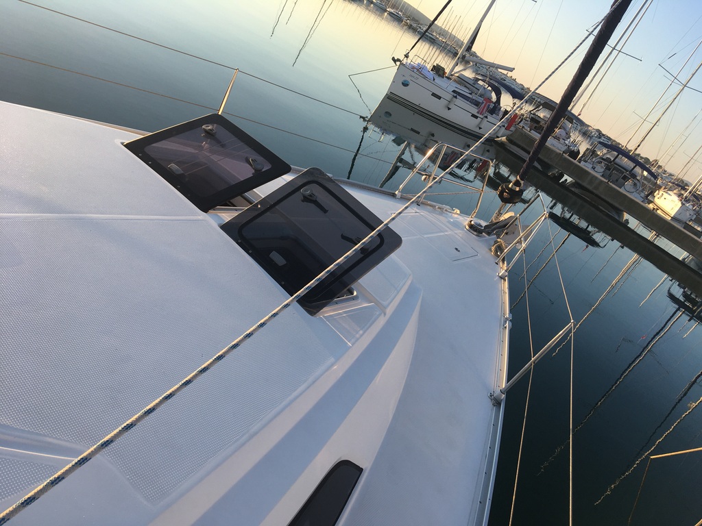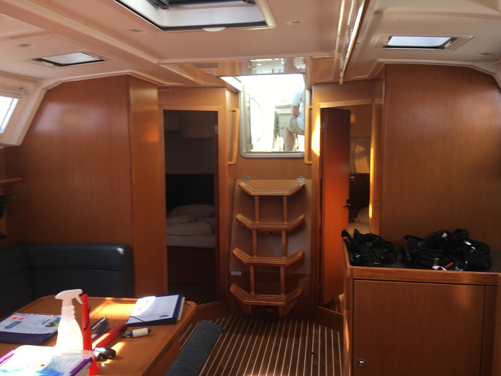 | Outside | Badeplattform, Biminitop, Bootshaken, Buganker, Cockpitdusche, Cockpittisch, Deckbürste, Dieselkanister , Eimer mit Seil, elektr. Ankerwinsch, Fender, Festmacherleinen, Gangway, Solaranlage, Sprayhood, Wasserschlauch, Winschen |