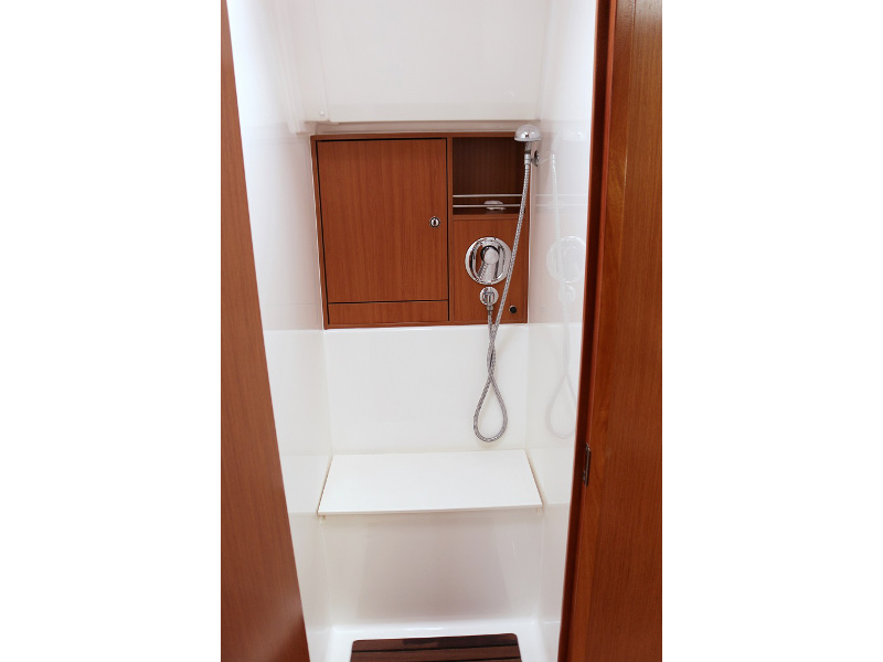 | Outside | Badeplattform, Biminitop, Bootshaken, Buganker, Cockpitdusche, Cockpittisch, Deckbürste, Dieselkanister , Eimer mit Seil, elektr. Ankerwinsch, Fender, Festmacherleinen, Gangway, Solaranlage, Sprayhood, Wasserschlauch, Winschen |