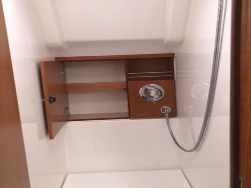 | Outside | 12 V-Anschluss, 220 V-Landanschluss, Anker mit Kette, Badeleiter, Badeplattform, Biminitop, Bootshaken, Cockpitdusche, Cockpitpolster, Cockpittisch, Dieselkanister , elektr. Ankerwinsch, Fender, Festmacherleinen, Gangway, Kunststoff-Eimer (Pütz), Solaranlage, Sprayhood, Teak im Cockpit, Wasserkanister , Windex, Winschen |