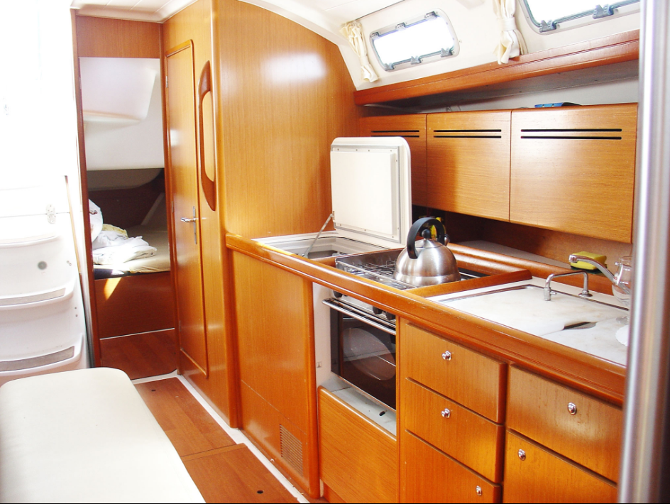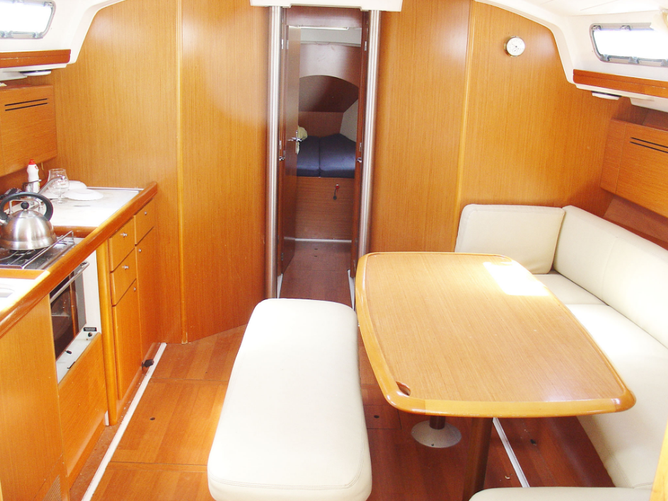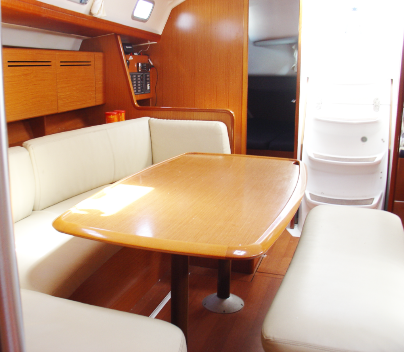 | Safety | Autopilot, Bootsmannstuhl, Bordapotheke, Bordwerkzeug, Bugstrahlruder, elektr. Bilgepumpe, Feststoffschwimmwesten, Feuerlöscher, Handbilgepumpe, Lifebelts, Navigationslichter, Nebelhorn, Notpinne, Notsignale, Rettungskragen, Rettungswesten, Sicherheitsausrüstung, Taschenlampe, UKW-Funk, Zweitanker |