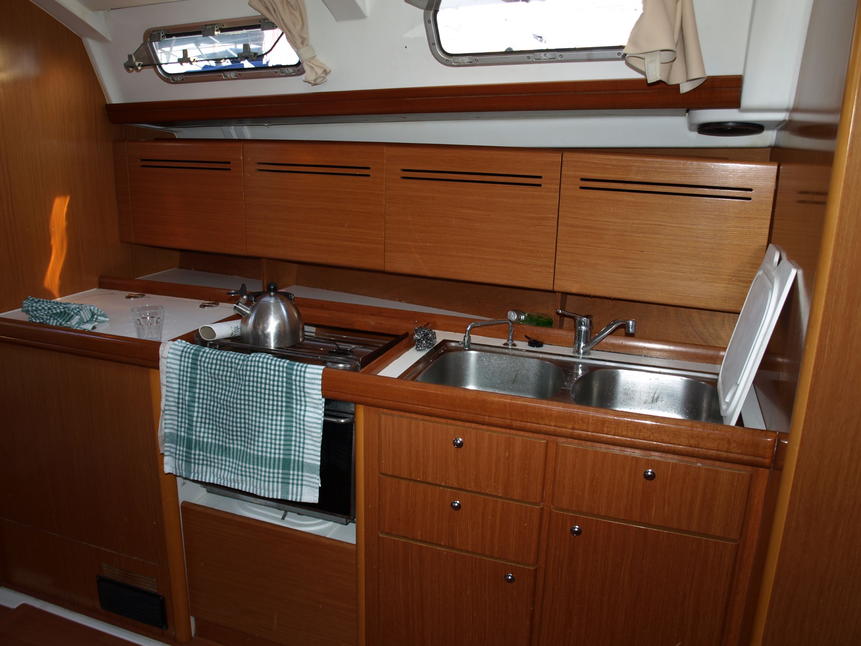 | Inside | 12V Steckdose, 220V Steckdosen, Gasherd, Kleiderbügel, Kühlschrank, Ladegerät, Landstromkabel, Luftpumpe für Beiboot, Pantryausstattung, Radio mit CD und MP3, Salontisch absenkbar, Spülbecken, Trichter, Warmwasser |