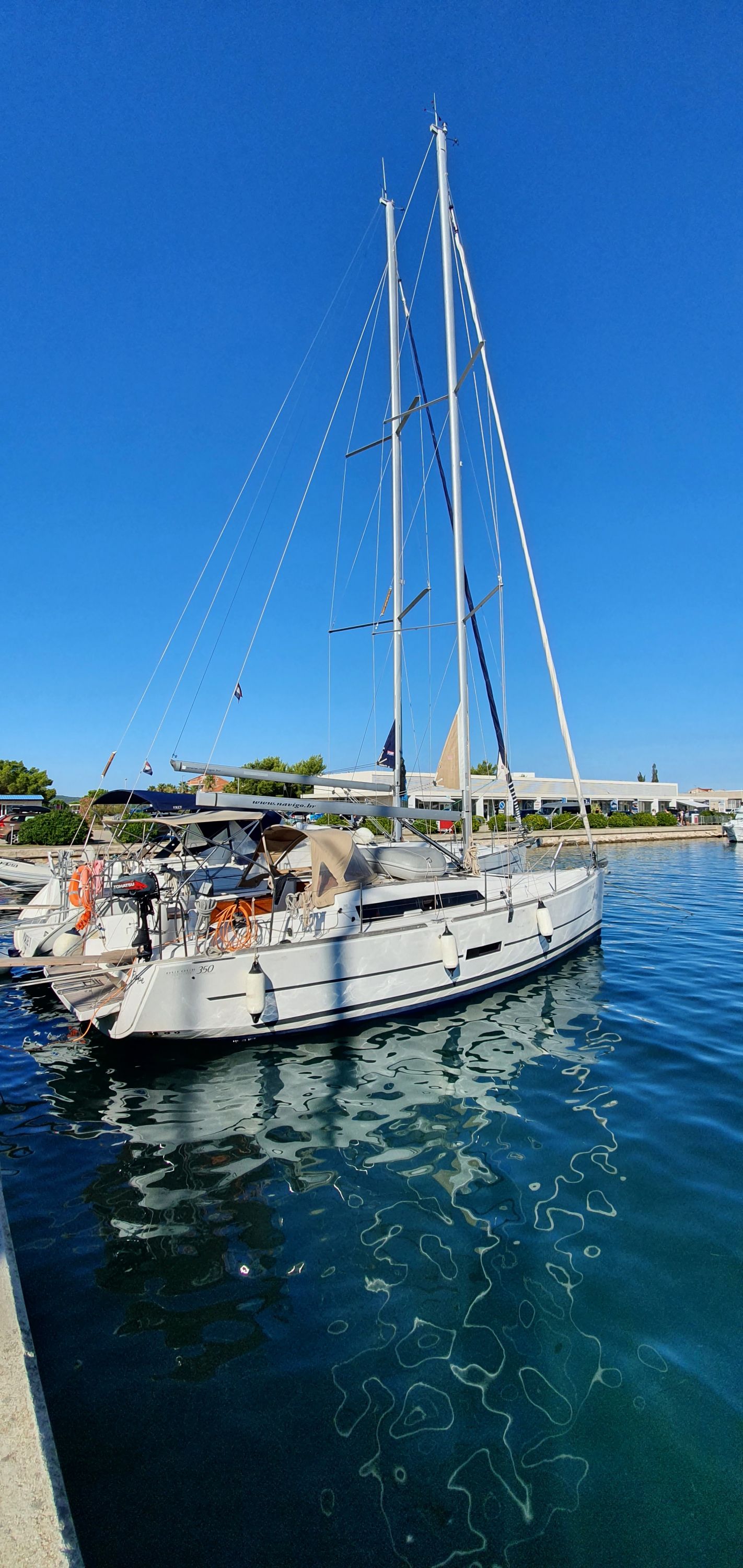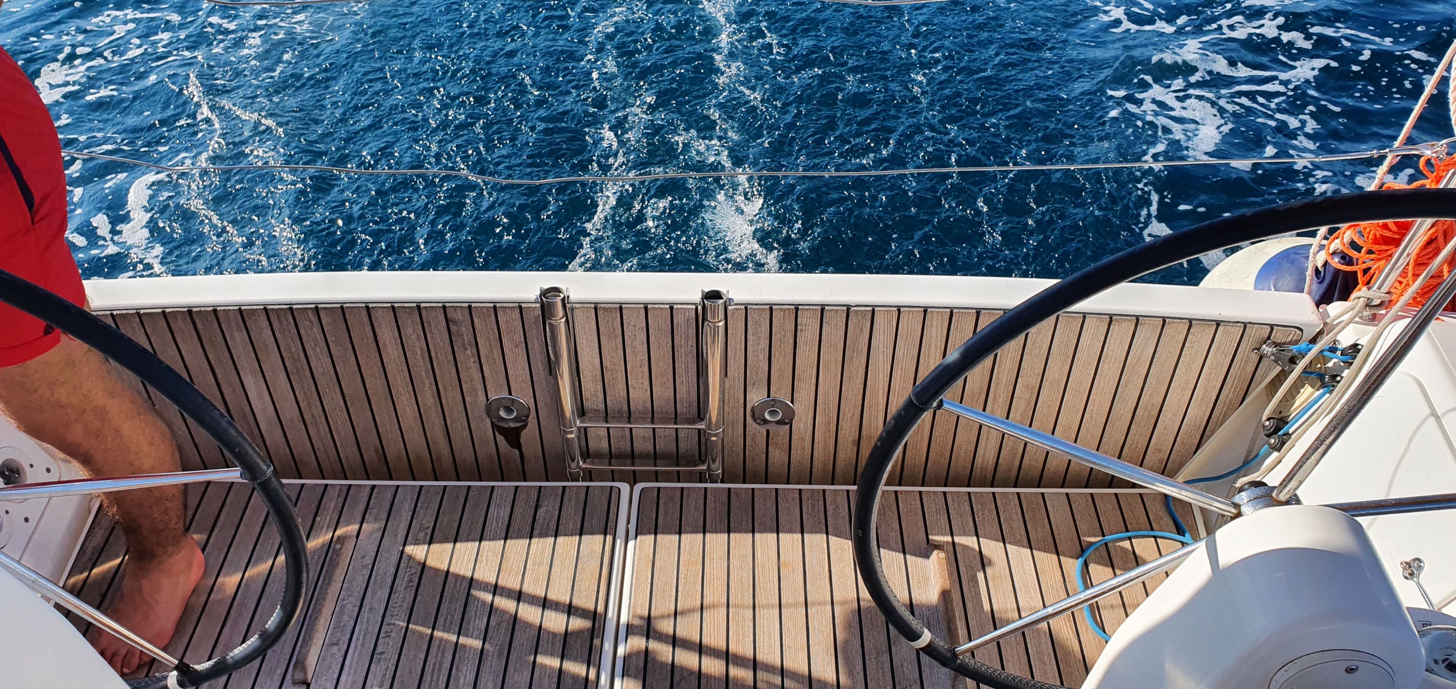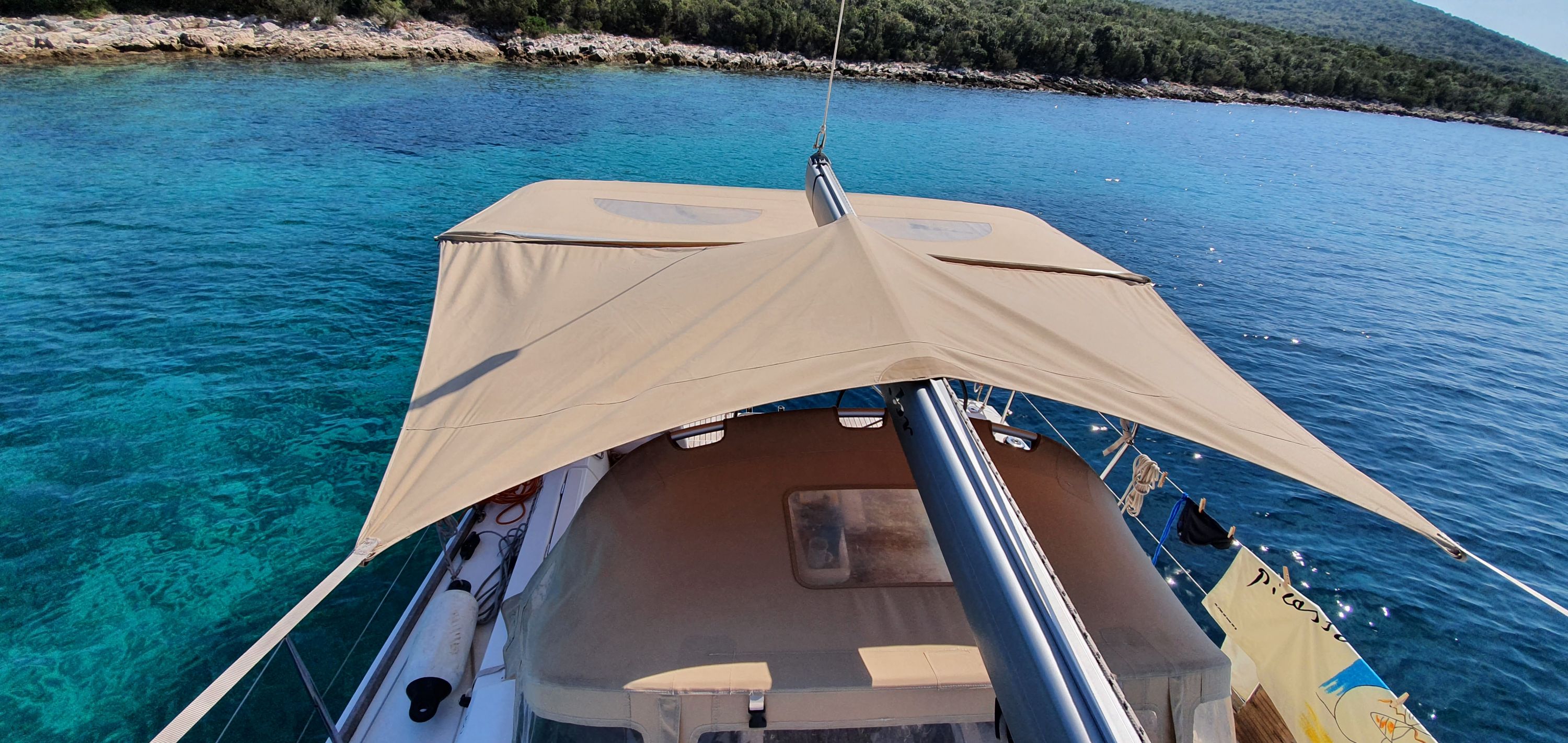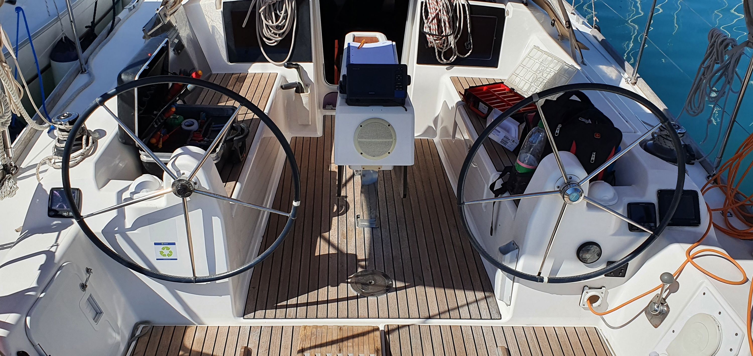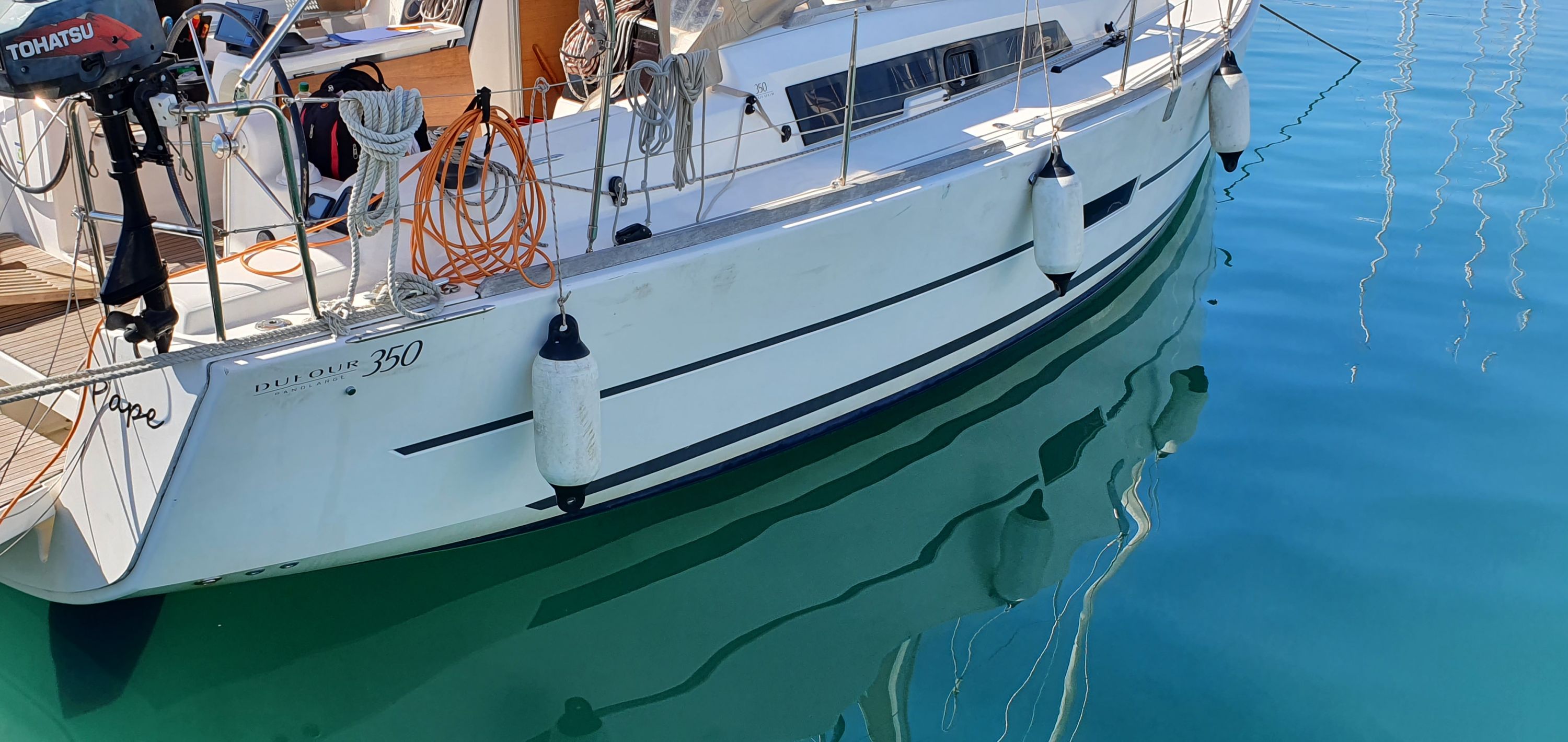 | Outside | Badeplattform, Biminitop, Cockpitpolster, elektr. Ankerwinsch, Solaranlage, Sprayhood, Teak im Cockpit |