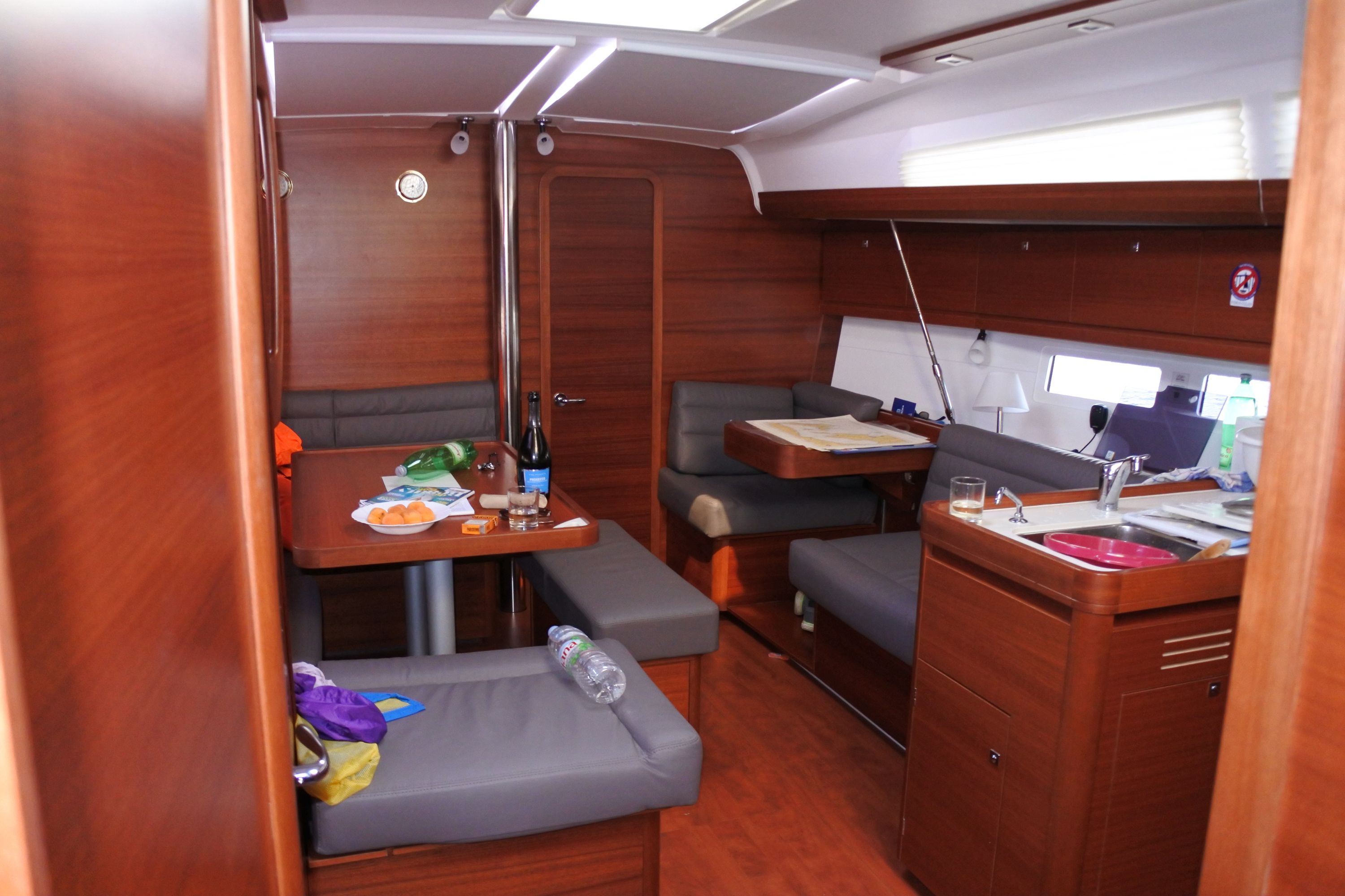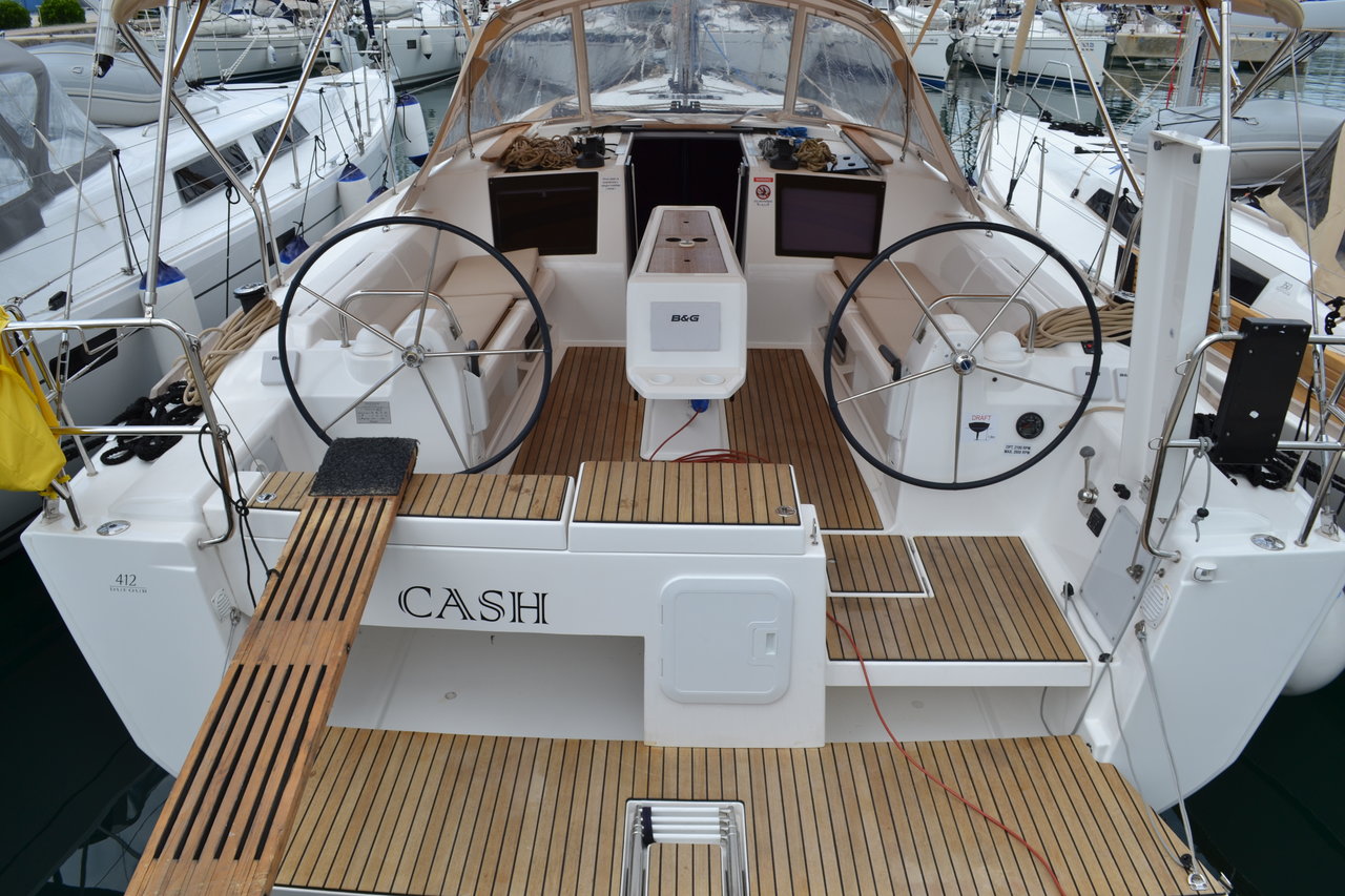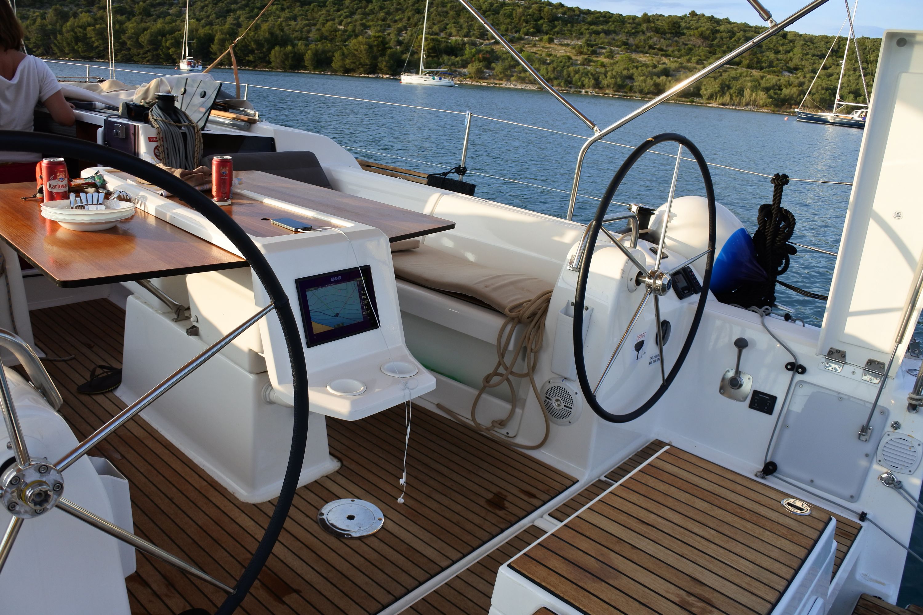 | Outside | 12 V-Anschluss, 220 V-Landanschluss, Biminitop, Cockpitdusche, Cockpittisch, elektr. Ankerwinsch, Gangway, Solaranlage, Sprayhood, Teak im Cockpit, Windex |