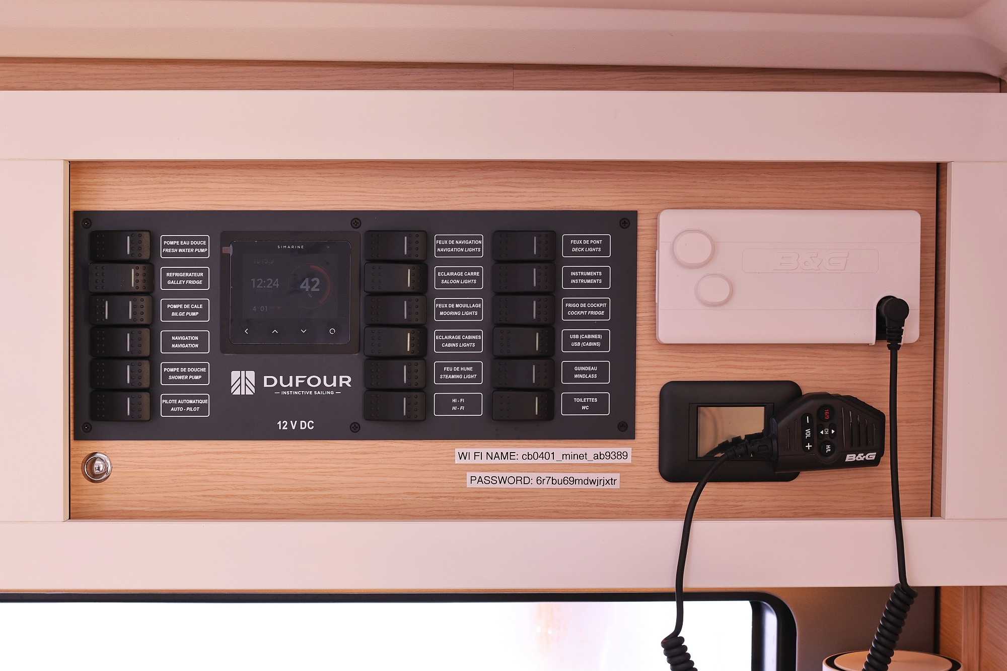 | Safety | Autopilot, Blitzboje, Bordapotheke, Bordwerkzeug, Bugstrahlruder, elektr. Bilgepumpe, Feststoffschwimmwesten, Feuerlöscher, Handbilgepumpe, Lifebelts, Nebelhorn, Notsignale, Radarreflektor, Rettungsinsel, Taschenlampe, UKW-Funk mit AIS |