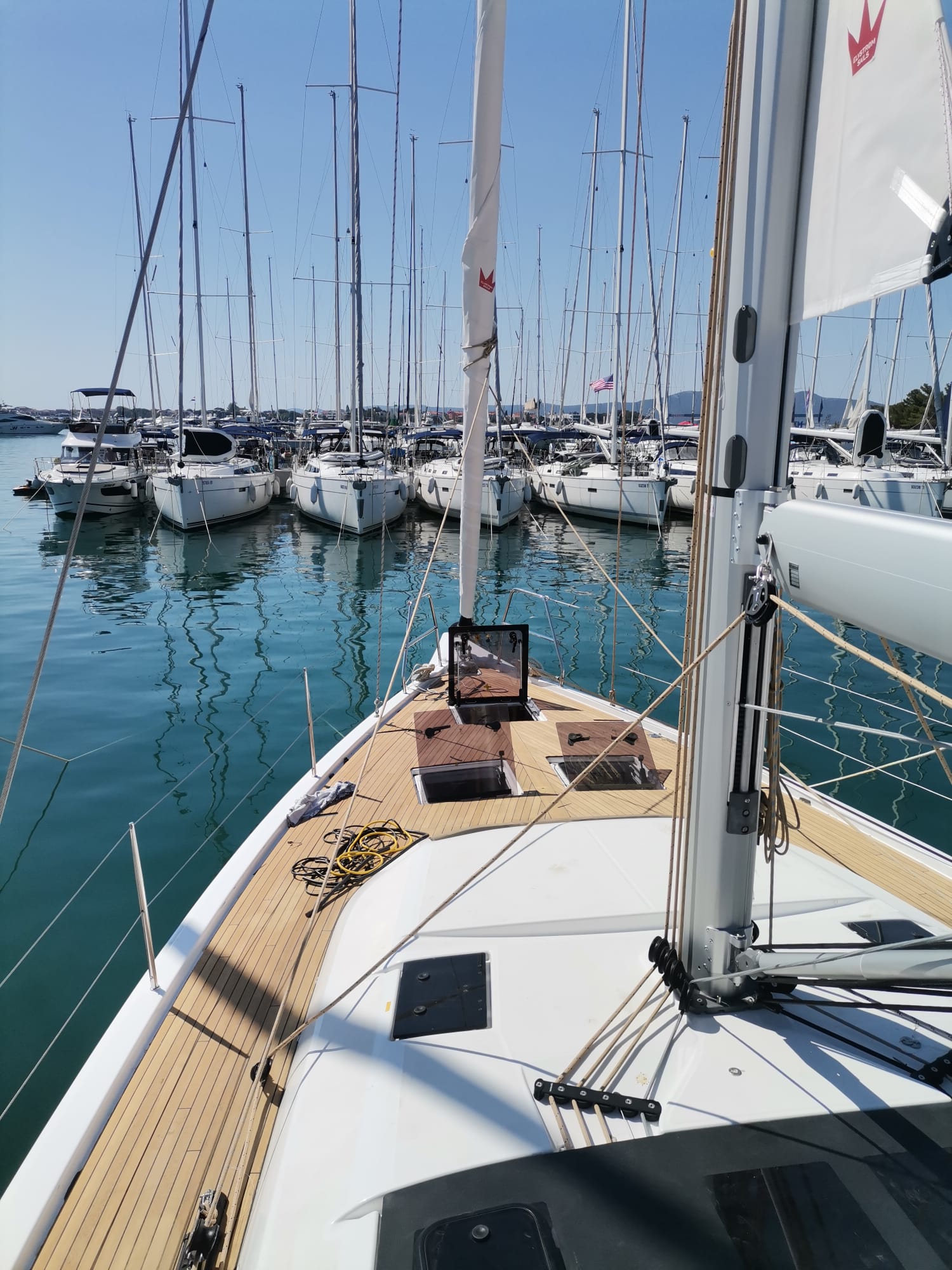 Die Yacht war neu ab Werft und irgendwie nicht fertig. Es hatte manuelle WCs an Bord an Stelle von elektrischen. Anzeigen für Wasser und Treibstoff stimmten nicht
