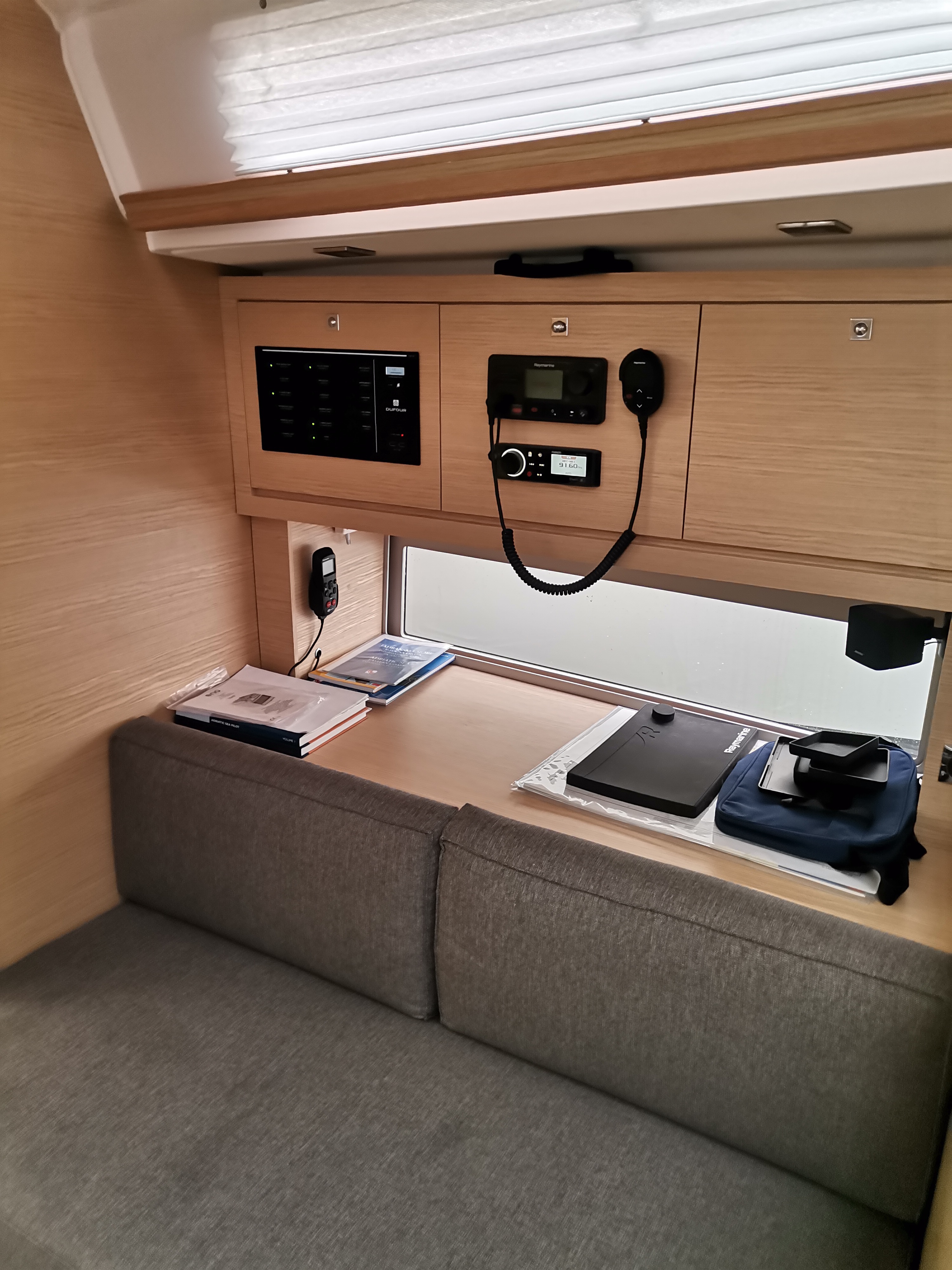 | Navigation | Fernglas, GPS mit Kartenplotter, GPS mit Kartenplotter im Cockpit, Handpeilkompass, Kompass, Navigationsbesteck, Radar, Seekarten, Tridata (Log, Echolot, Windm.), Windmesser |