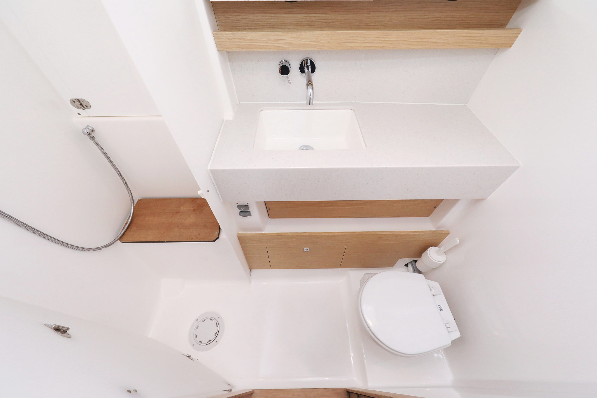 | Inside | 220V Steckdosen, Backofen, Fäkalientank, Gasherd, Heizung, Klimaanlage (Landstrom), Kühlschrank, Ladegerät, Luftpumpe für Beiboot, Mokkakanne, Radio, Spülbecken, Wasserkocher, WC (elektr.) |