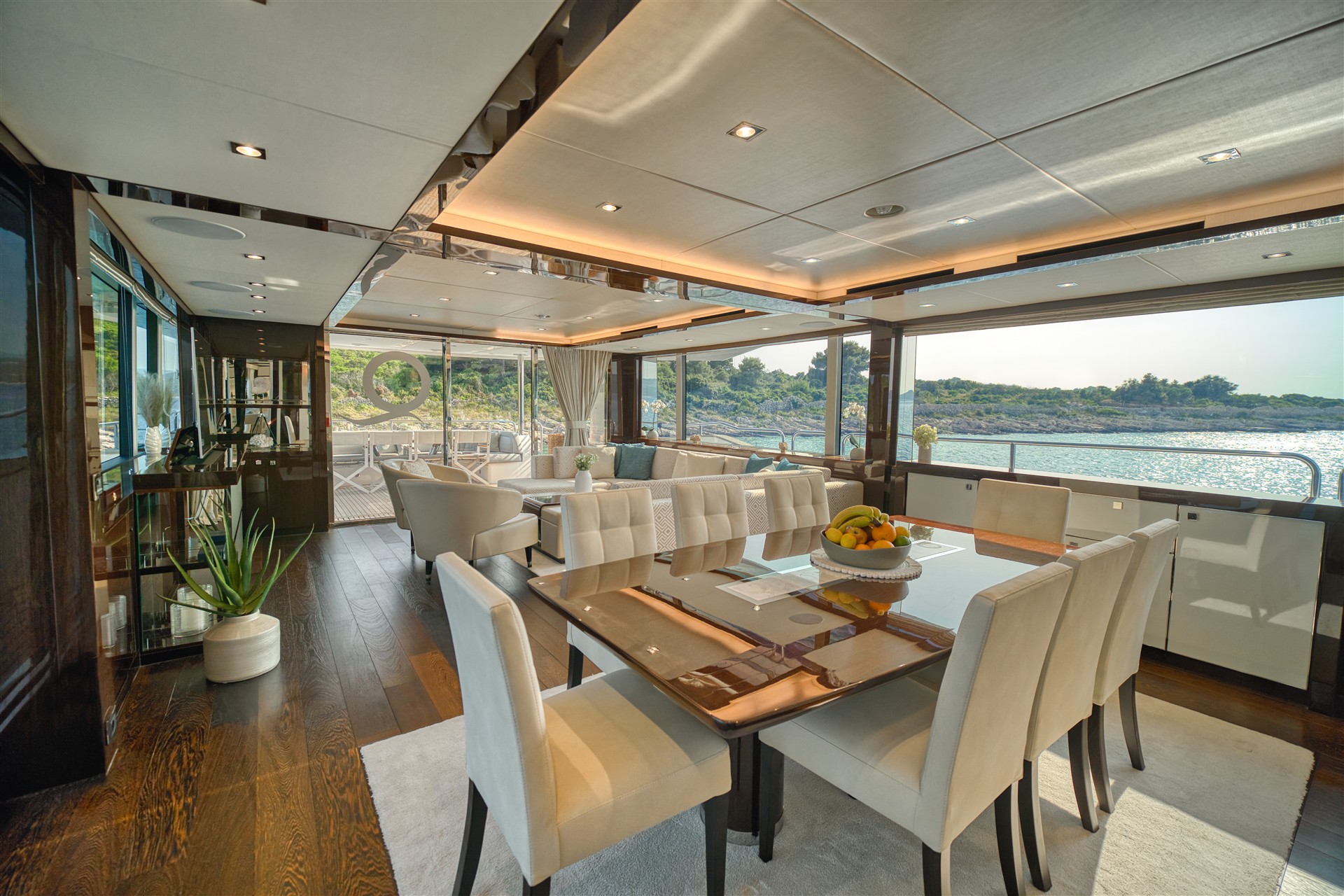 | Inside | Backofen, Eiswürfelmaschine, Geschirrspüler, Hi-Fi System, Klimaanlage (ohne Landstrombedarf), Pantryausstattung, TV, Waschmaschine, Watermaker, WC (elektr.) |