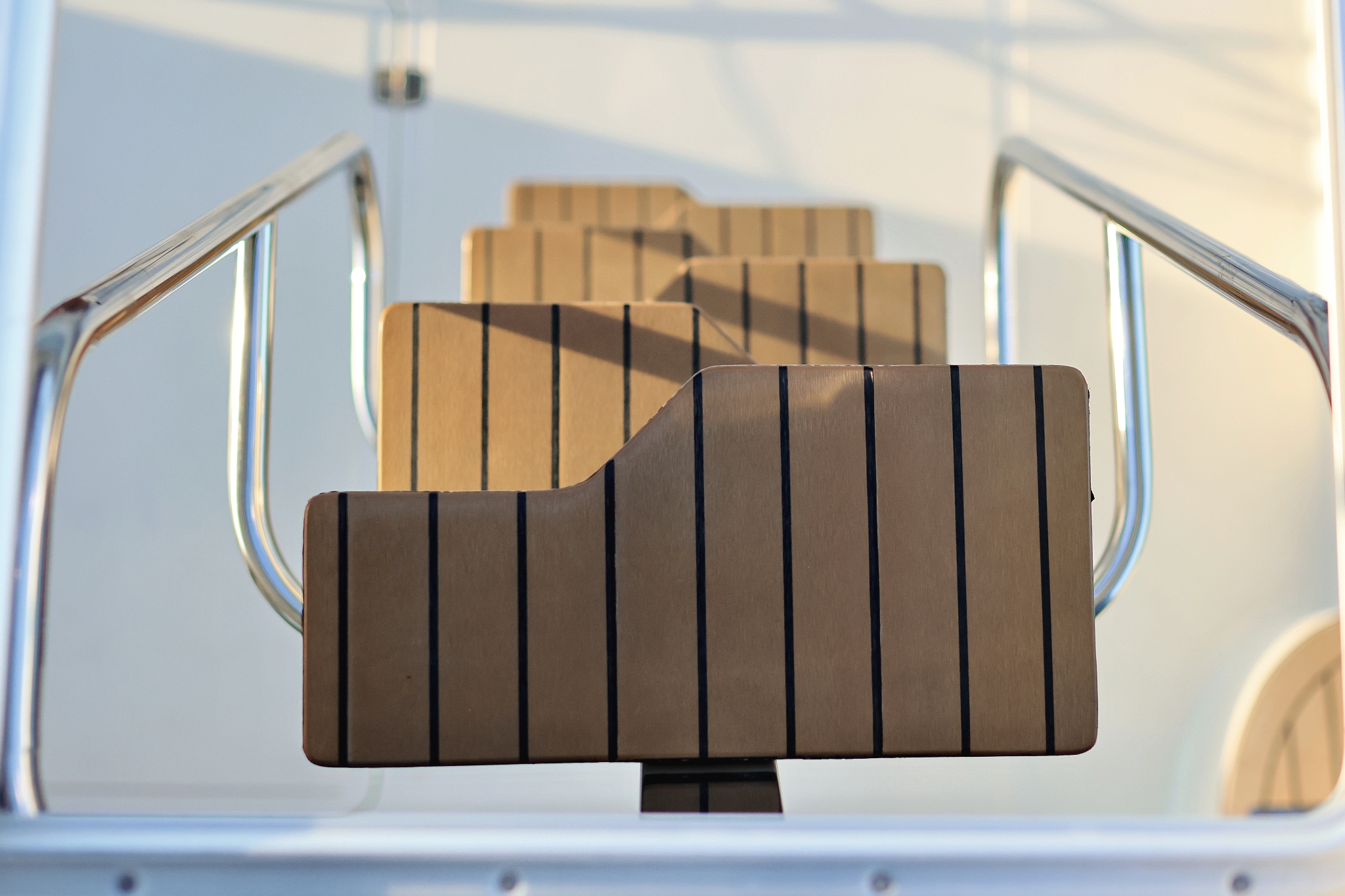 | Outside | 220 V-Landanschluss, Badeleiter, Badeplattform, Biminitop, Bootshaken, Cockpitdusche, Cockpitlautsprecher, Cockpitpolster, Cockpittisch, Delta-Anker, elektr. Ankerwinsch, Fender, Festmacherleinen, Flybridge, Gangway, Wasserschlauch |
