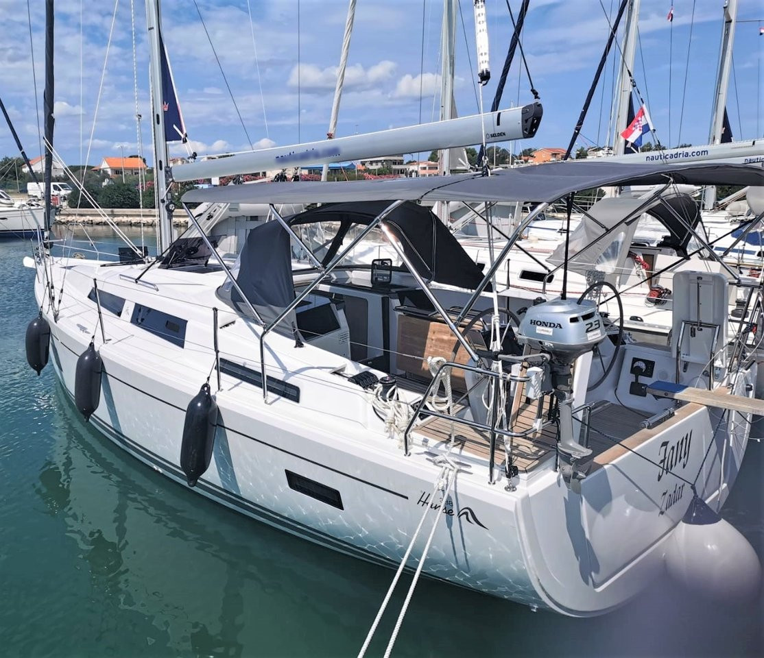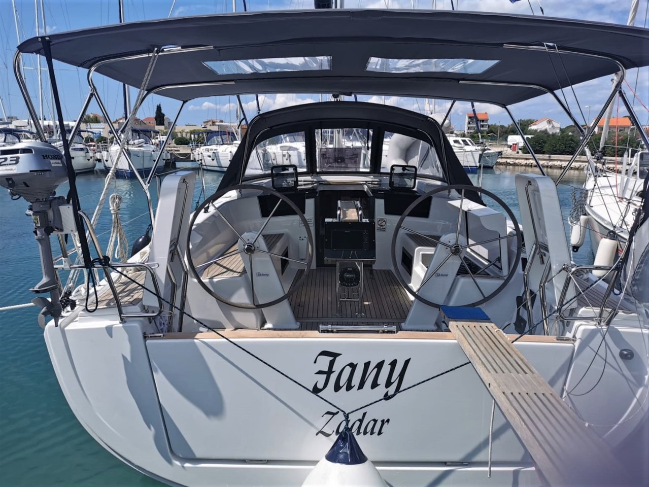 | Outside | 220 V-Landanschluss, Anker mit Kette, Badeleiter, Badeplattform, Biminitop, Cockpitdusche, Cockpitlautsprecher, Cockpitpolster, Cockpittisch, elektr. Ankerwinsch, Fender, Gangway, Sprayhood, Teak im Cockpit, Windex |