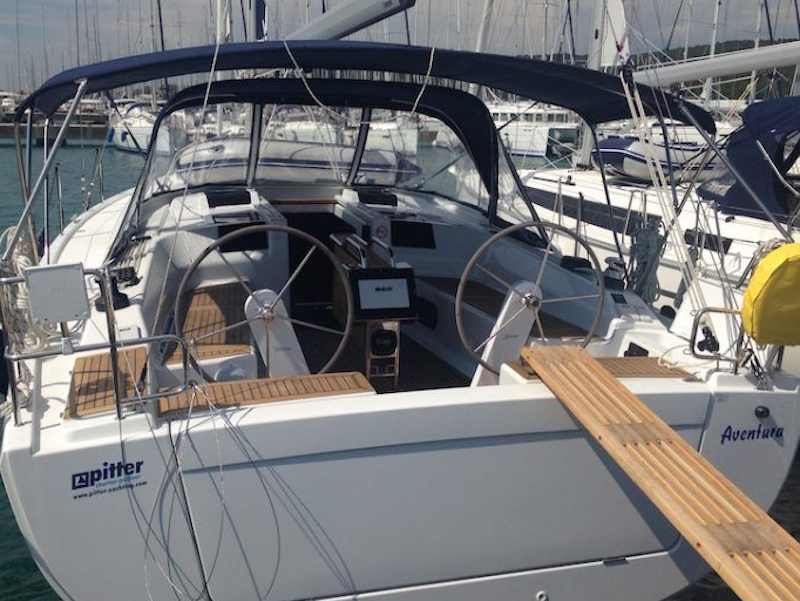 | Navigation | Barometer, GPS mit Kartenplotter, Hafenhandbücher, Handpeilkompass, Navigationsbesteck, Seekarten, Tridata (Log, Echolot, Windm.) |